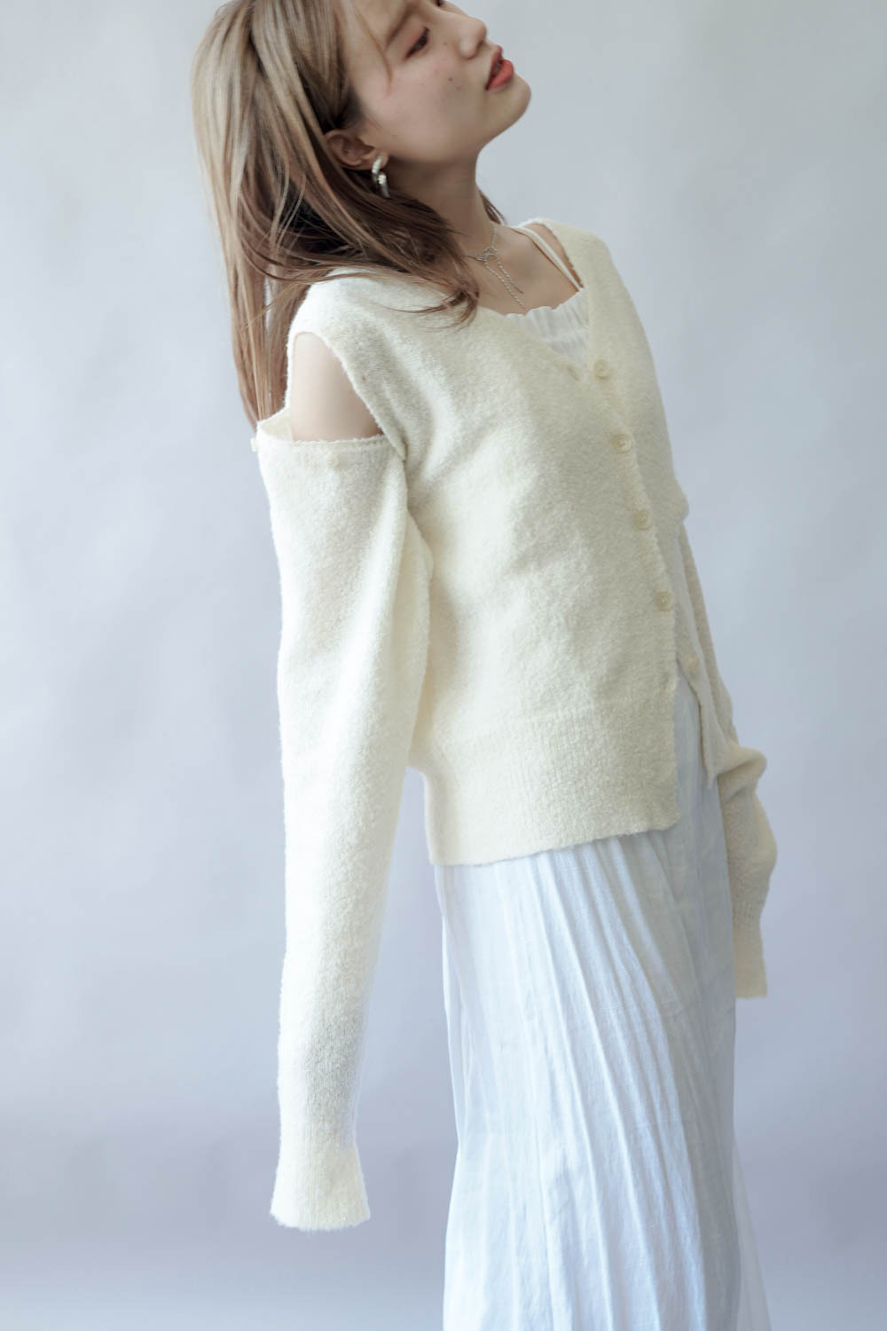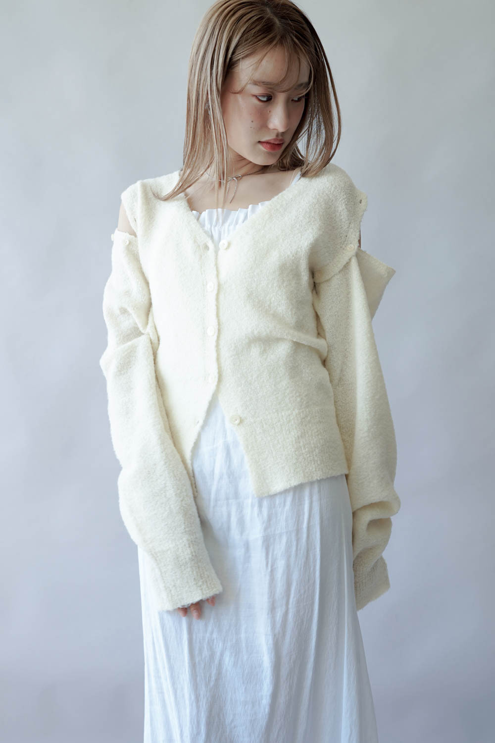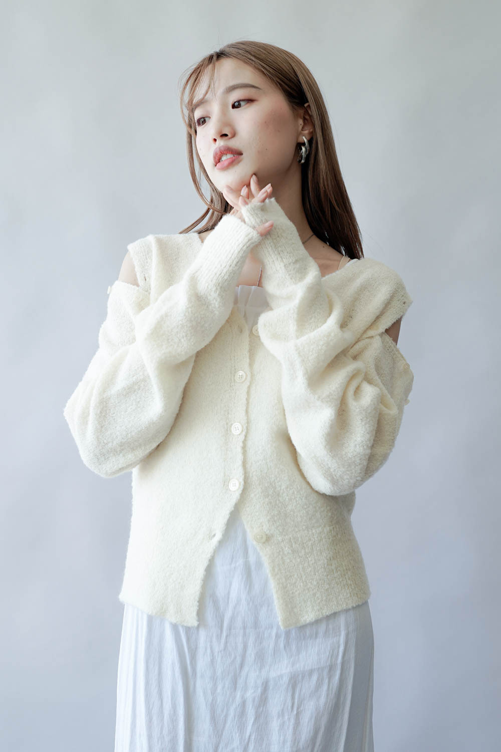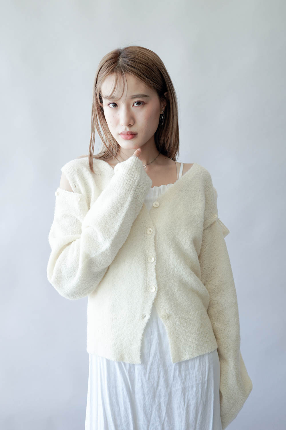 亦可連同手袖穿著 更有層次感 / V領剪裁可修飾面形 / 同色系質感鈕扣 /