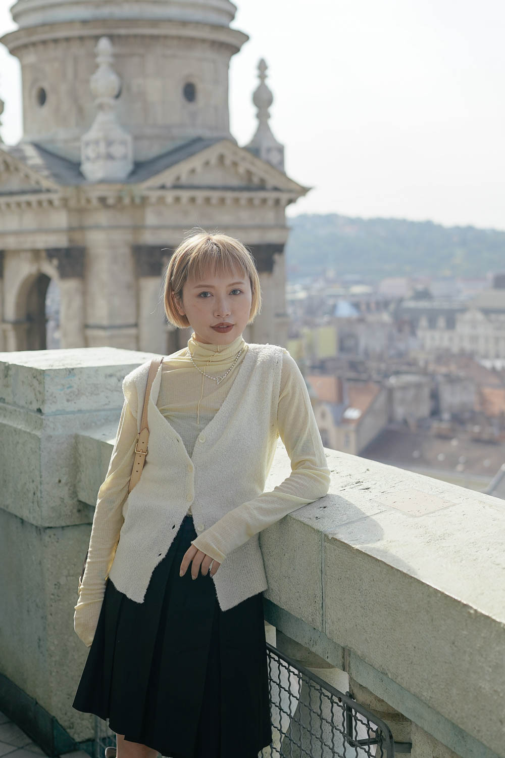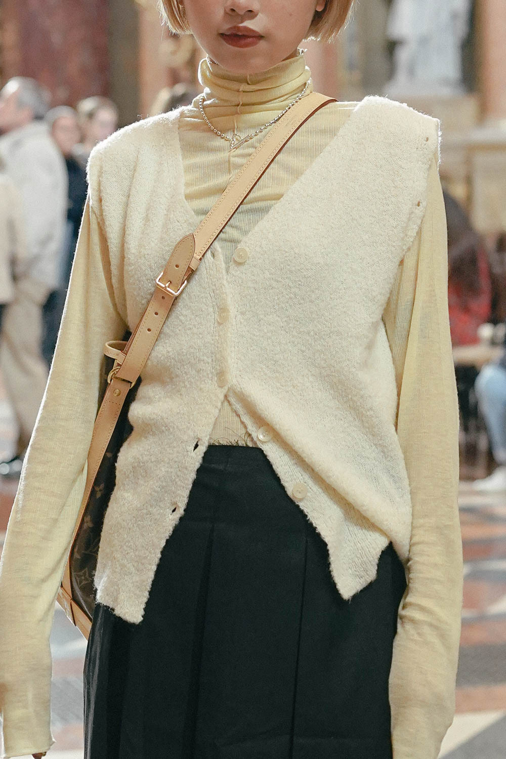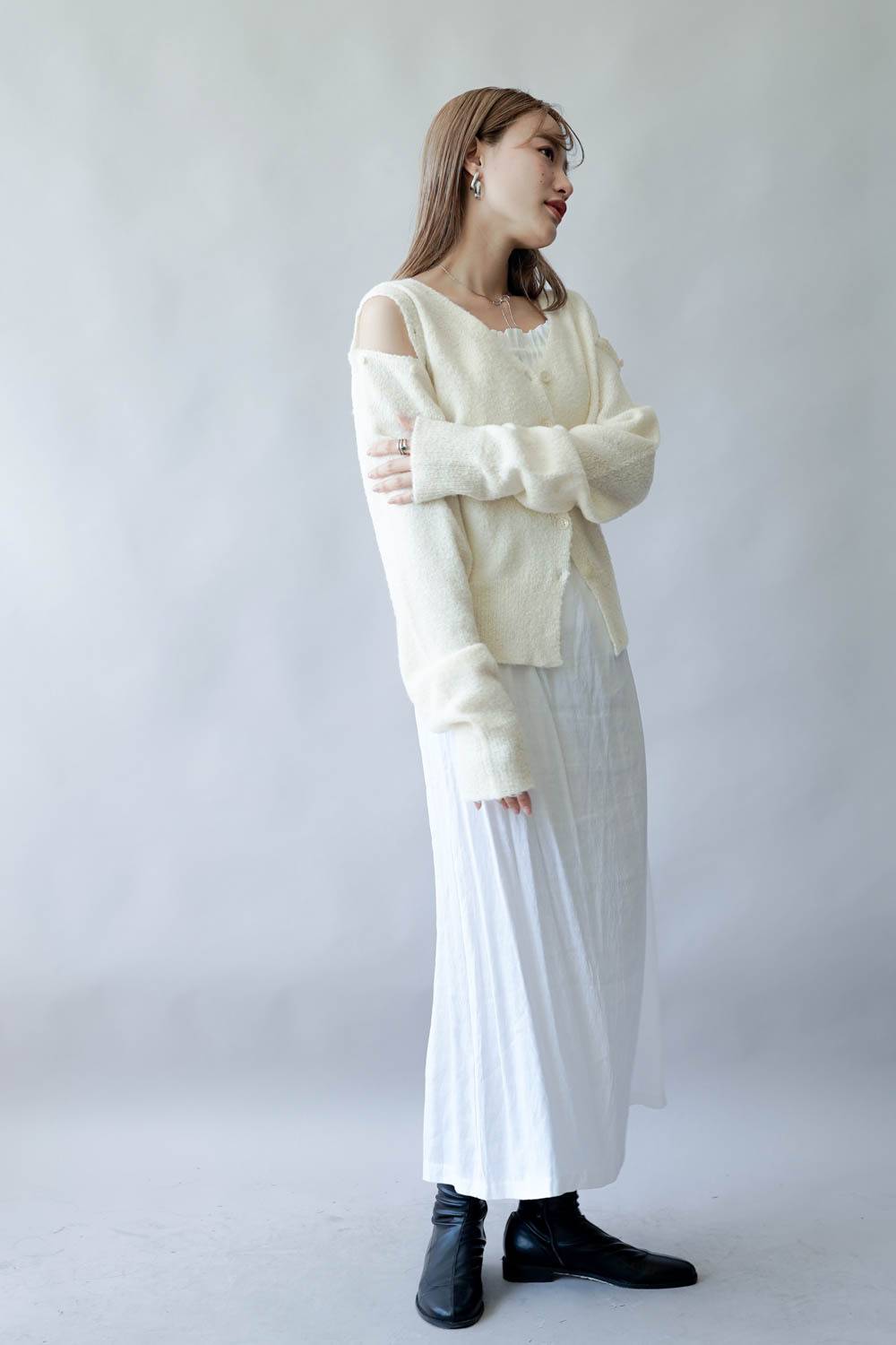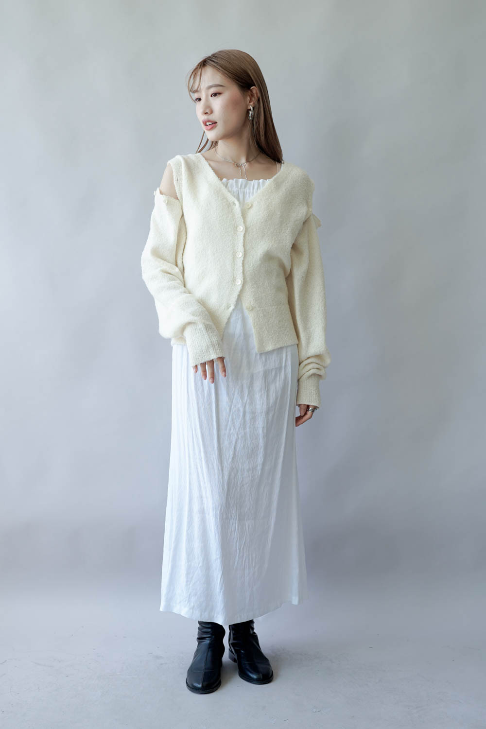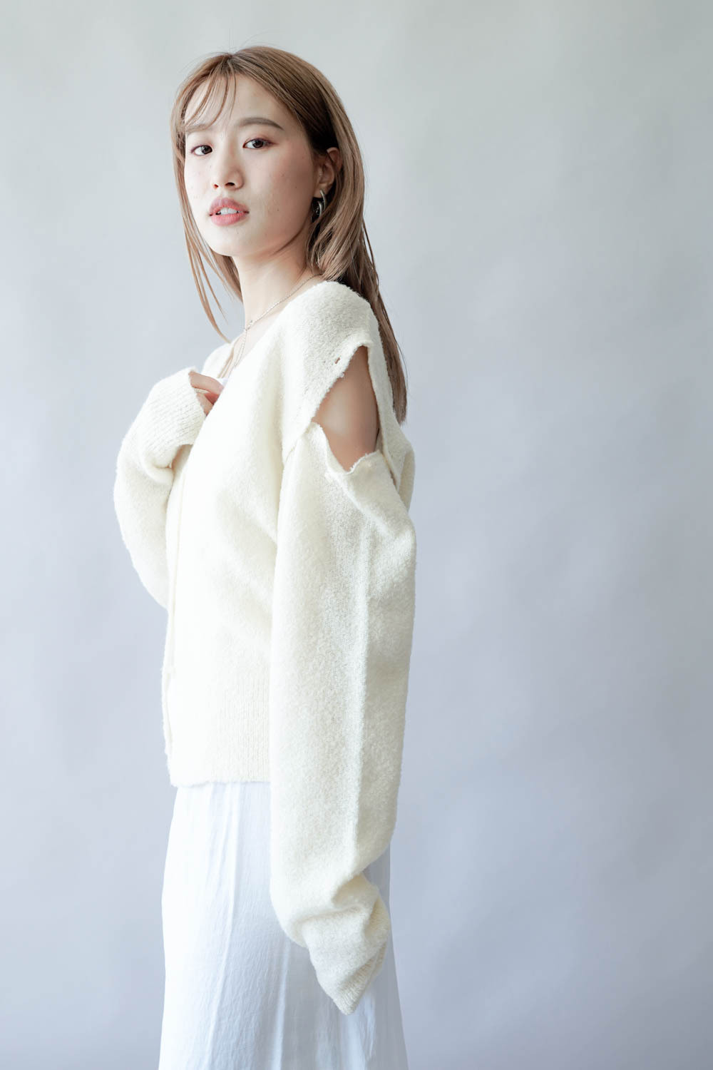 亦可連同手袖穿著 更有層次感 / V領剪裁可修飾面形 / 同色系質感鈕扣 /
