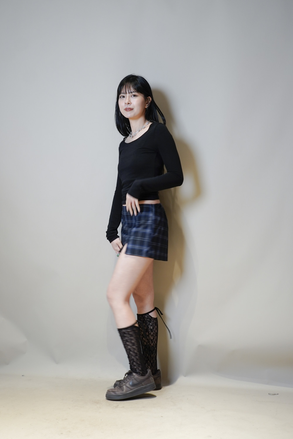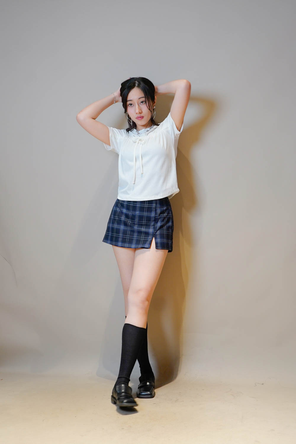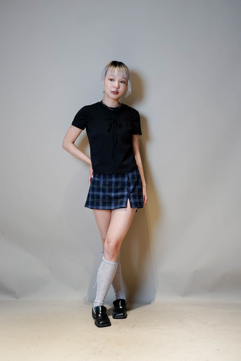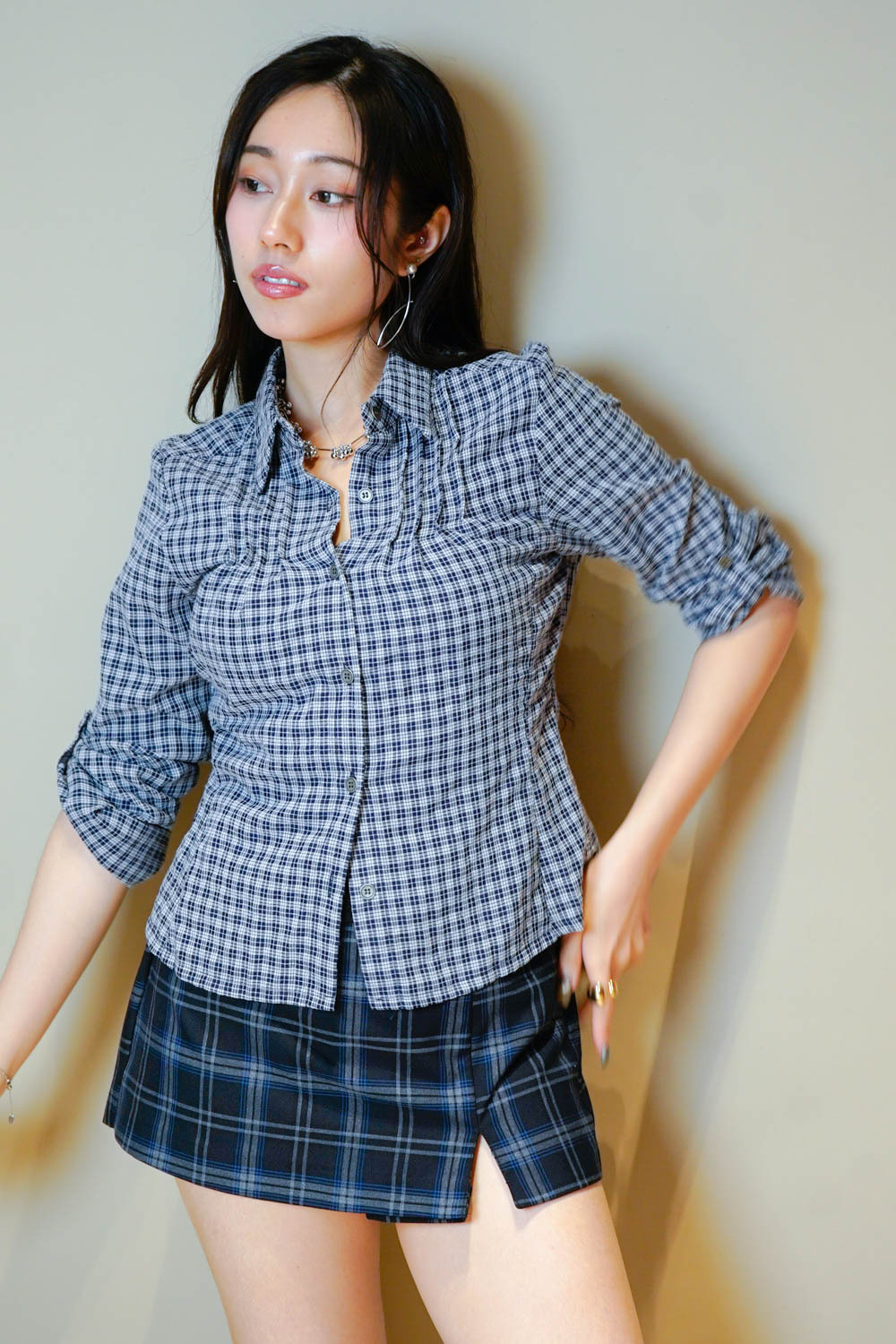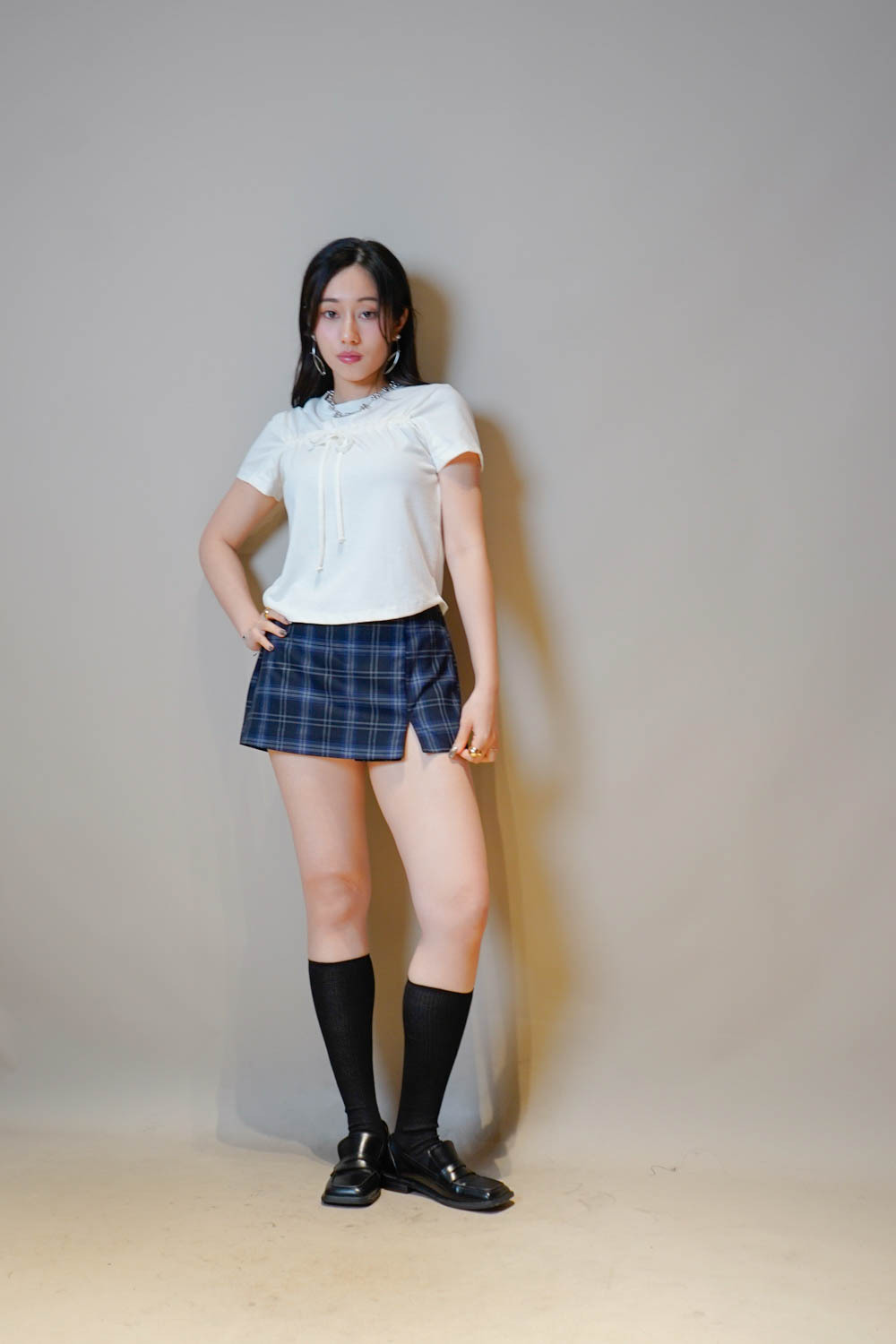 Checked mini shorts (BLUE/NAVY) - free size