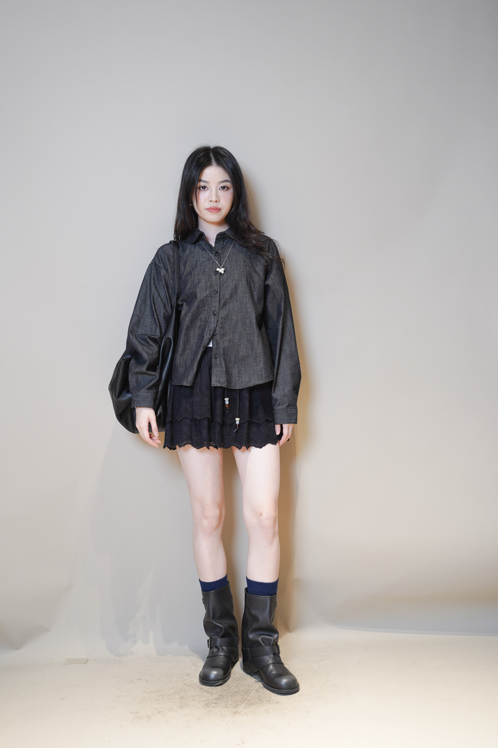 圓領設計 中和牛仔的硬朗/ 增添日常少女感/
