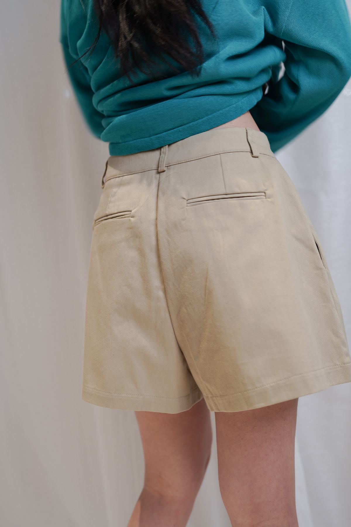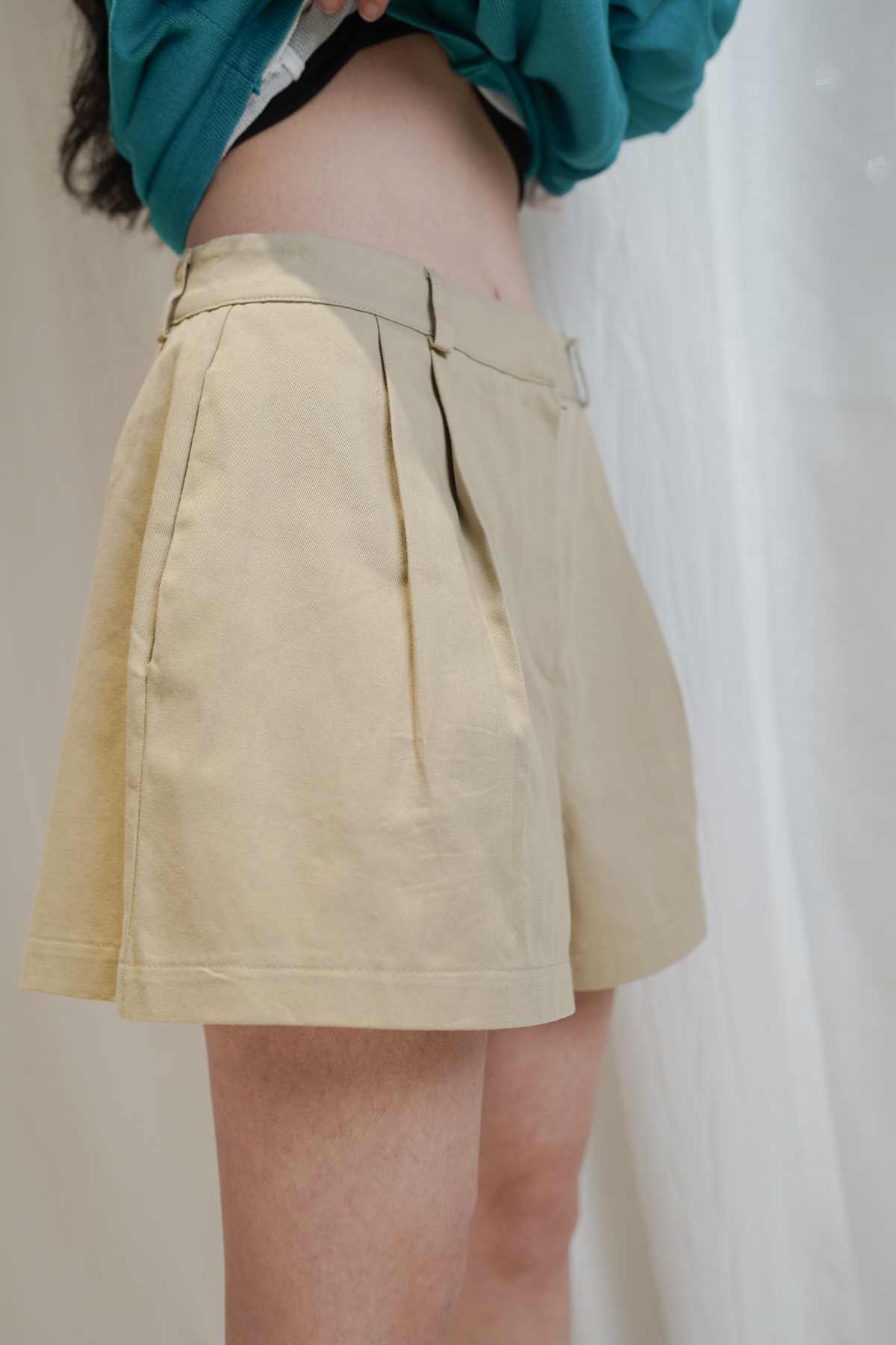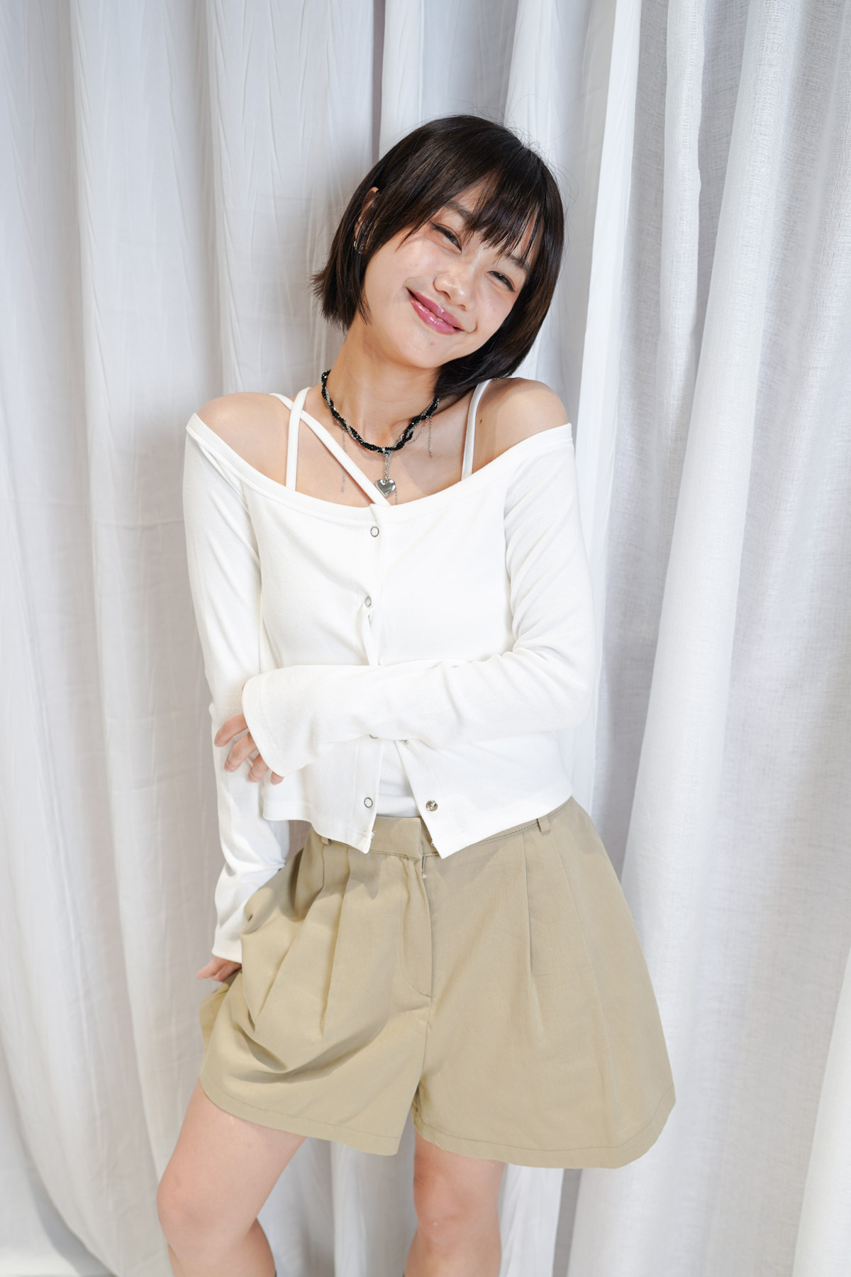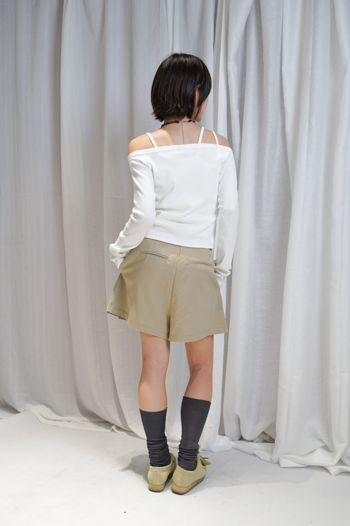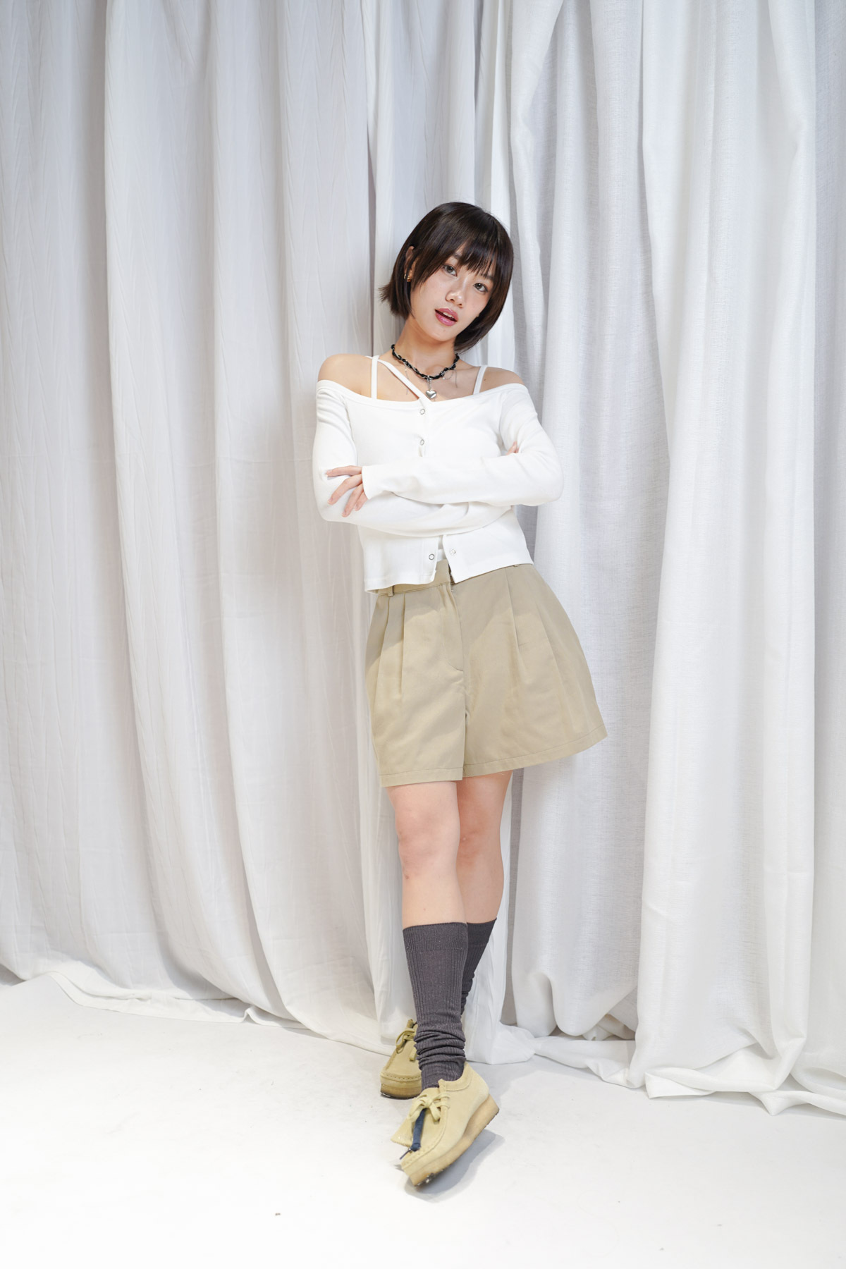 Clean fit long leg shorts (WHITE / BEIGE) (S/M)