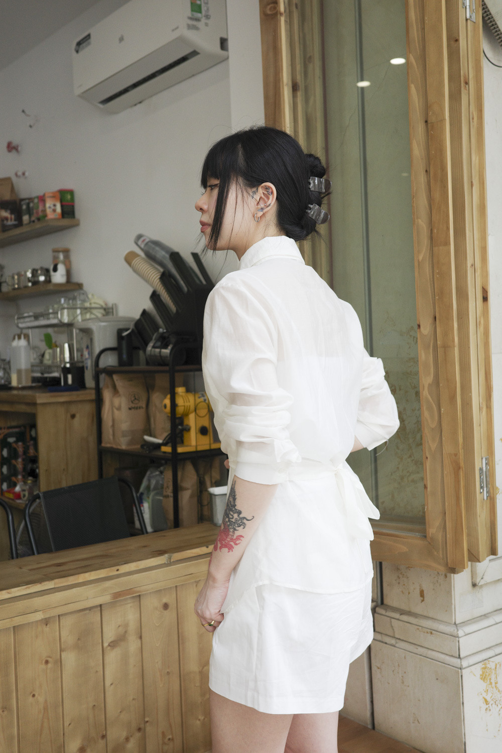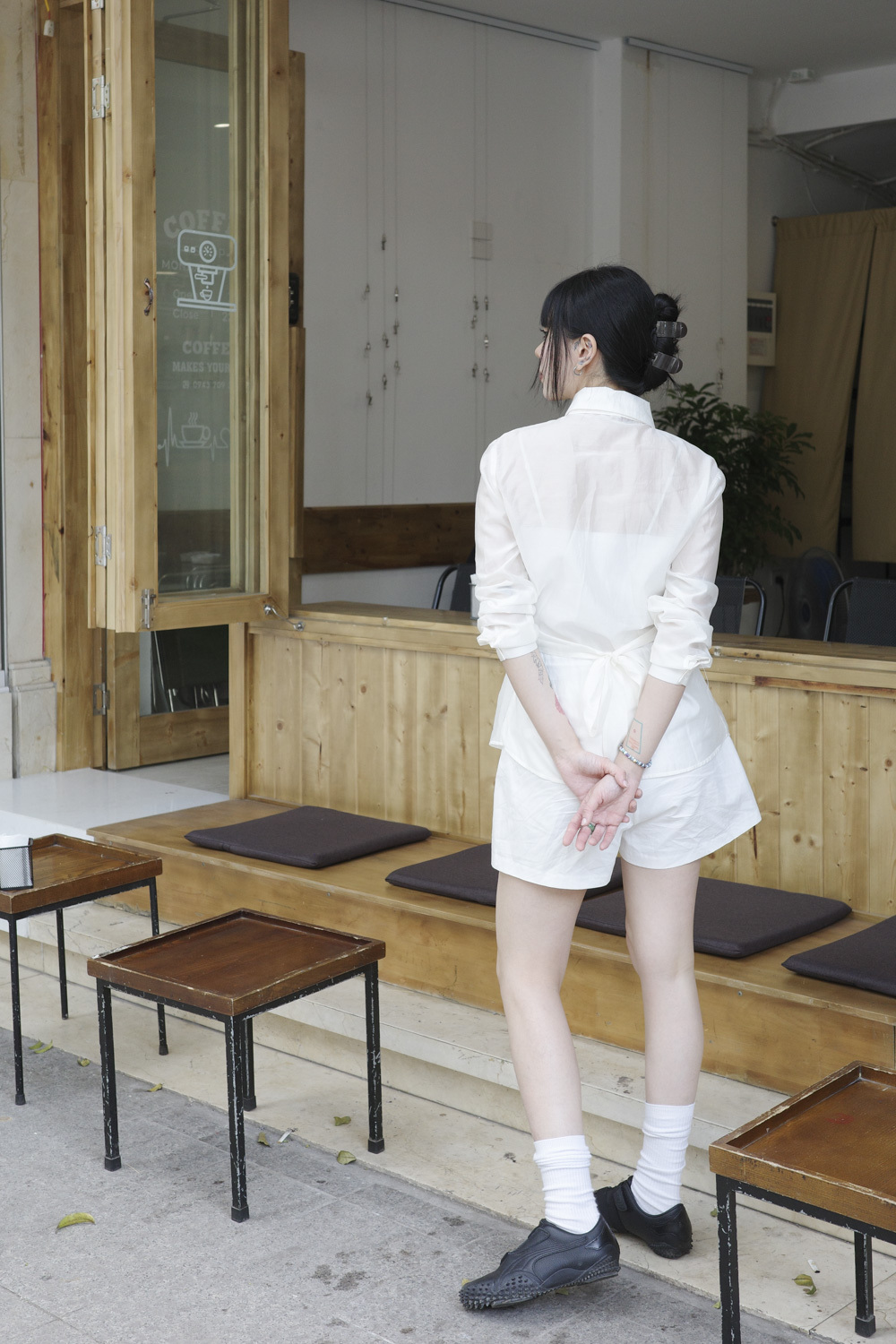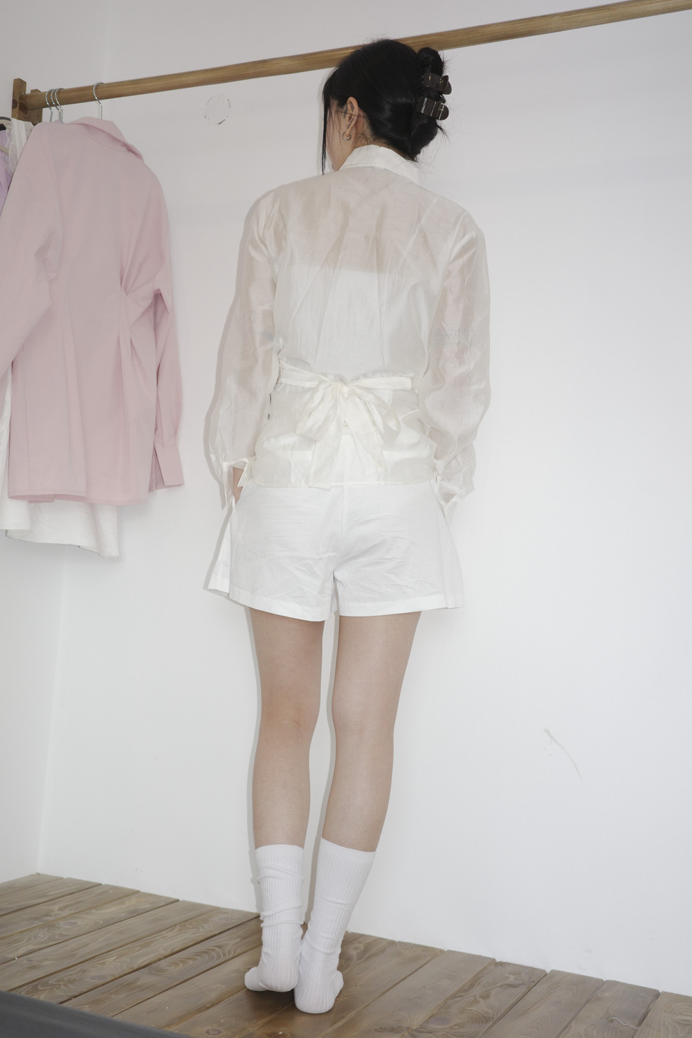 腰線:高 / 彈性:低 / 透膚程度:白色微透,深藍不透 / 內里: 沒有 / 口袋:沒有
