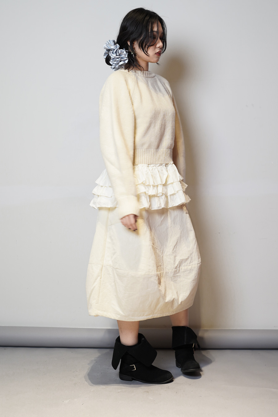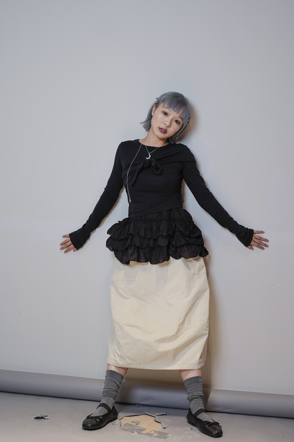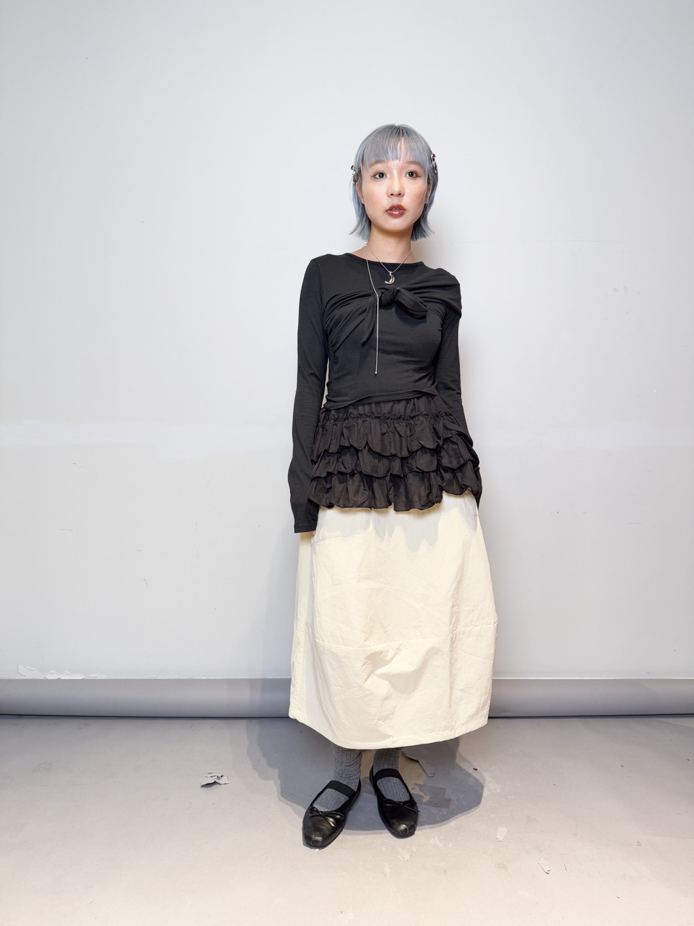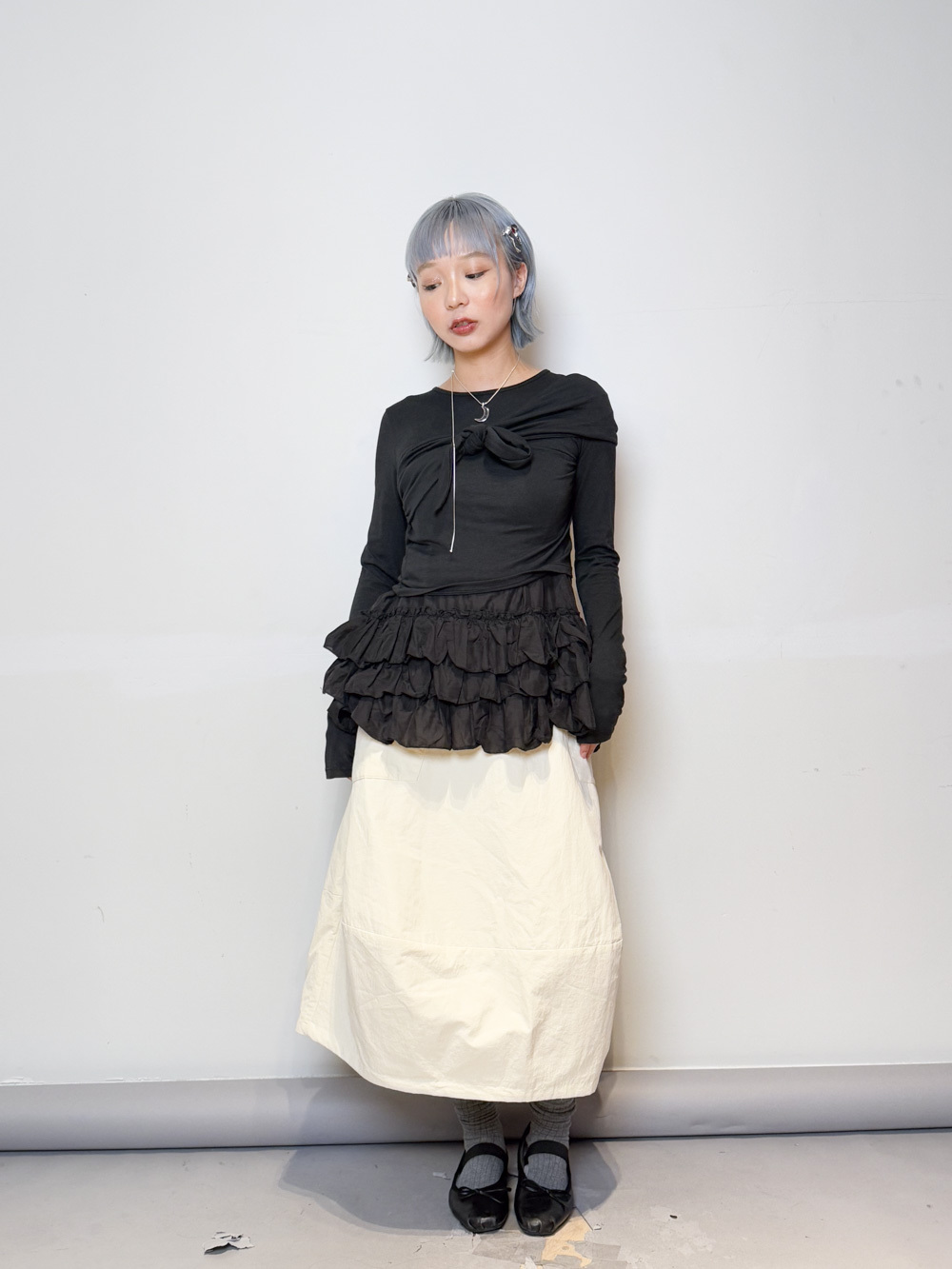 Cloud set: 3D puff padding skirt (WHITE/ BLACK)