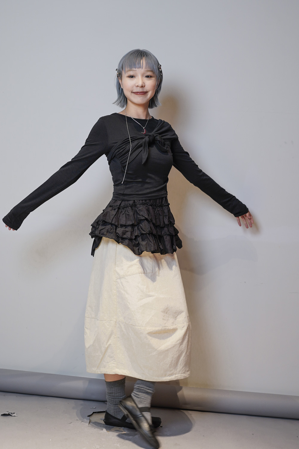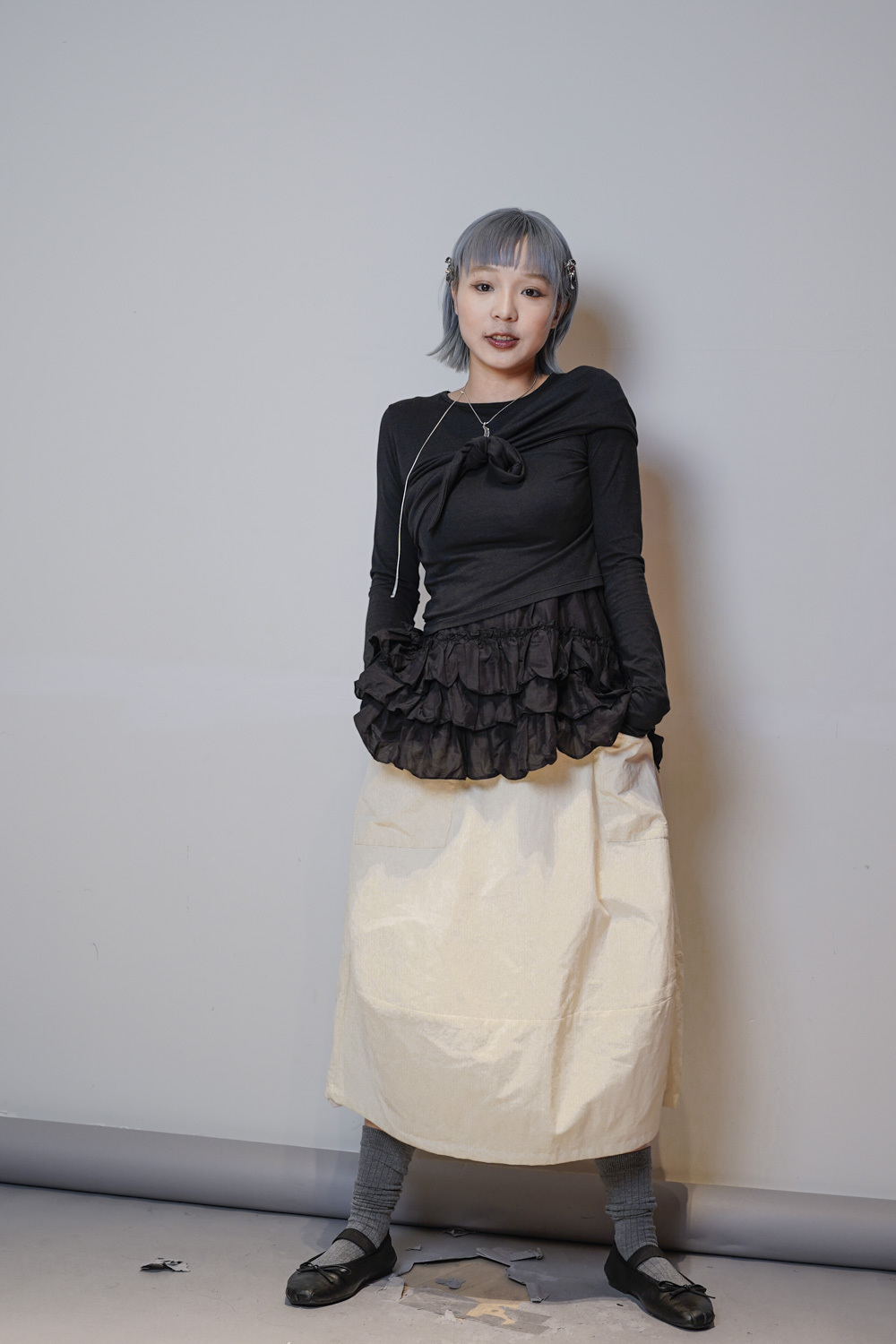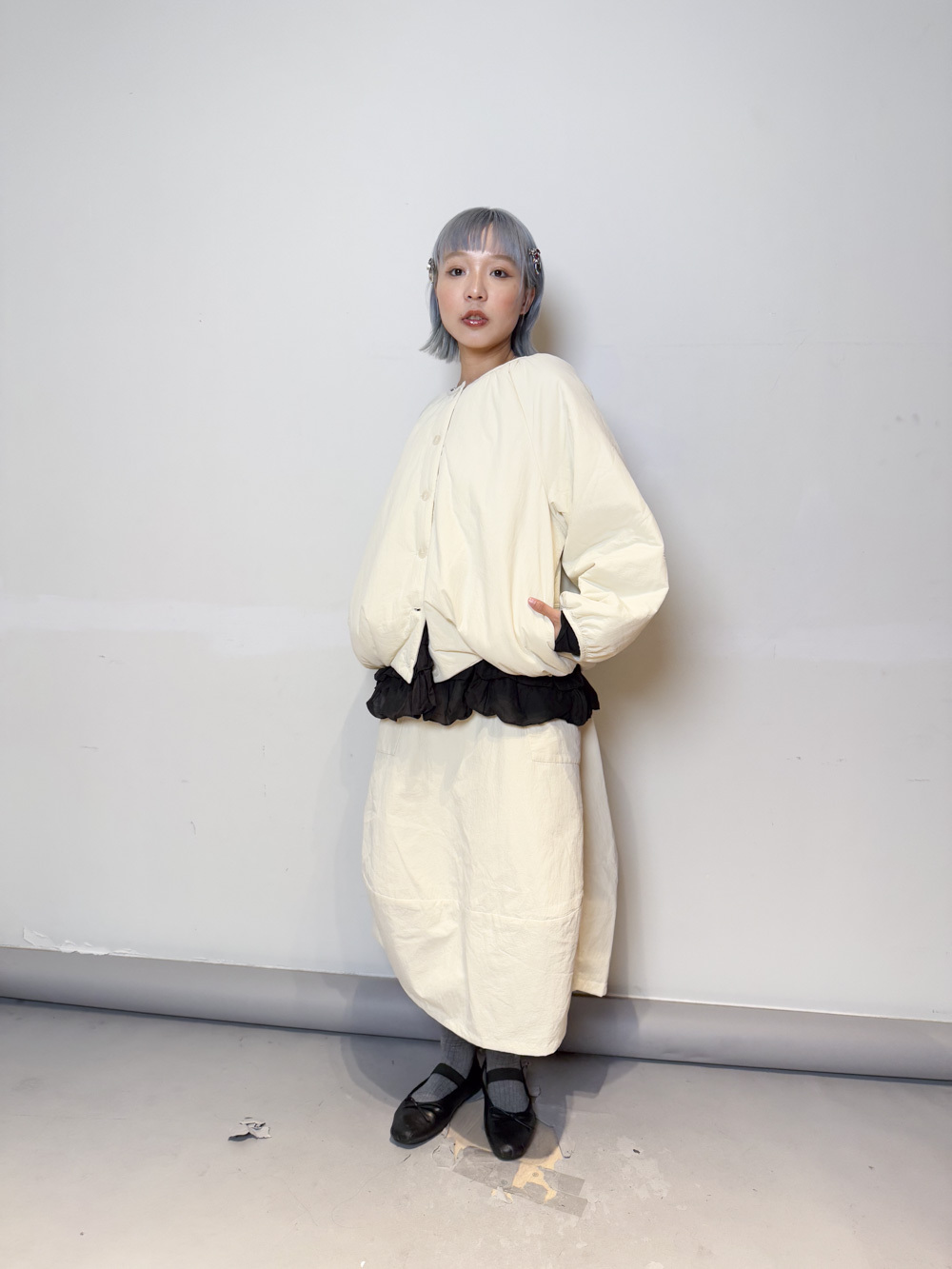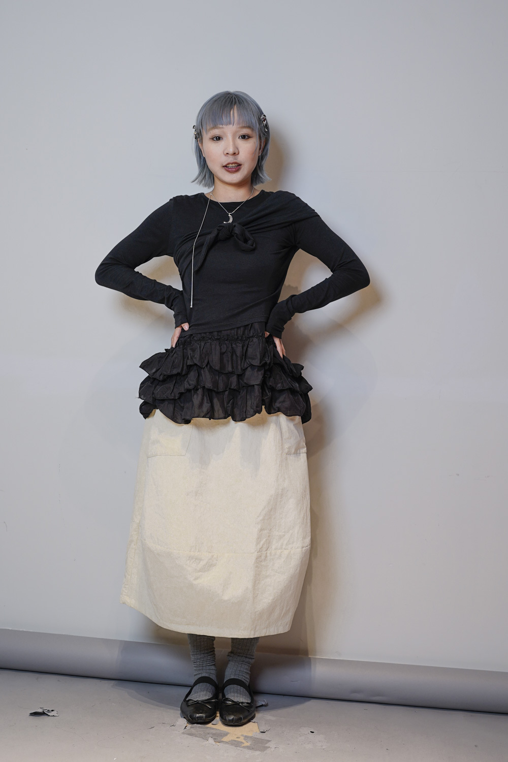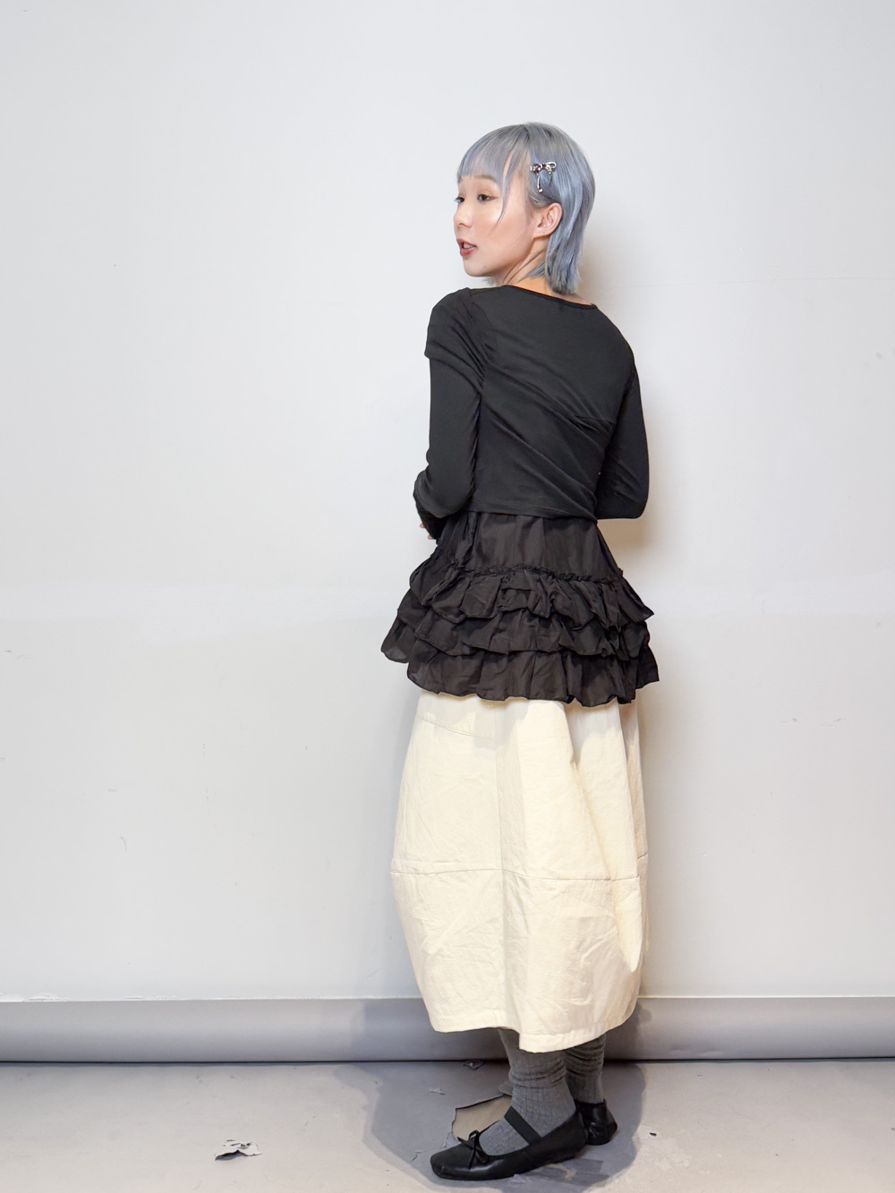Cloud set: 3D puff padding skirt (WHITE/ BLACK)