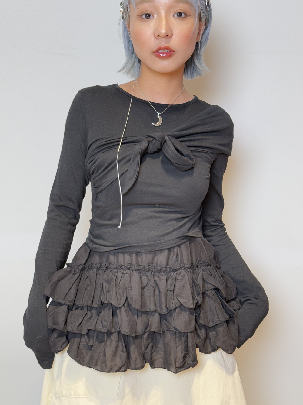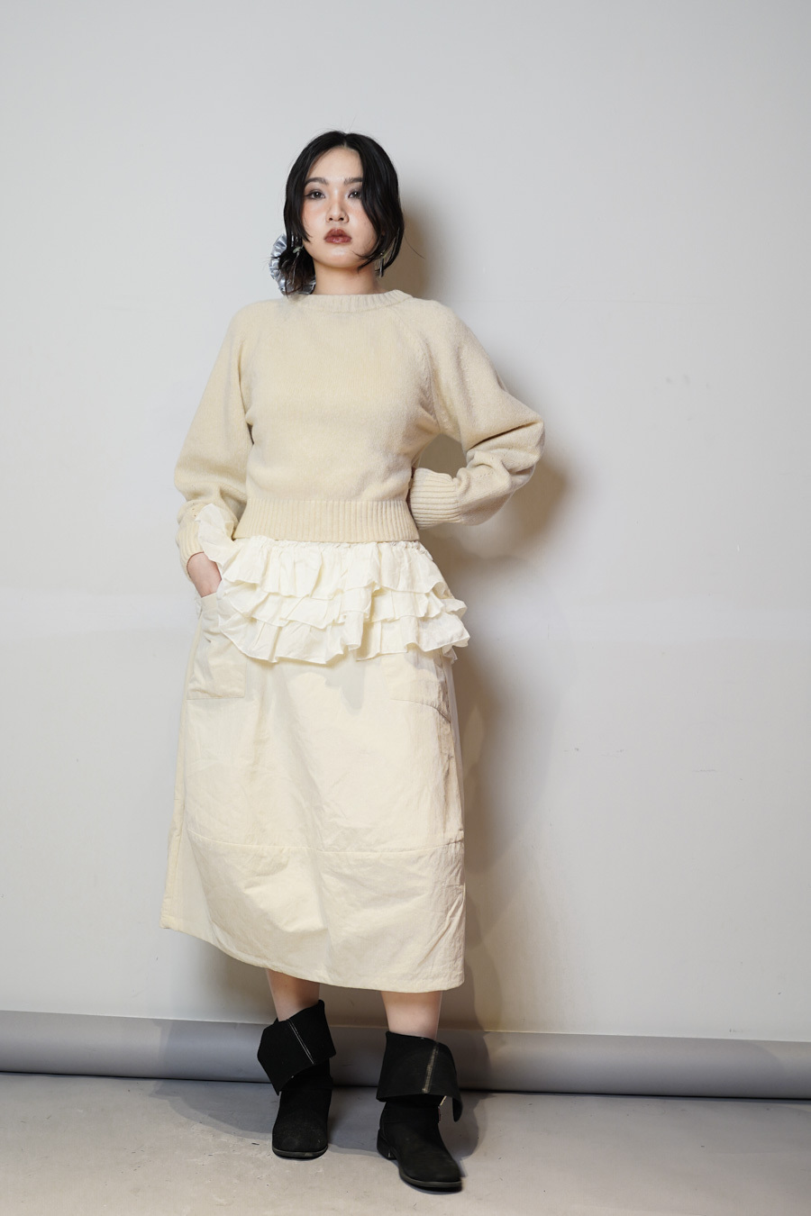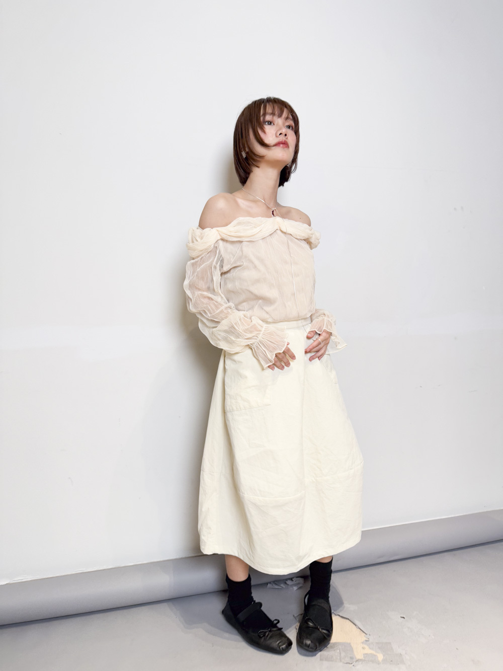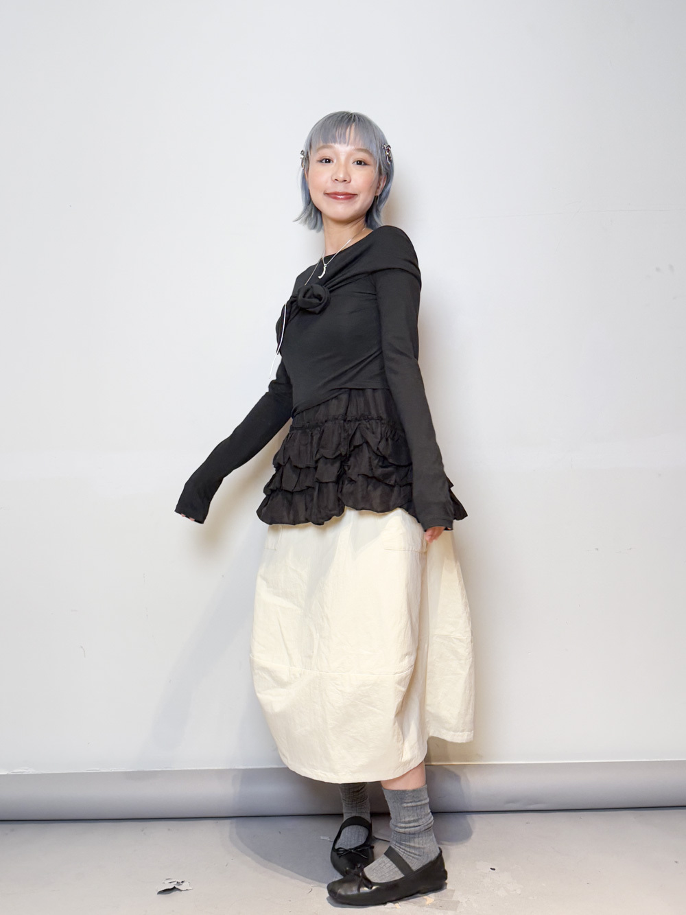 Cloud set: 3D puff padding skirt (WHITE/ BLACK)