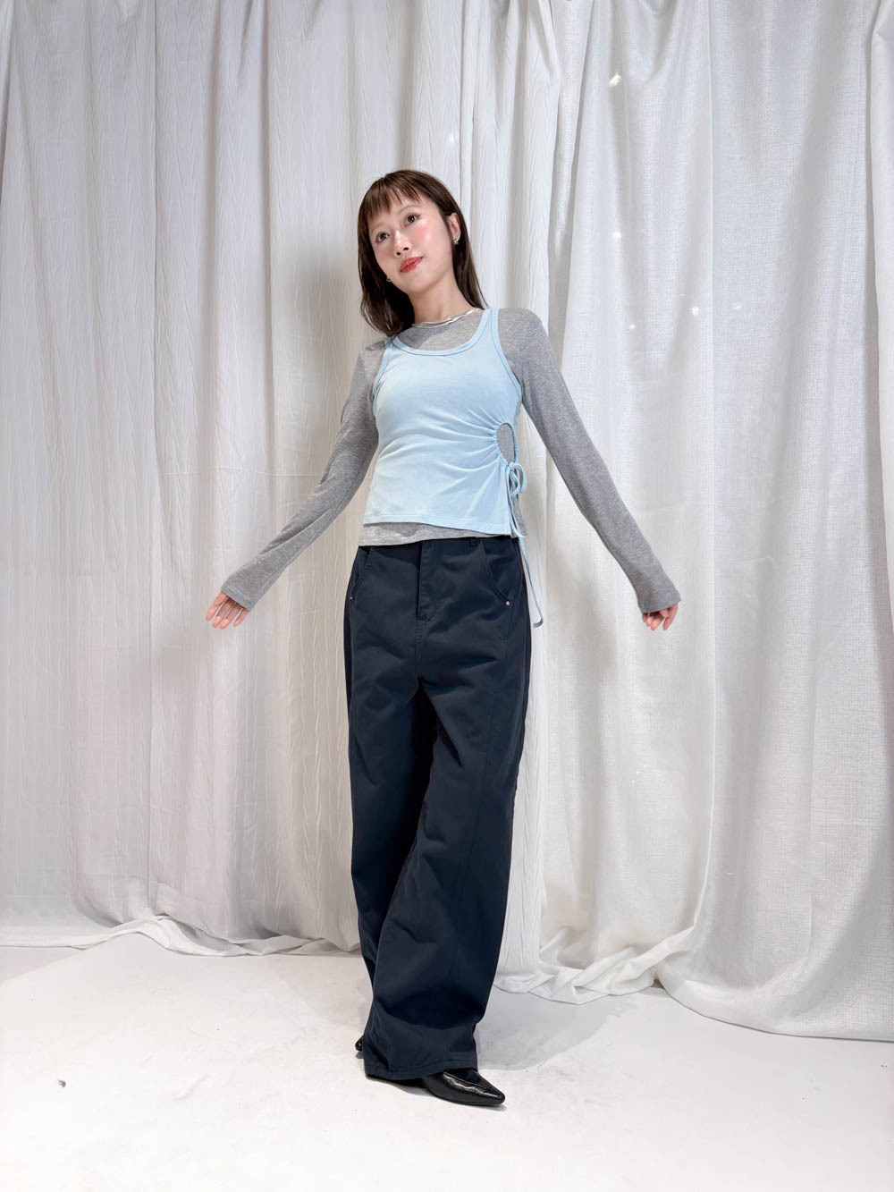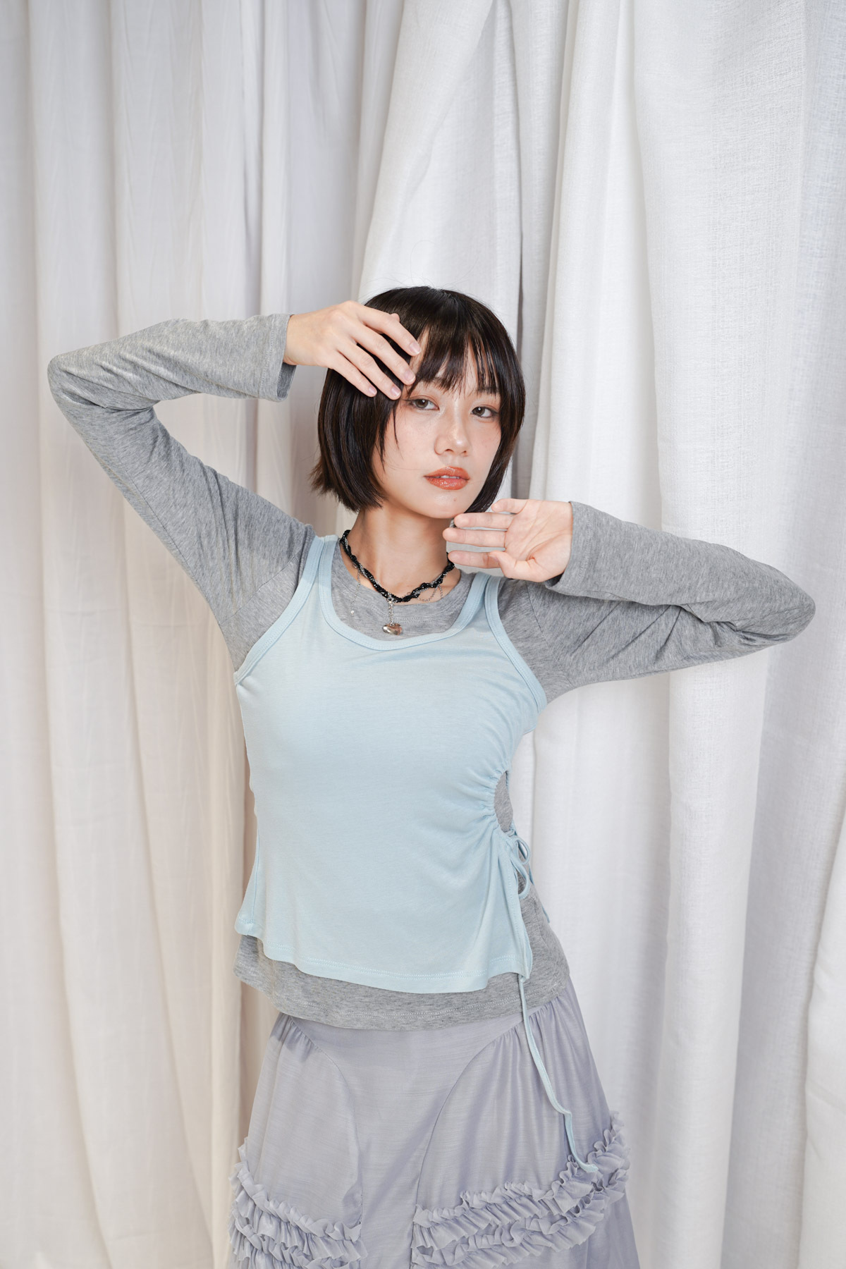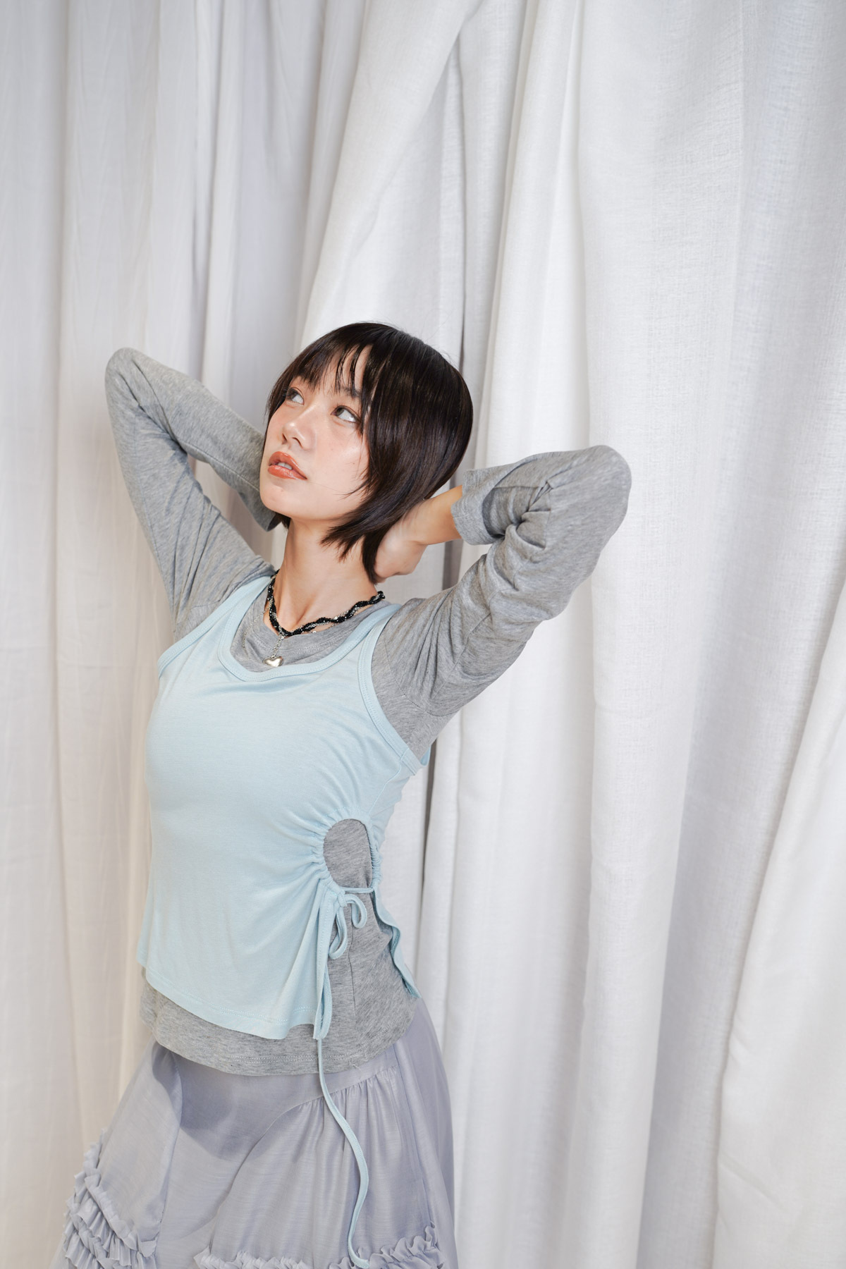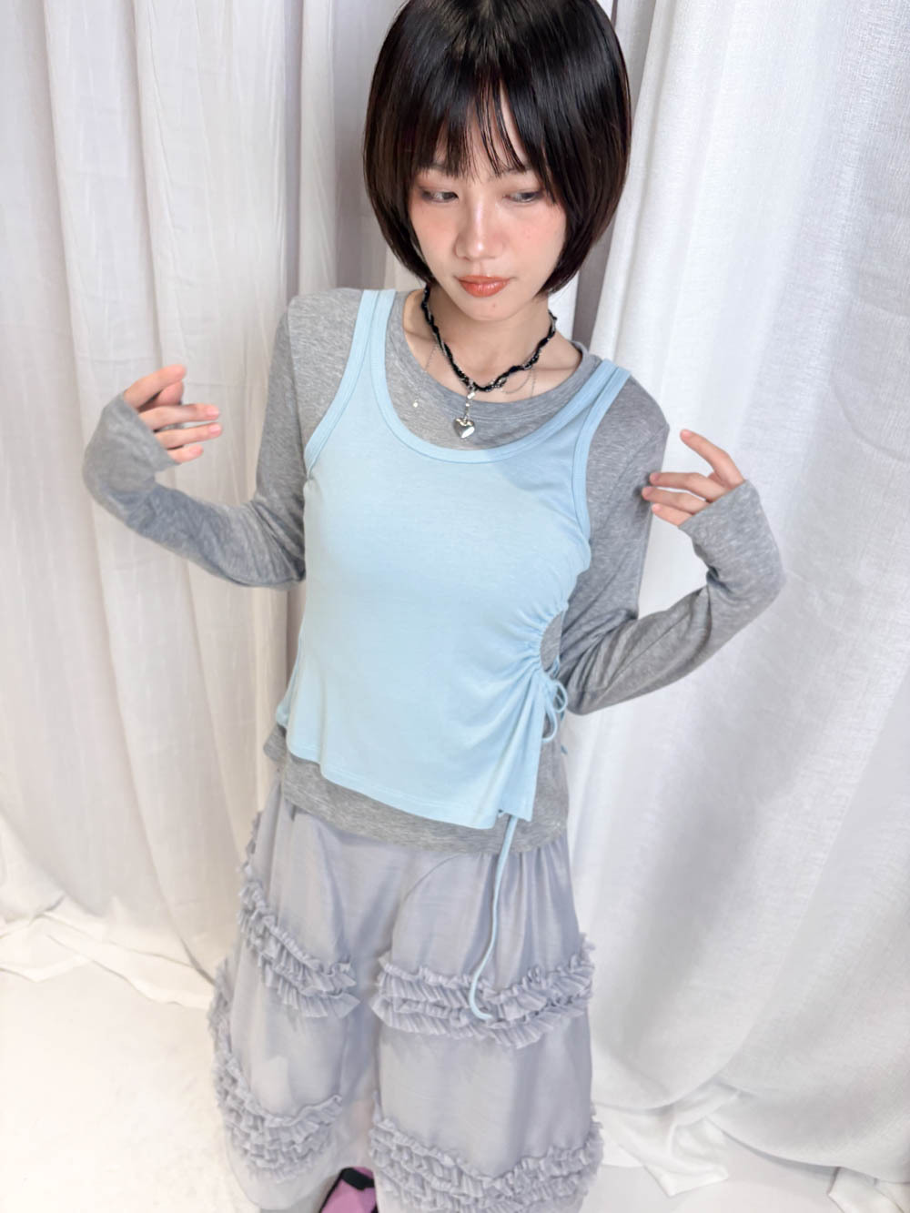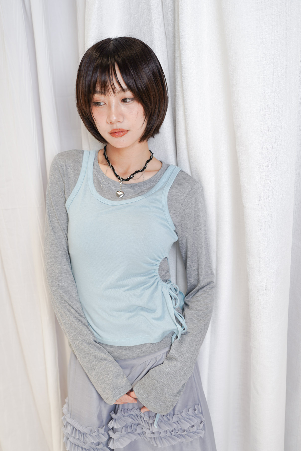 /側開衩剪裁 背心側邊帶有細緻開衩 露出內搭長袖嘅顏色 營造出獨特嘅對比效果