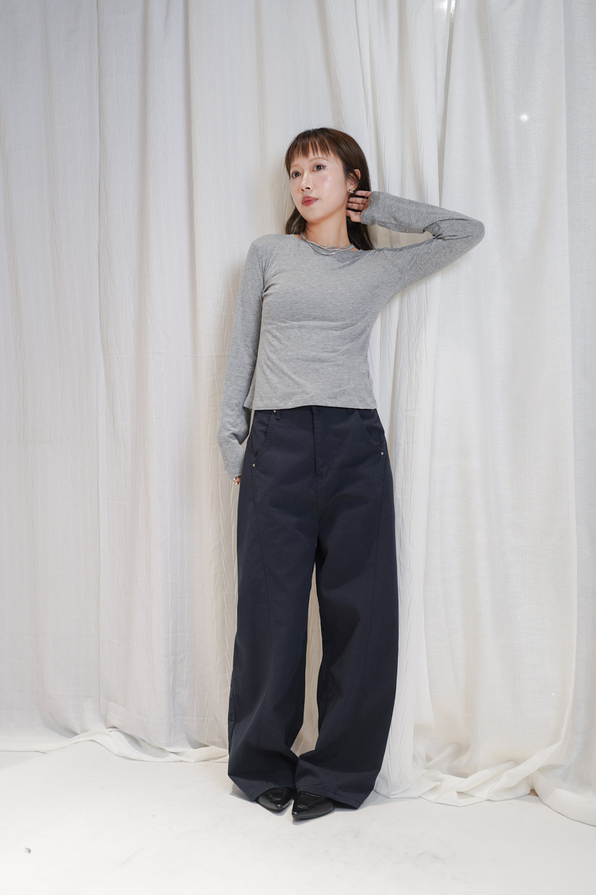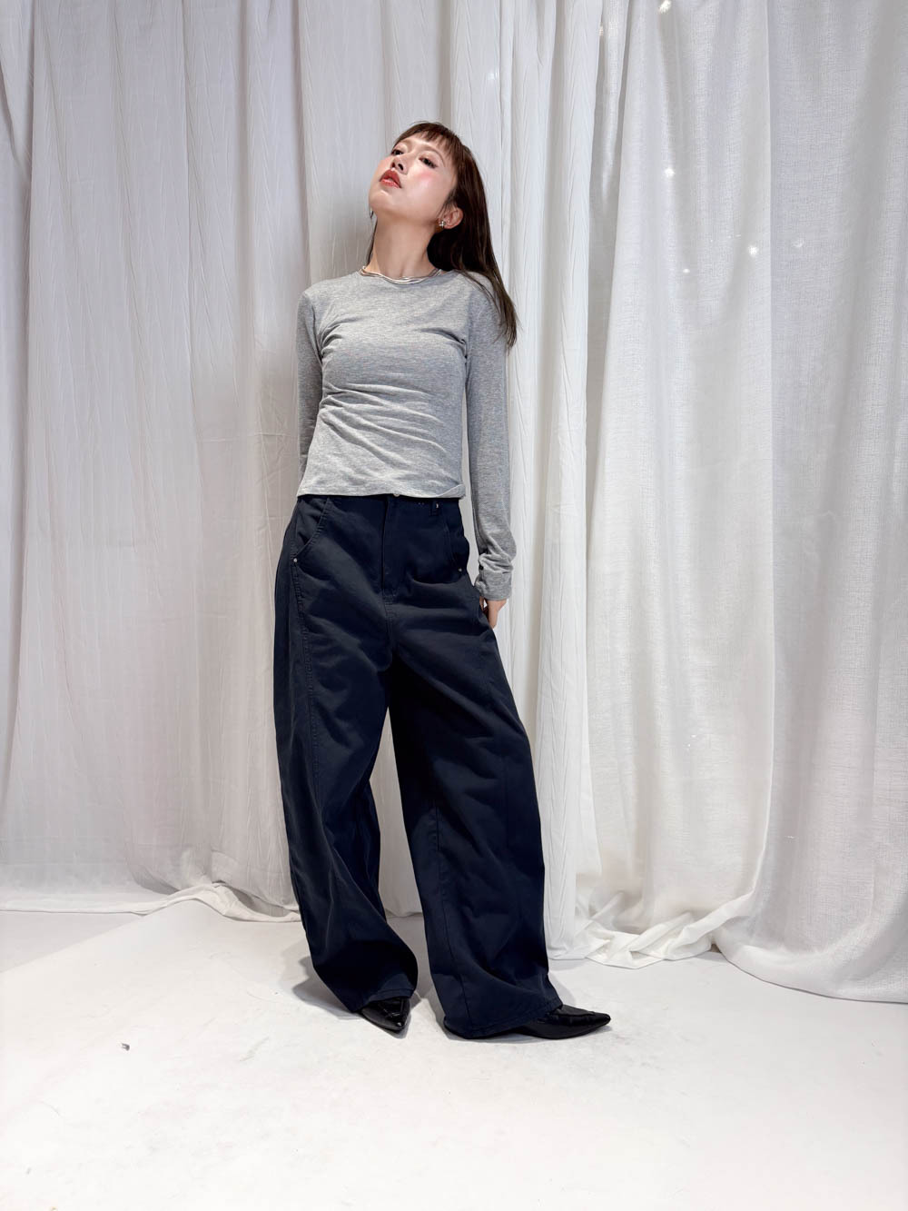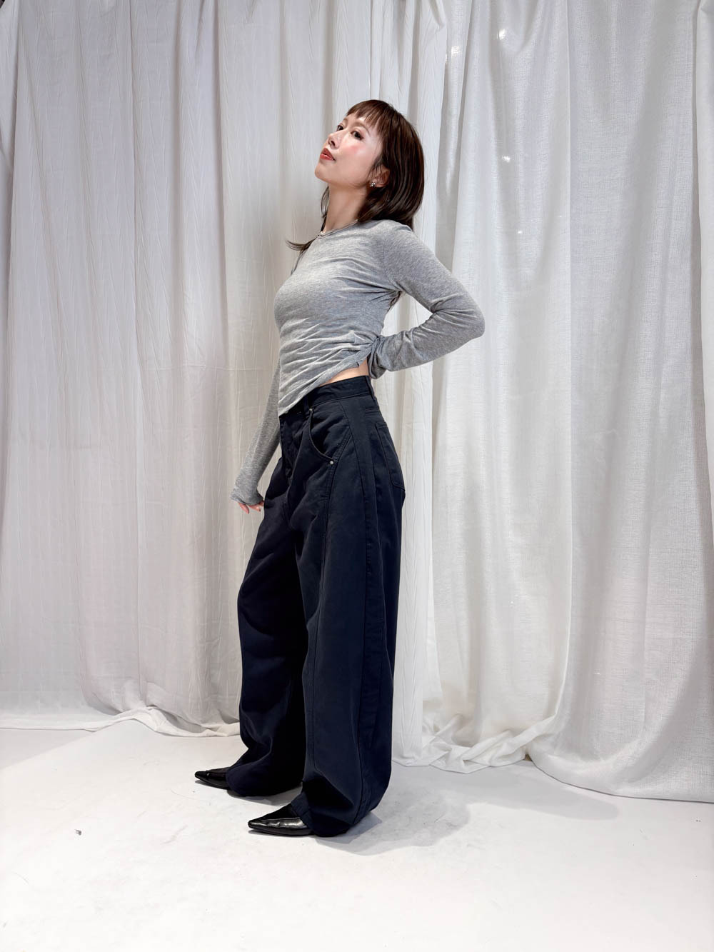 配襯 Balloon Pleated Trousers 增加下身份量感 平衡上身嘅修長線條