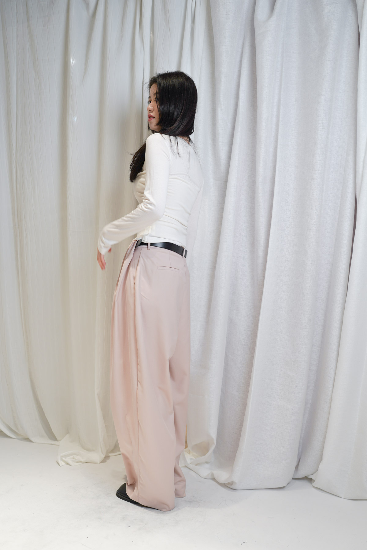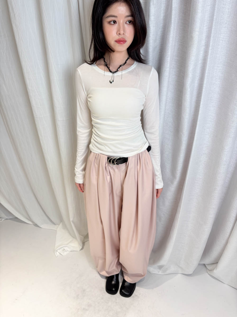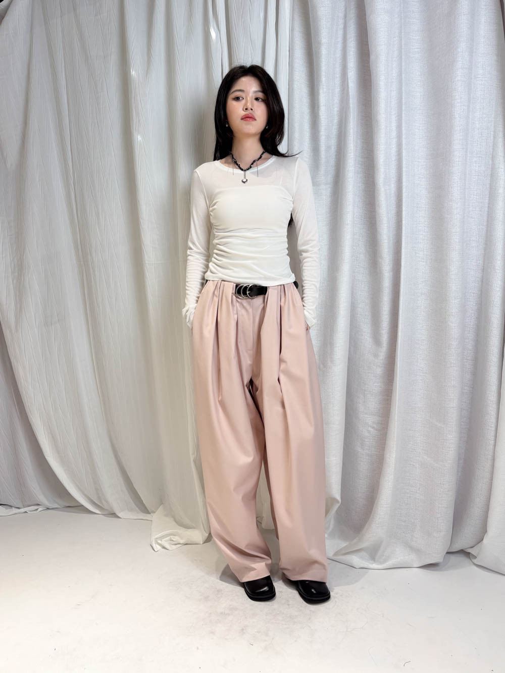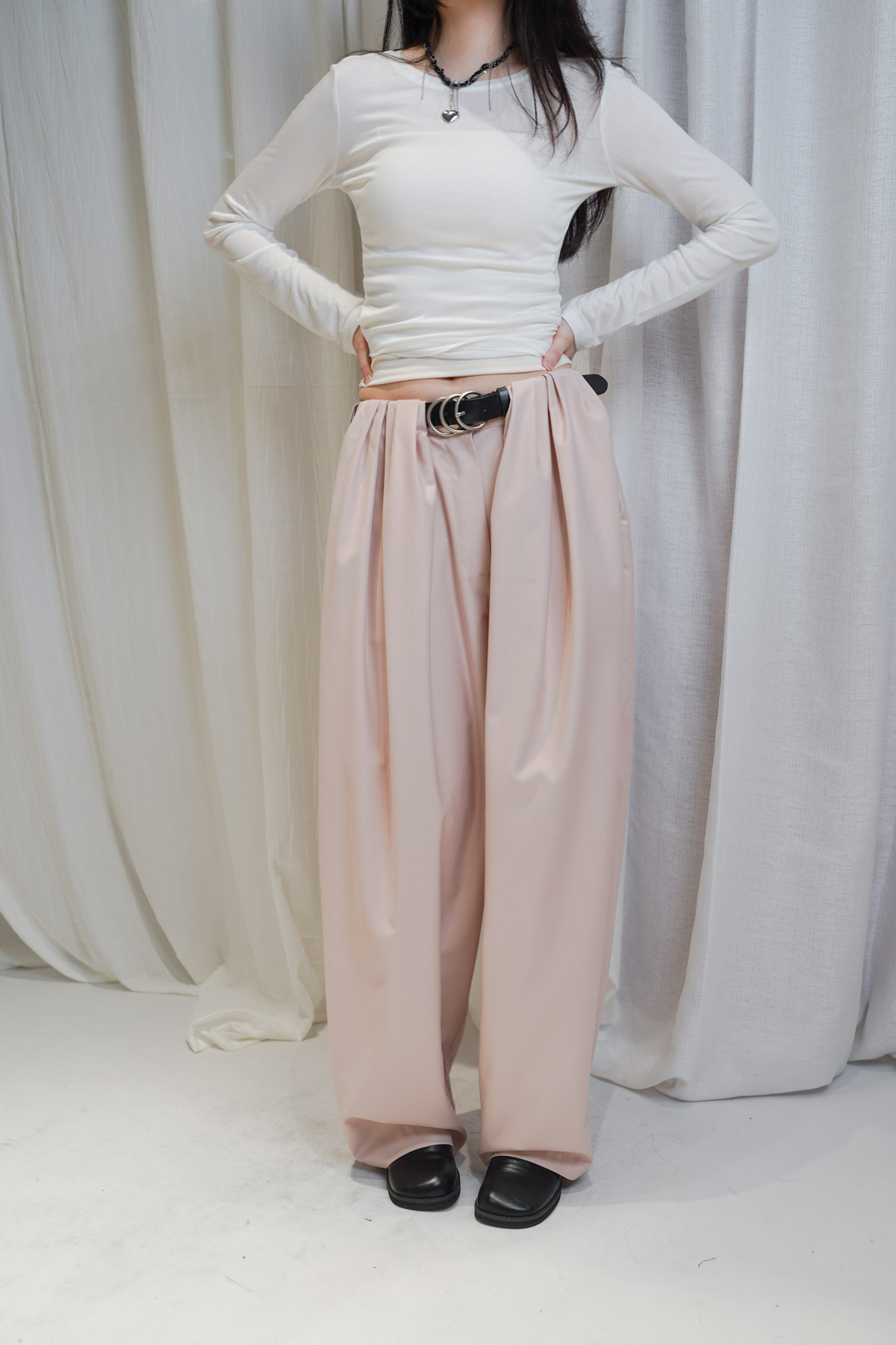 配襯 Balloon Pleated Trousers 增加下身份量感 平衡上身嘅修長線條
