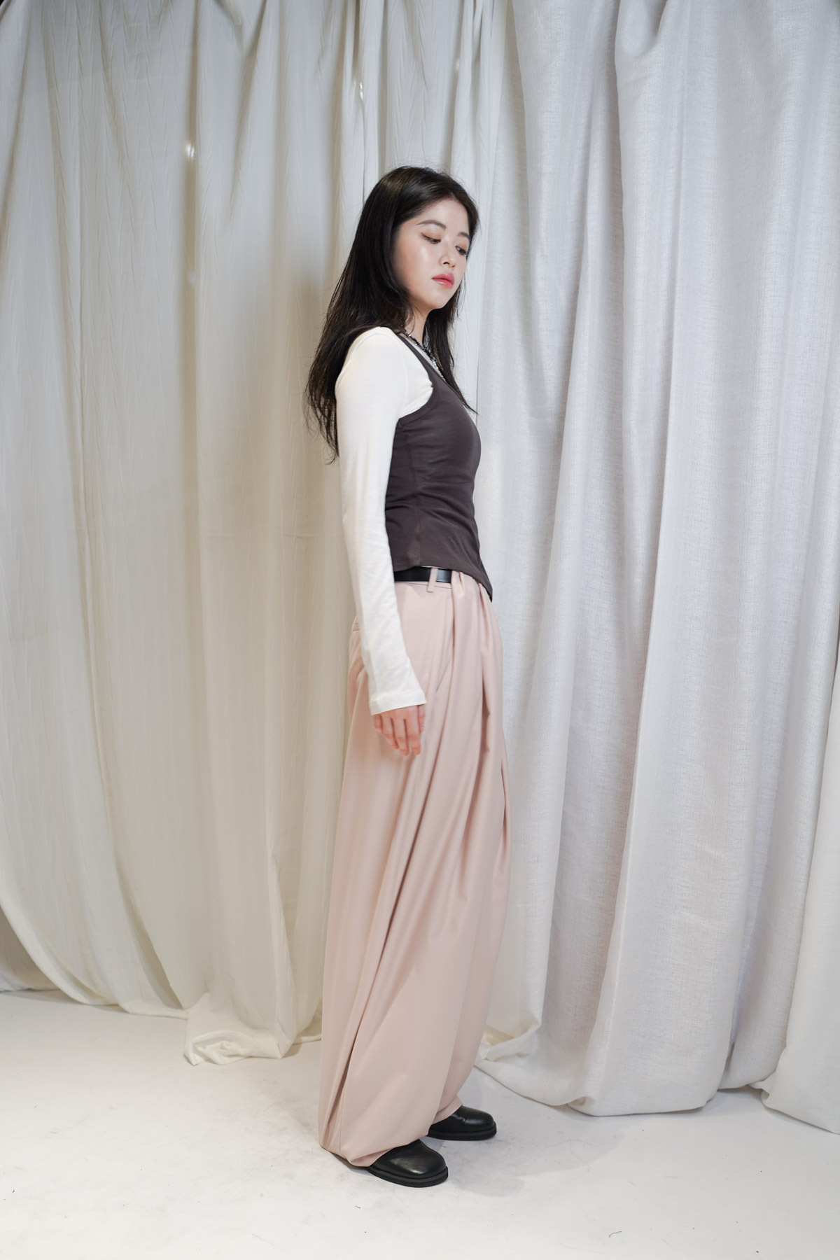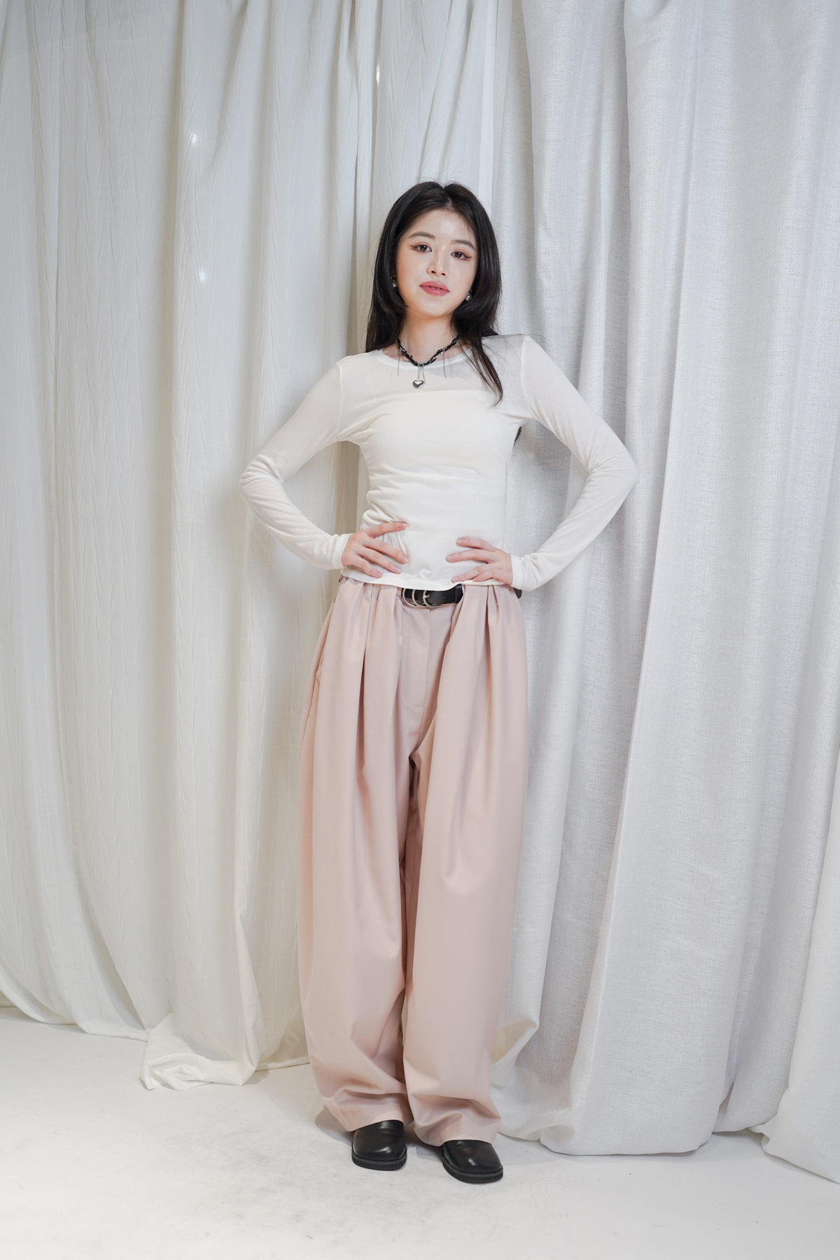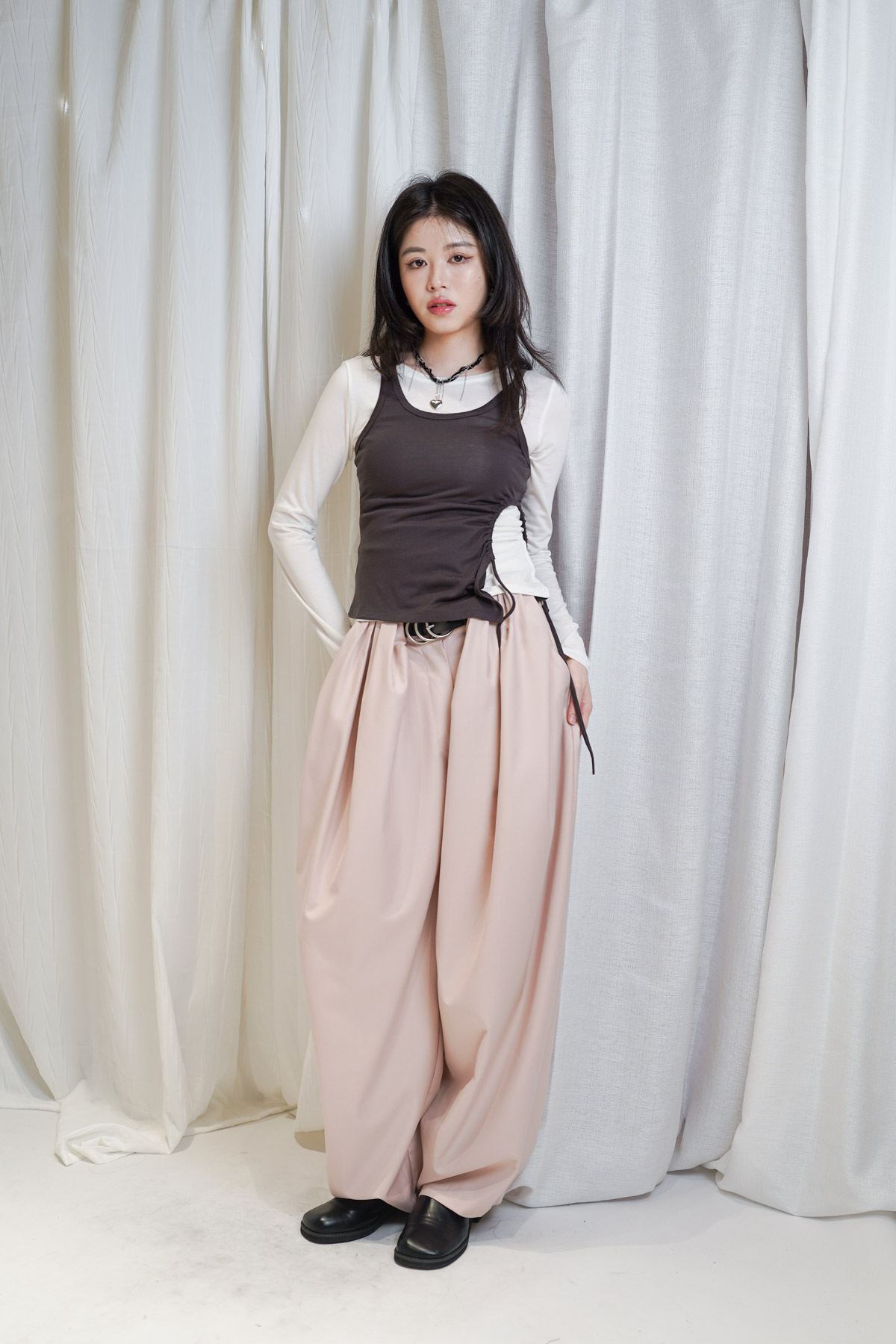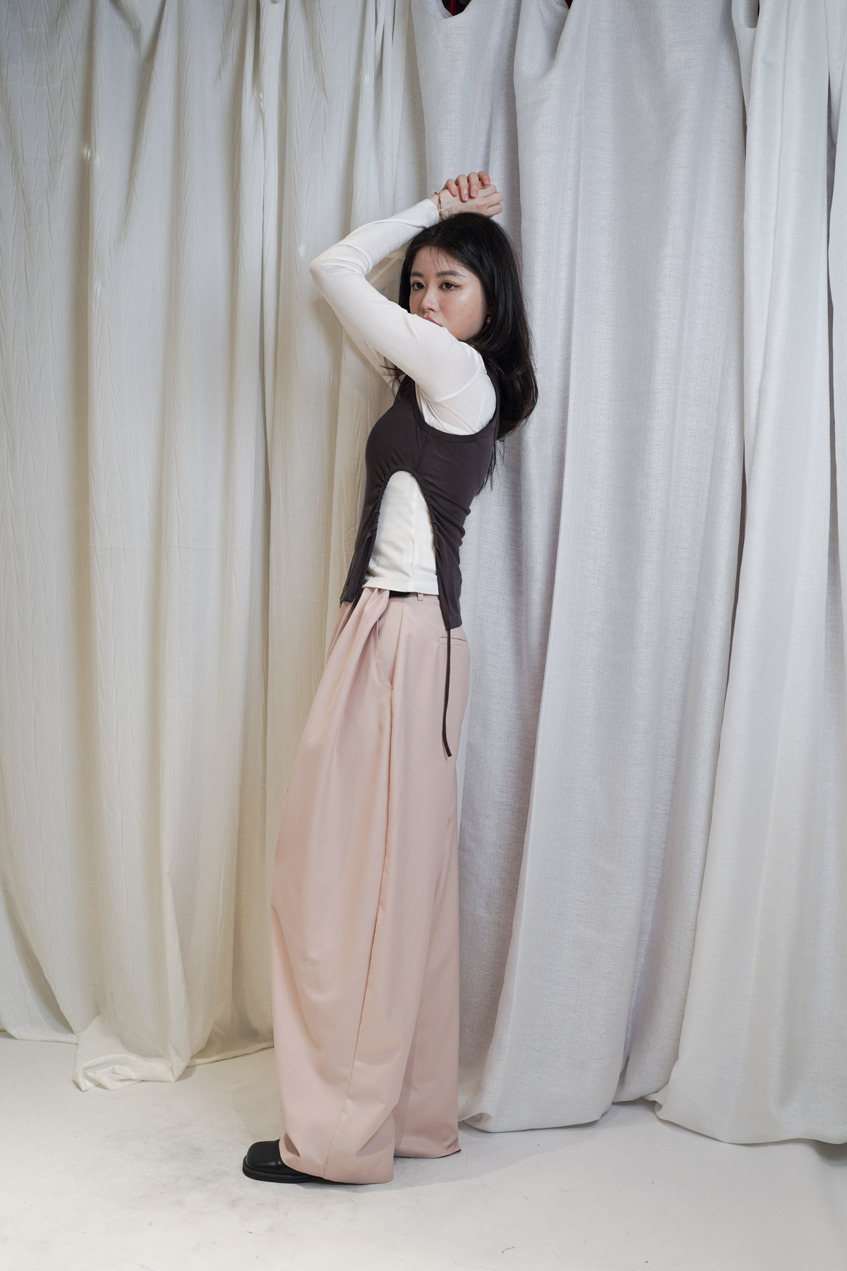 配襯 Balloon Pleated Trousers 增加下身份量感 平衡上身嘅修長線條