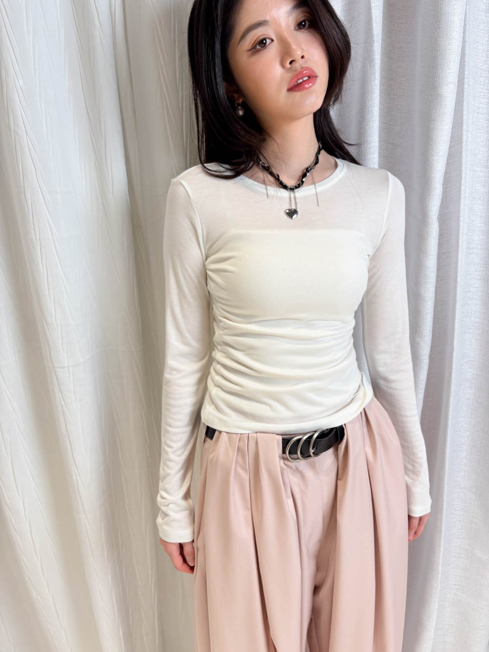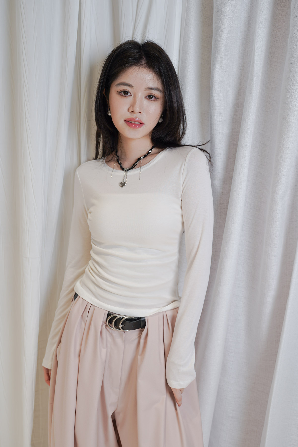 /同色系高質感: 「白色長袖 x 米色背心」營造出柔和嘅大地色系造型 展現溫柔氣場