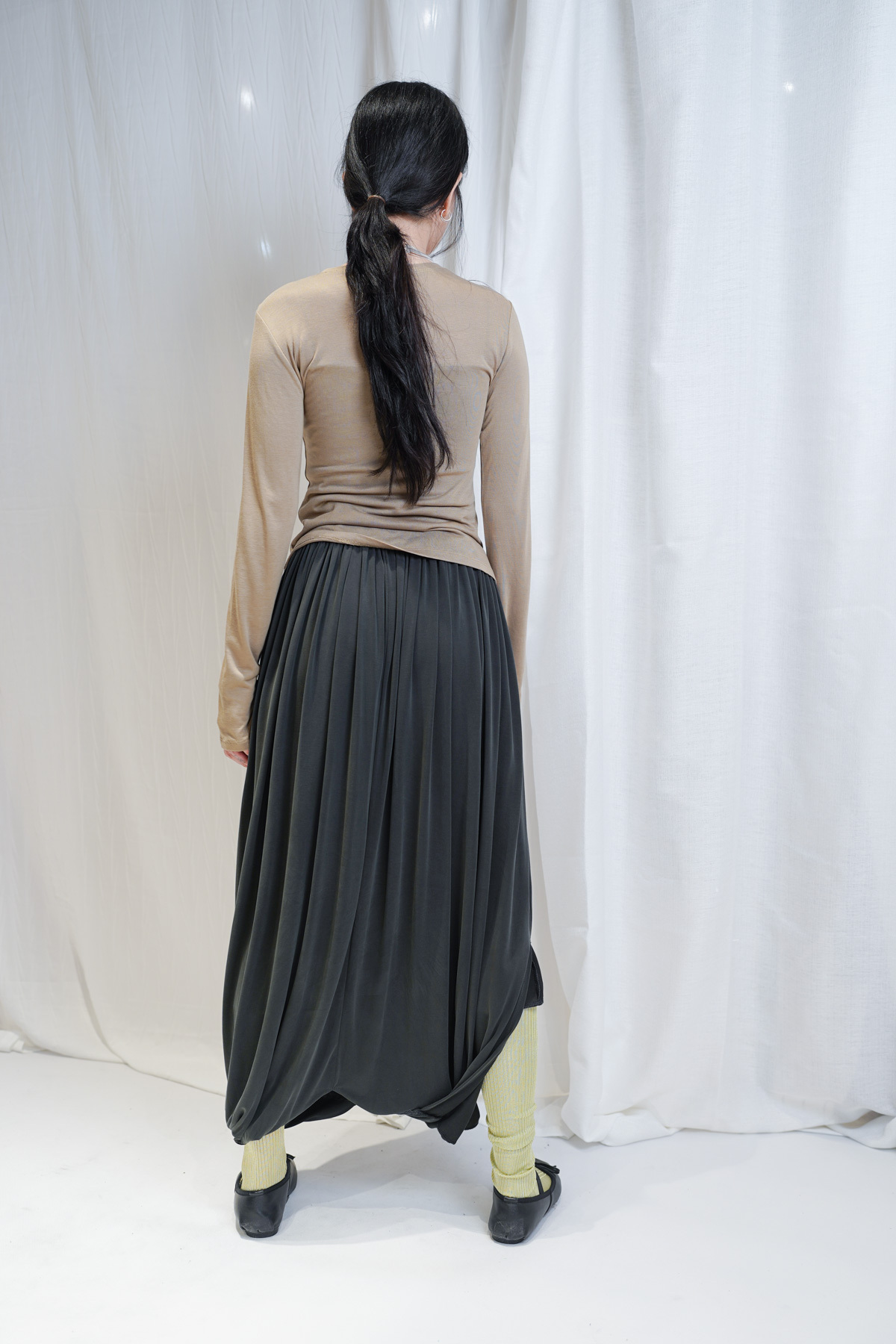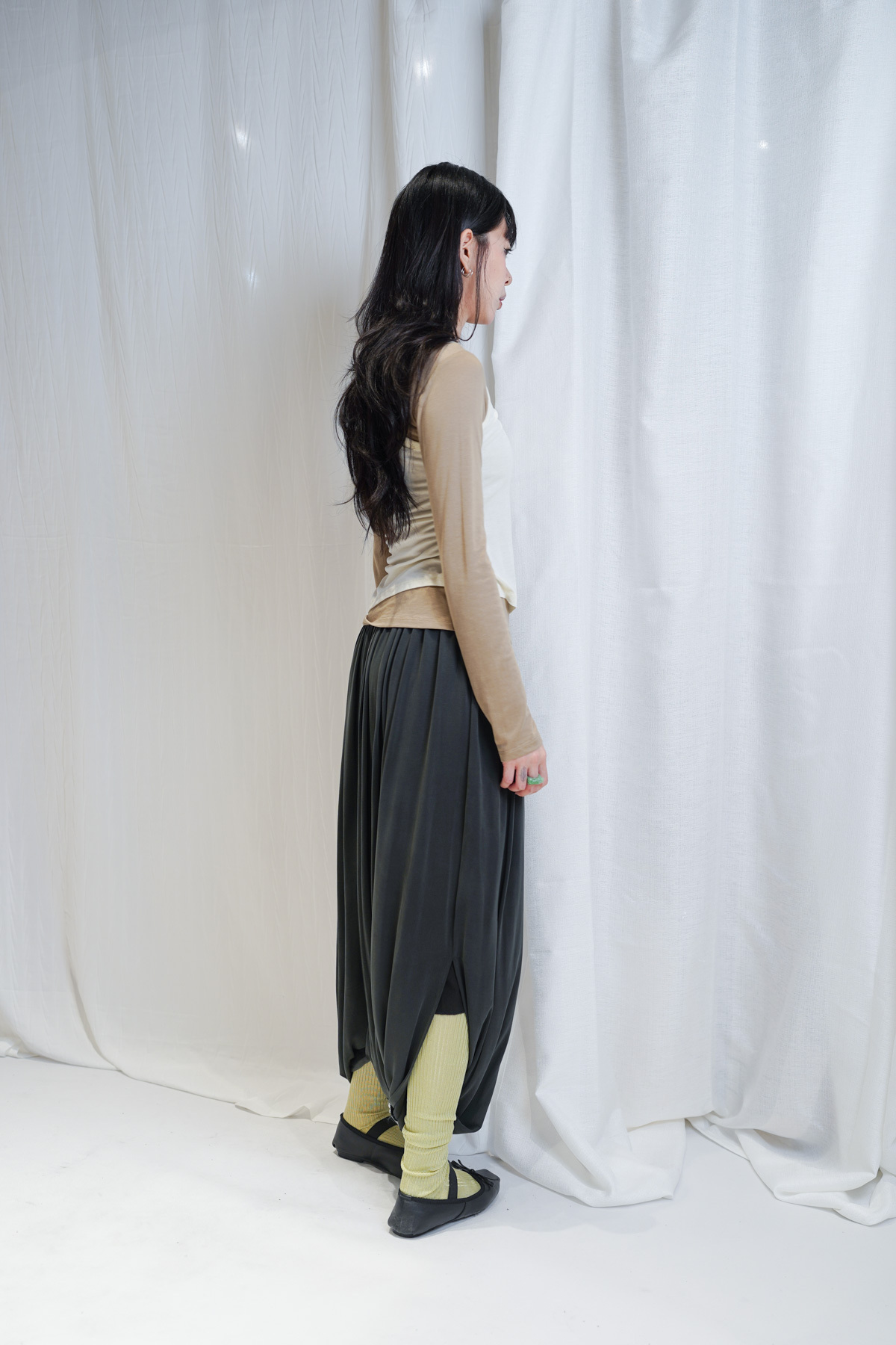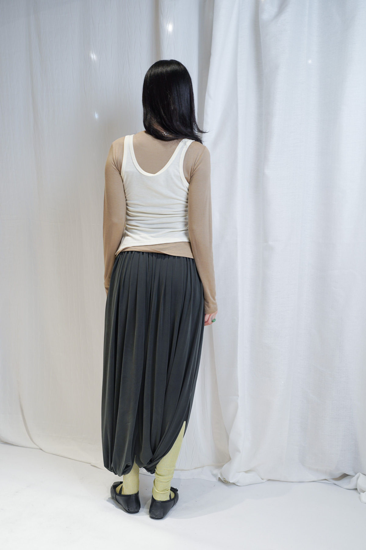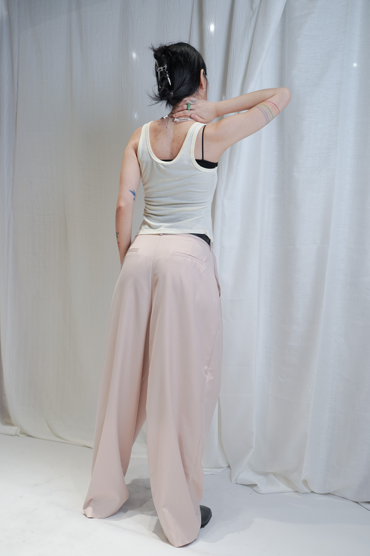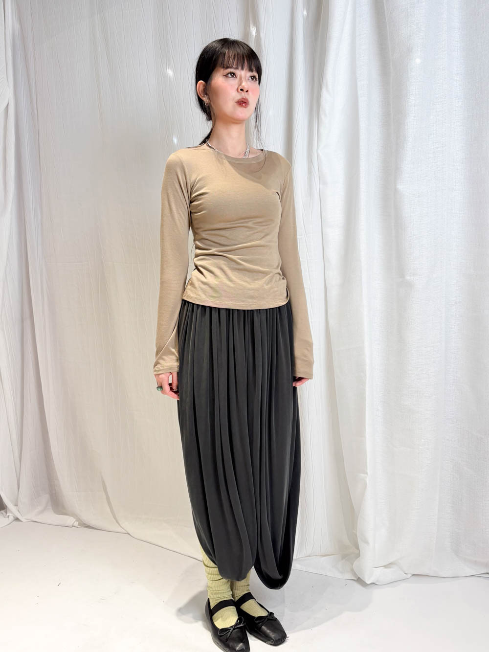配襯 Balloon Pleated Trousers 增加下身份量感 平衡上身嘅修長線條