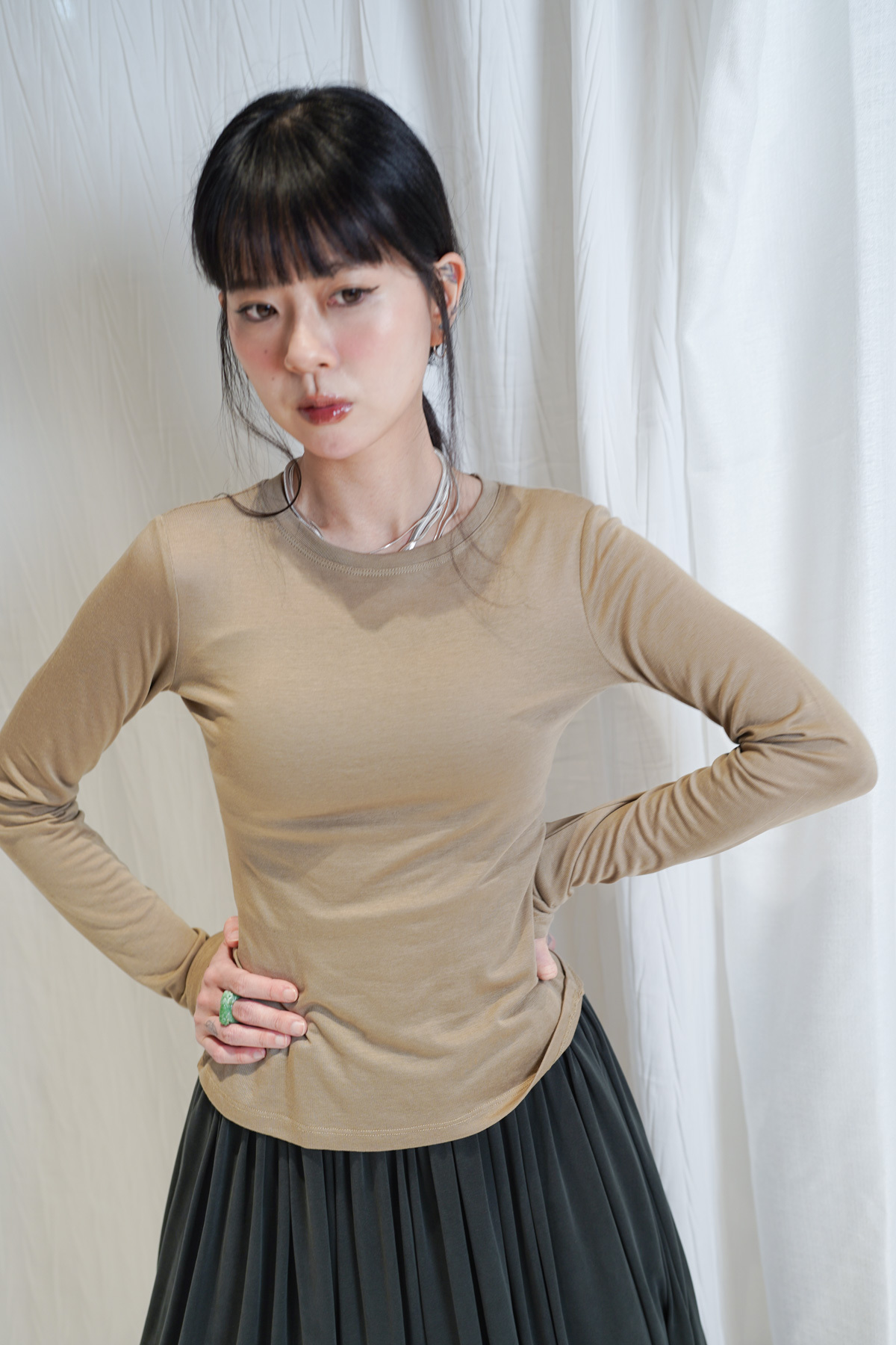 長袖圓領基本款 剪裁適中 唔會太過臃腫