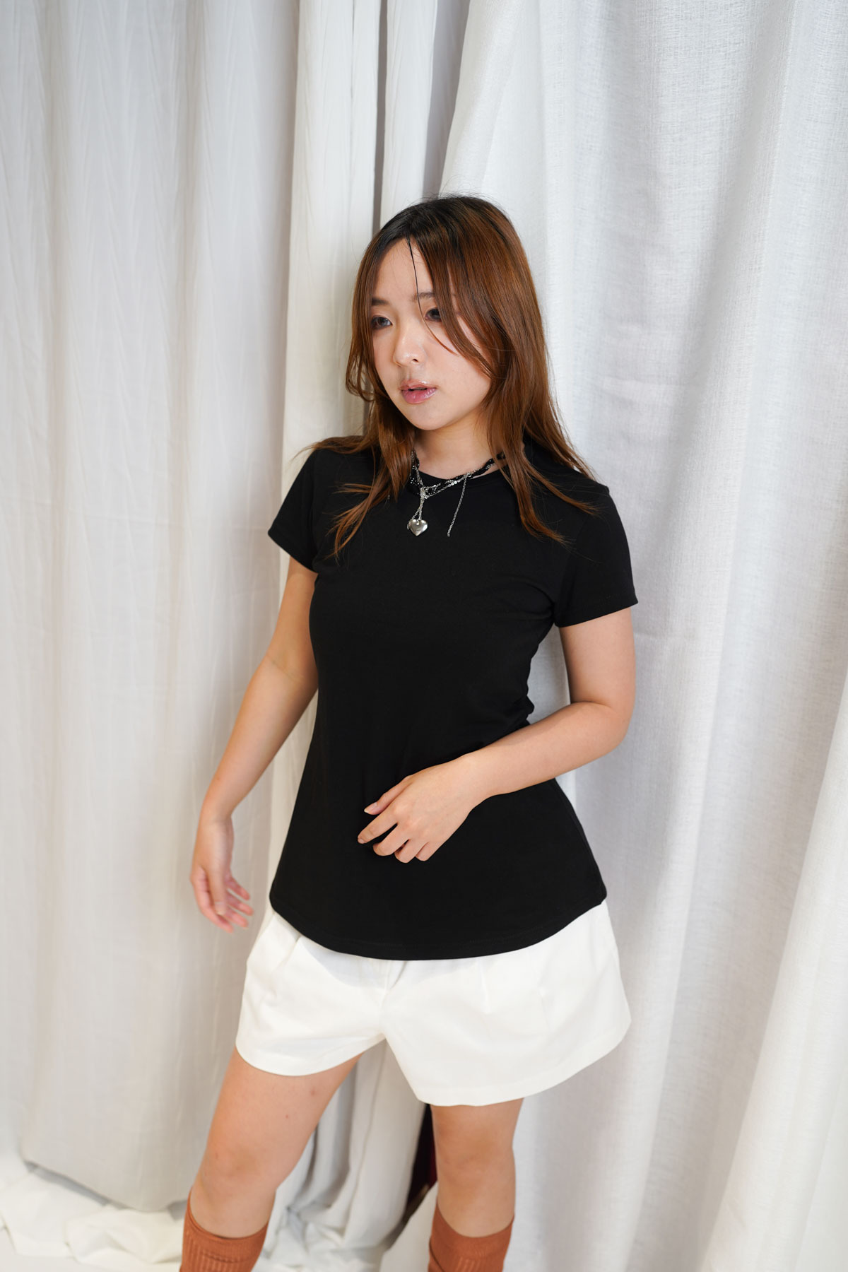 Love~Curvy waistline long tee (WHITE / GREEN / BLACK)
