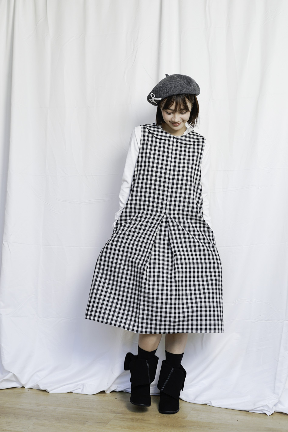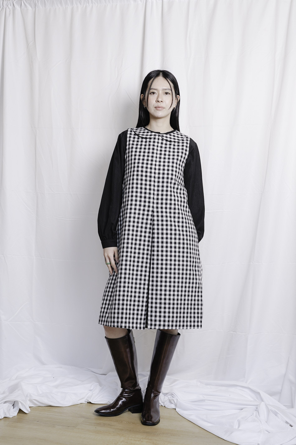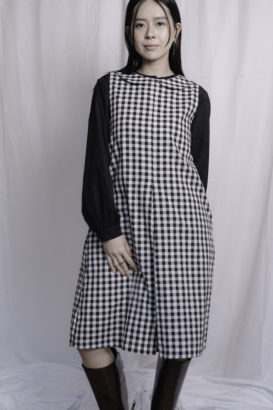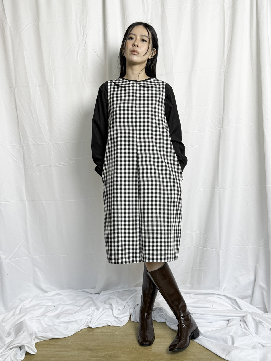Dolly collar Checked A shape Dress