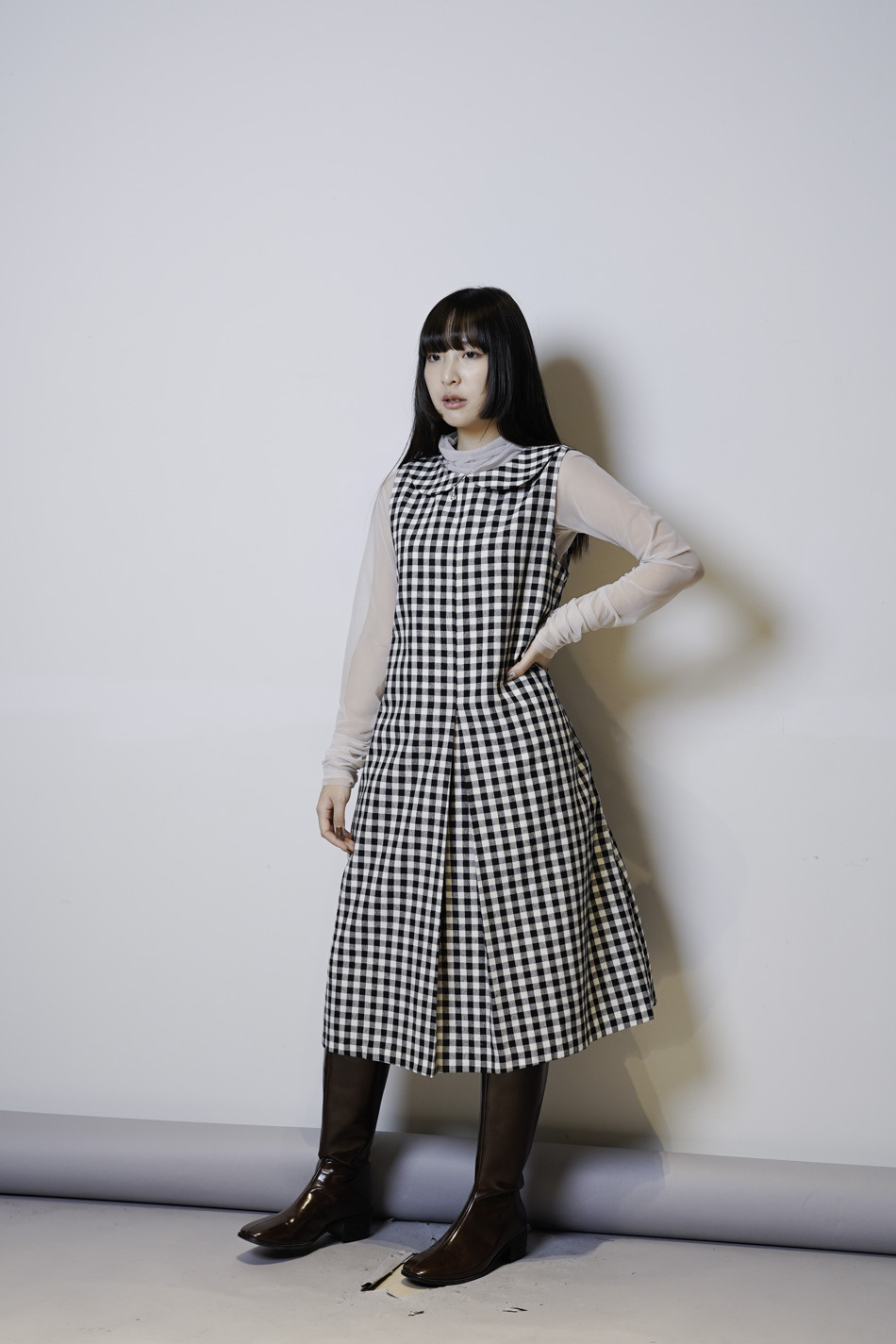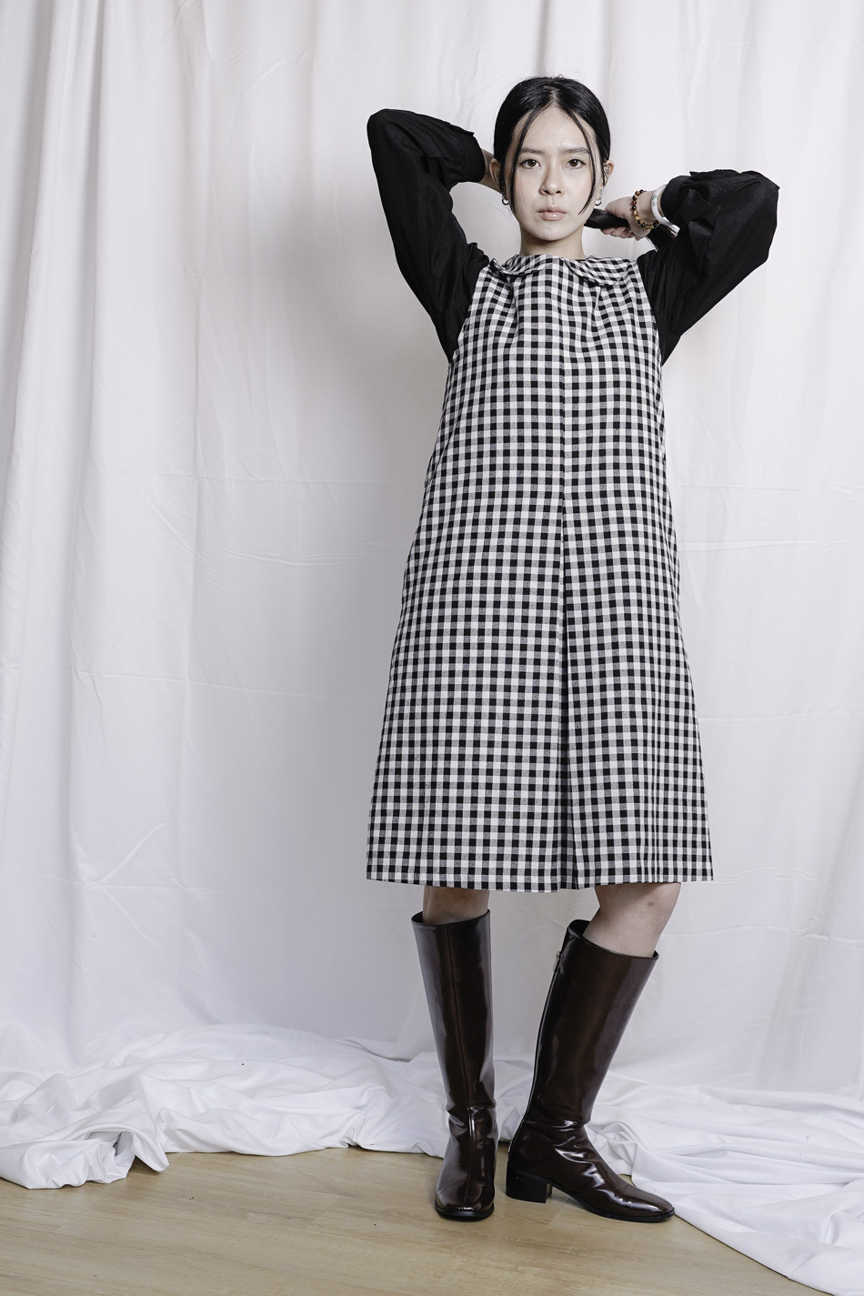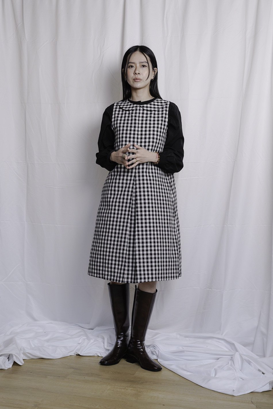 Dolly collar Checked A shape Dress