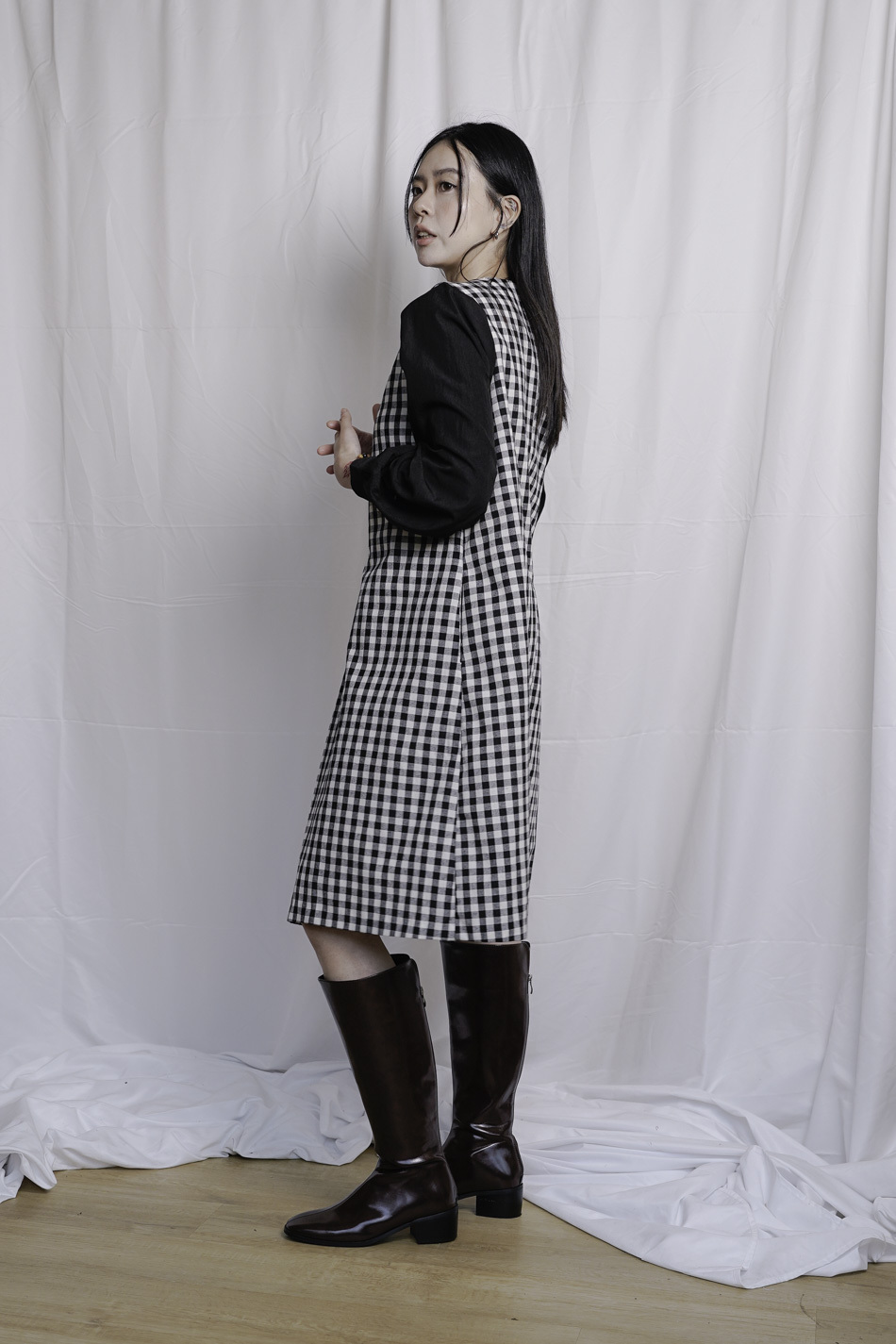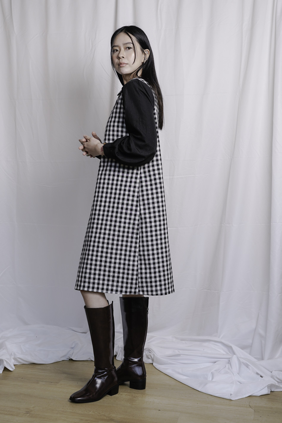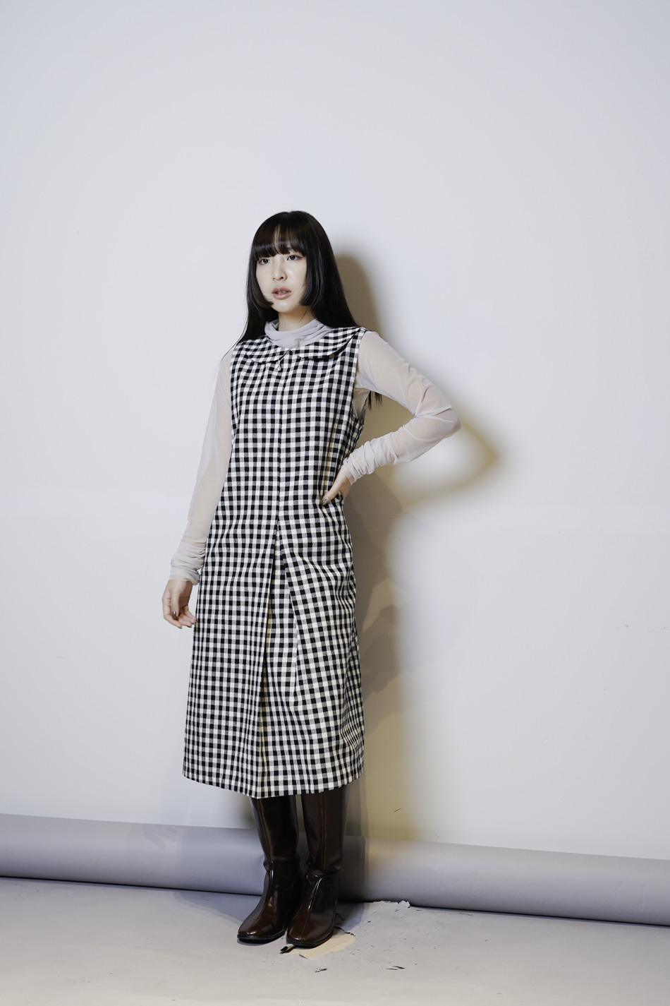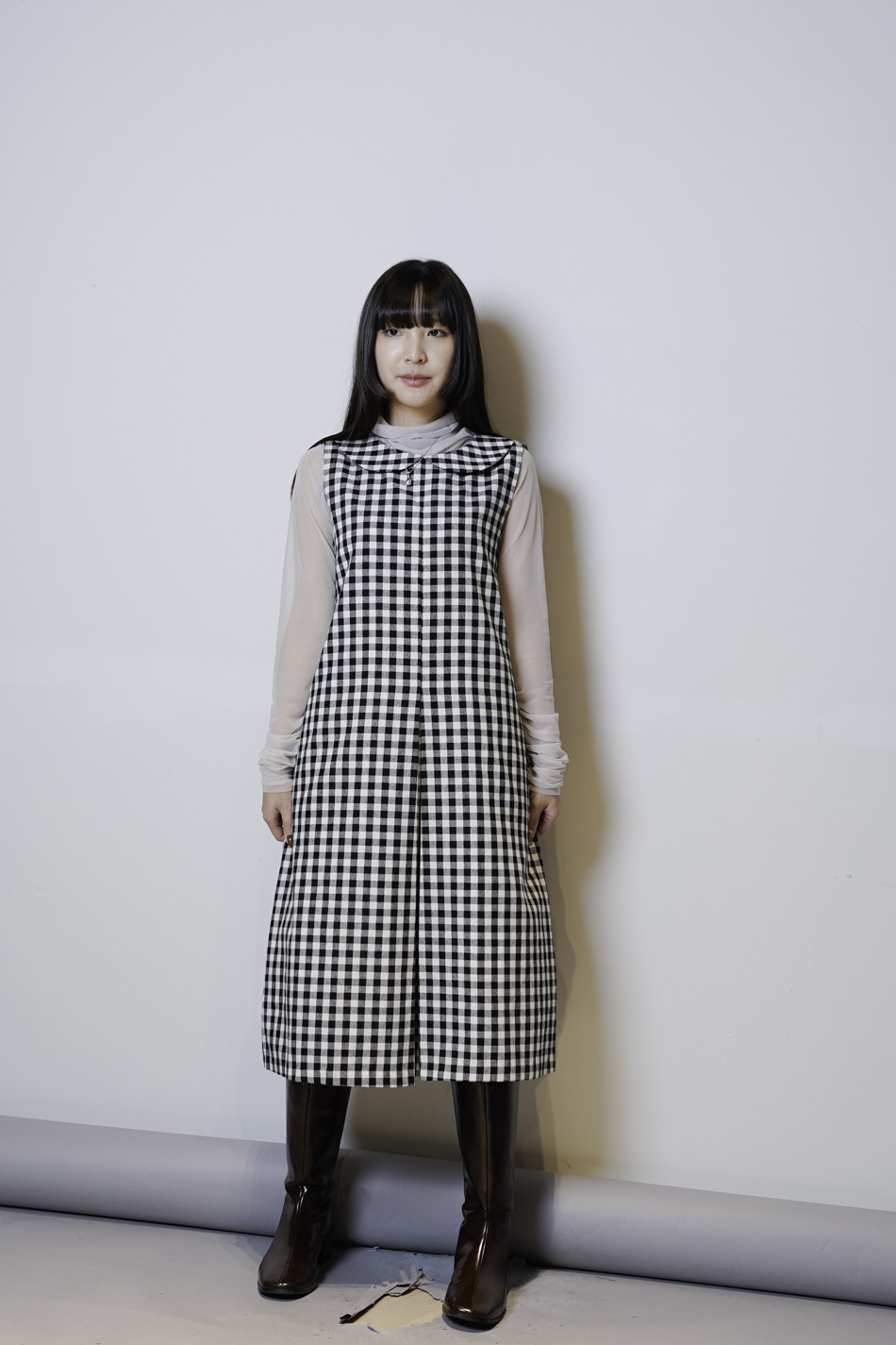 Dolly collar Checked A shape Dress