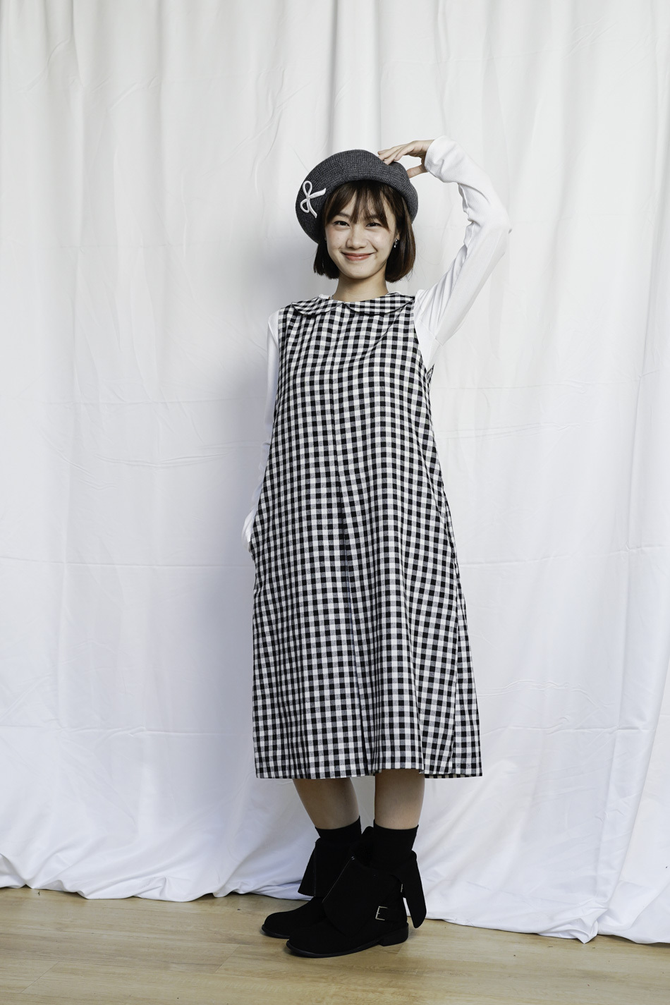 挺身質料/可愛圓領設計/經典日系格仔pattern/