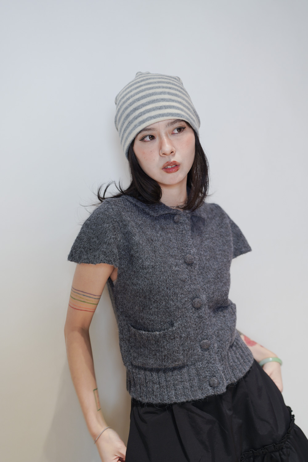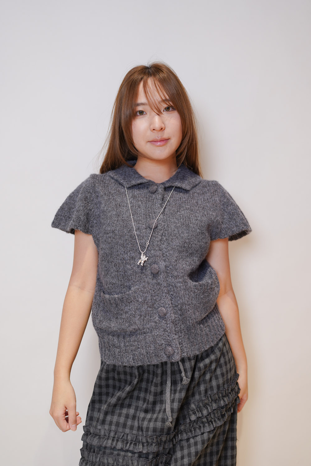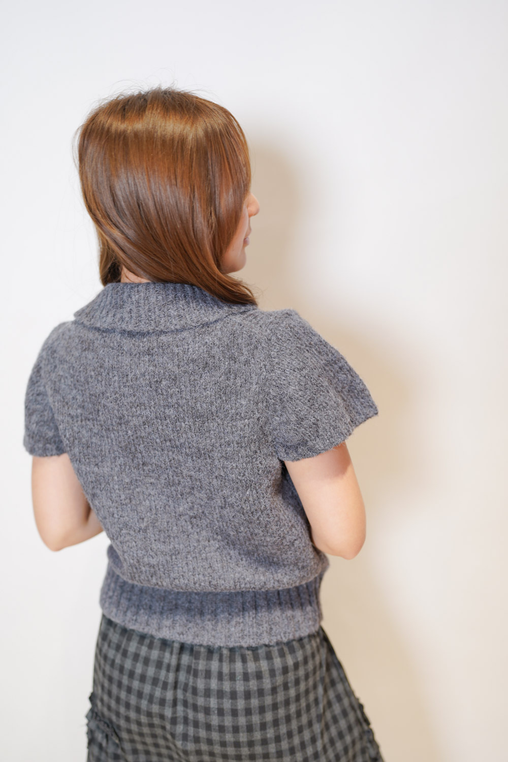 Dolly collar shirt knit (WHITE/ RED/ GREY) - wool 10%