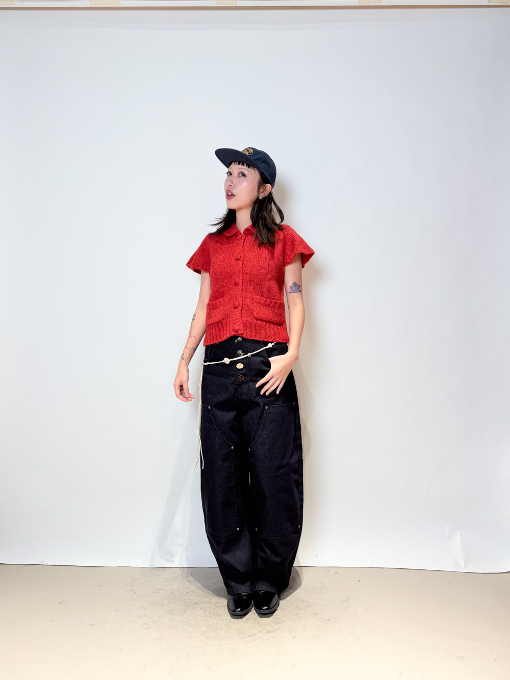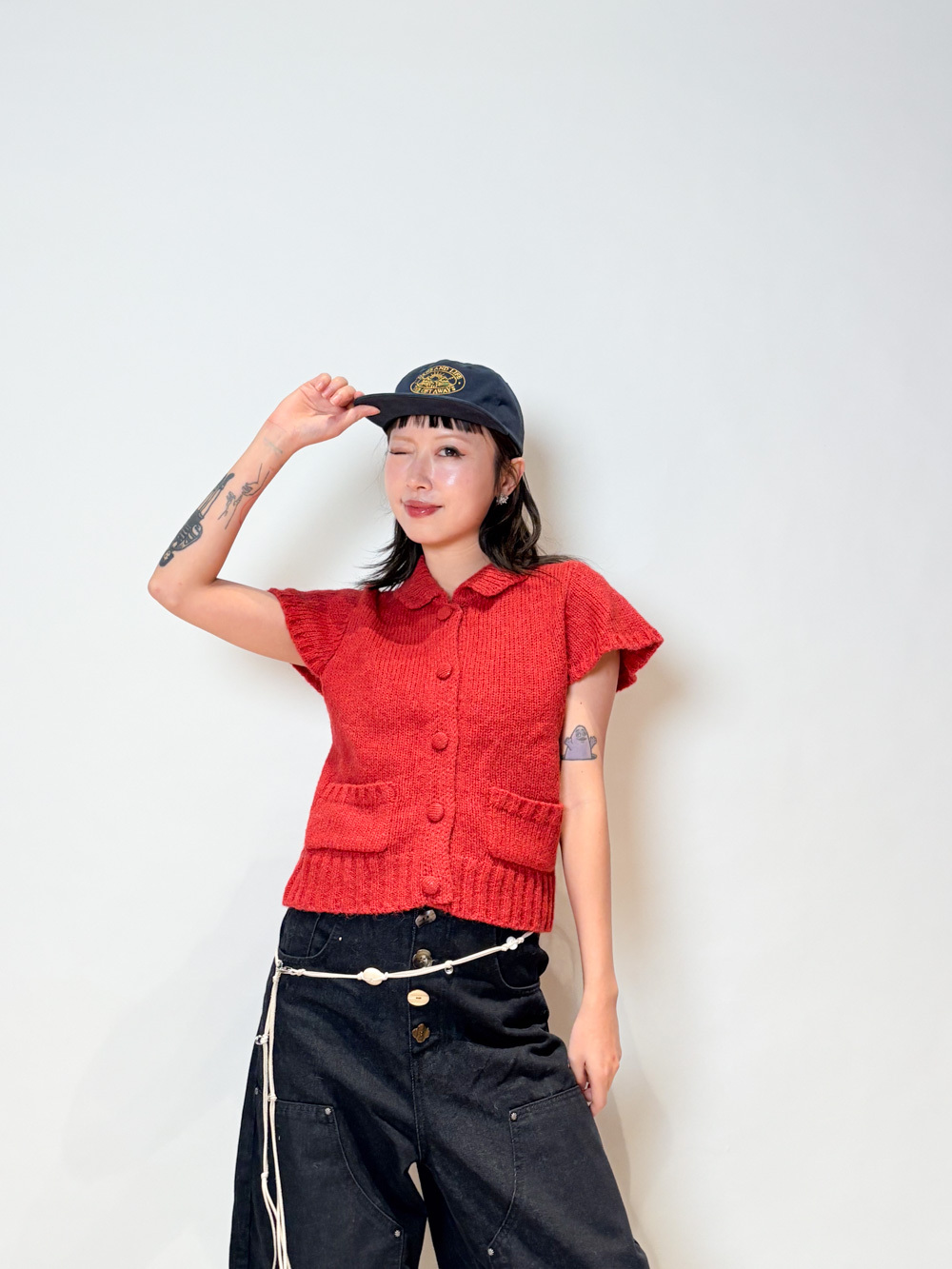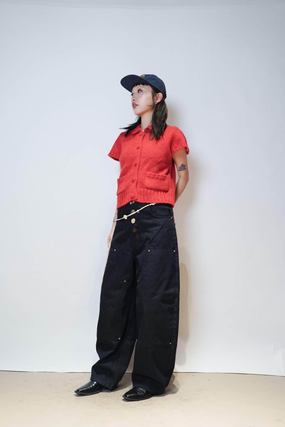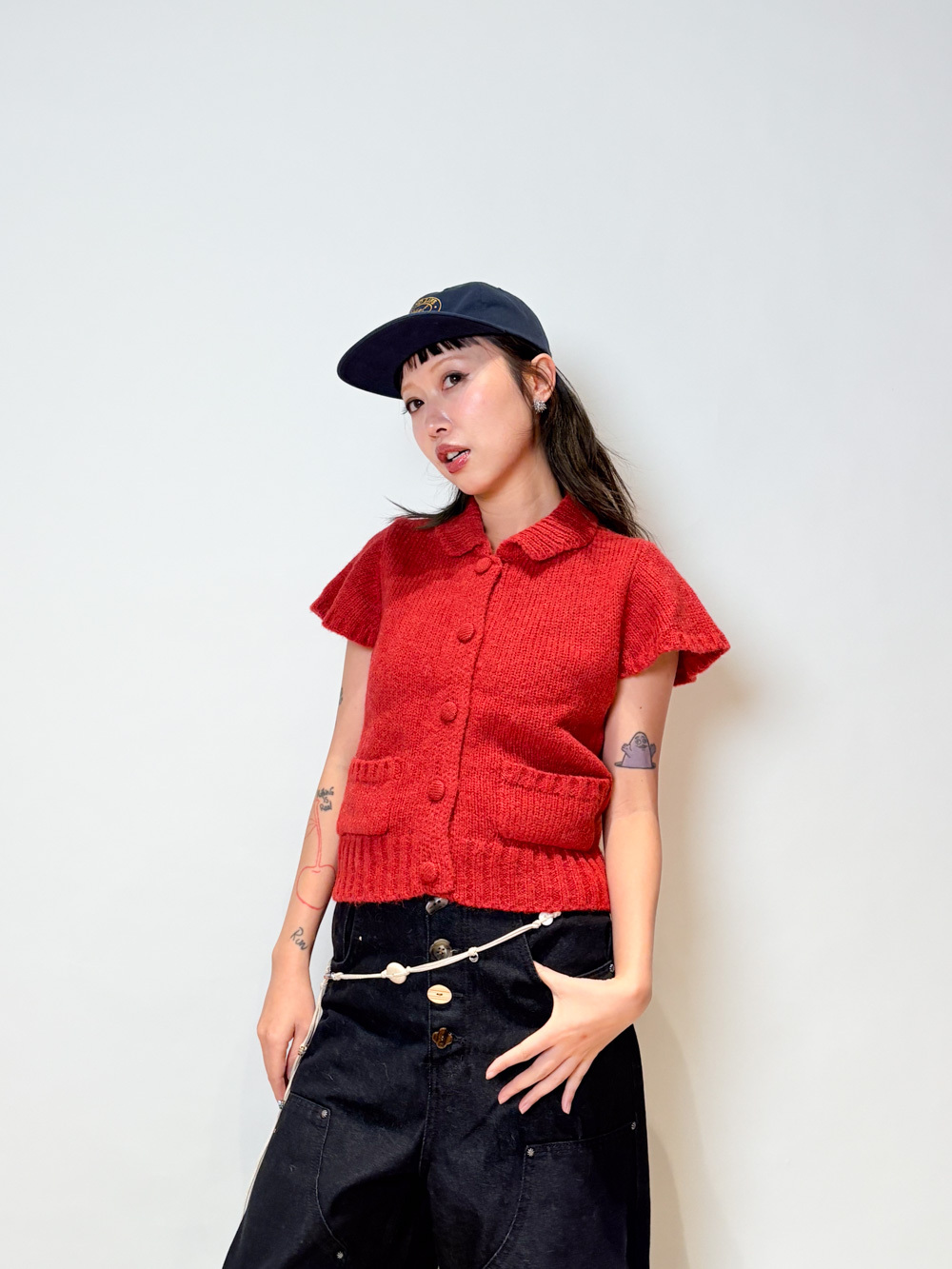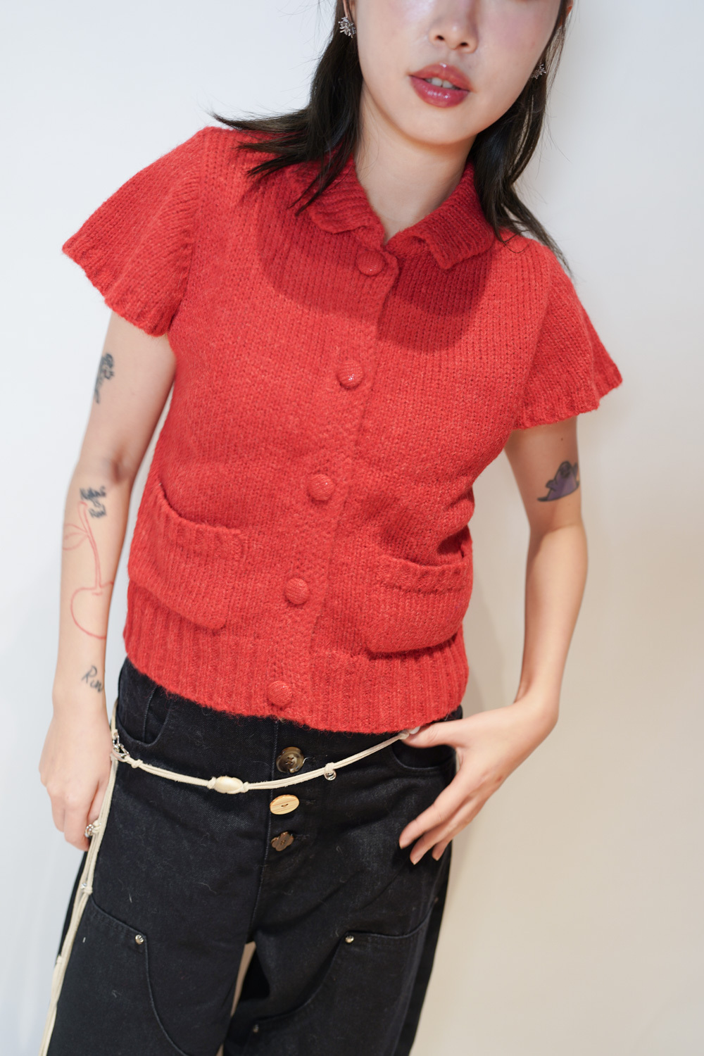 粗針織領口及下擺 同色布鈕釦 質感設計款/