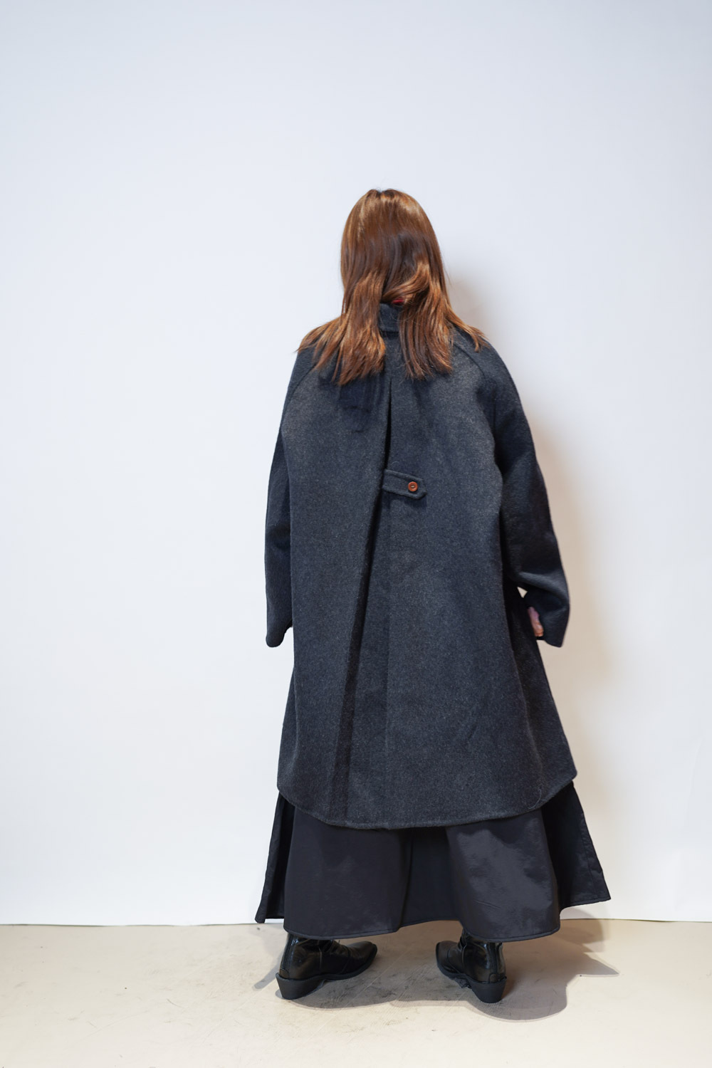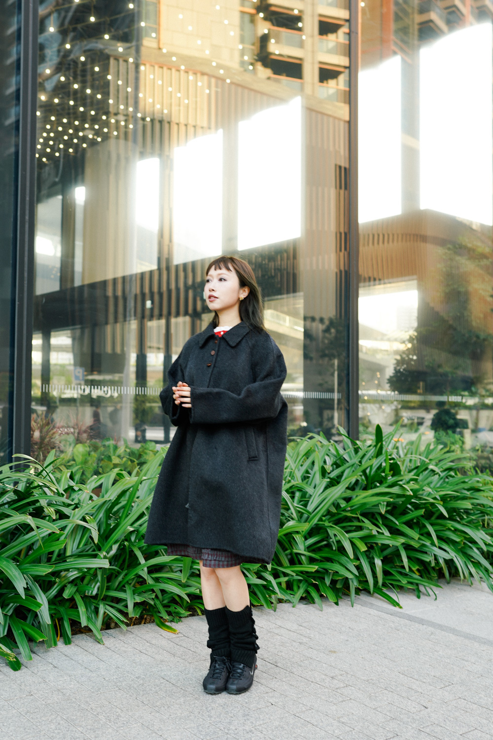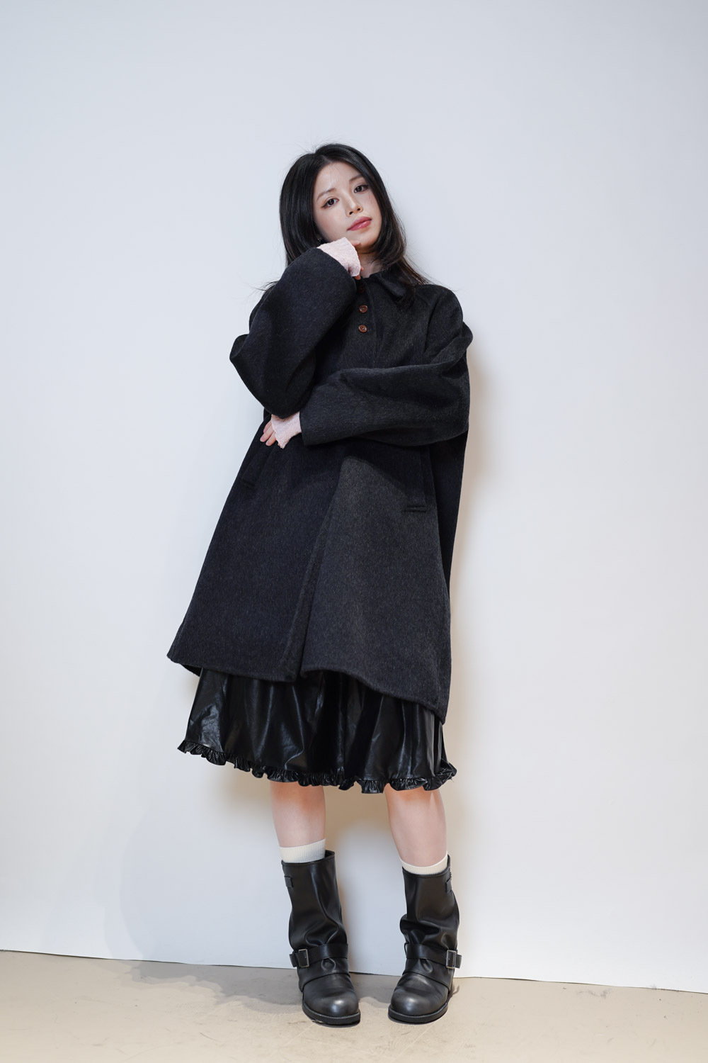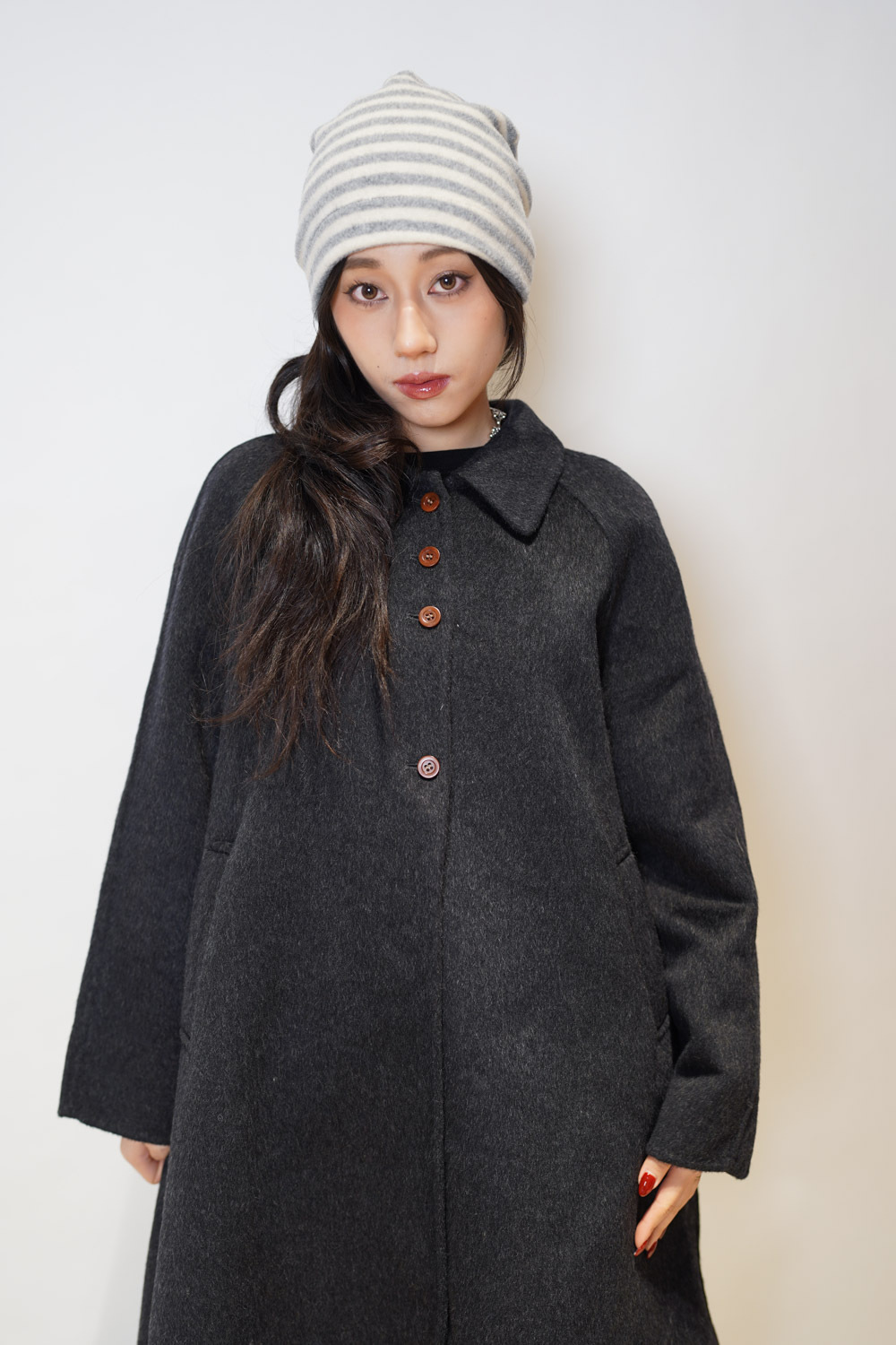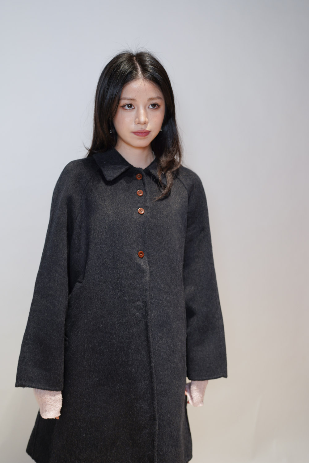 Dolly Retro A shape long coat (LIGHT GREY/ CHARCOL)-100% wool