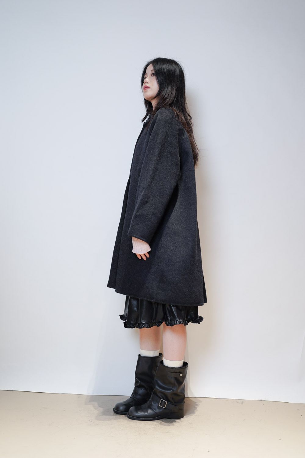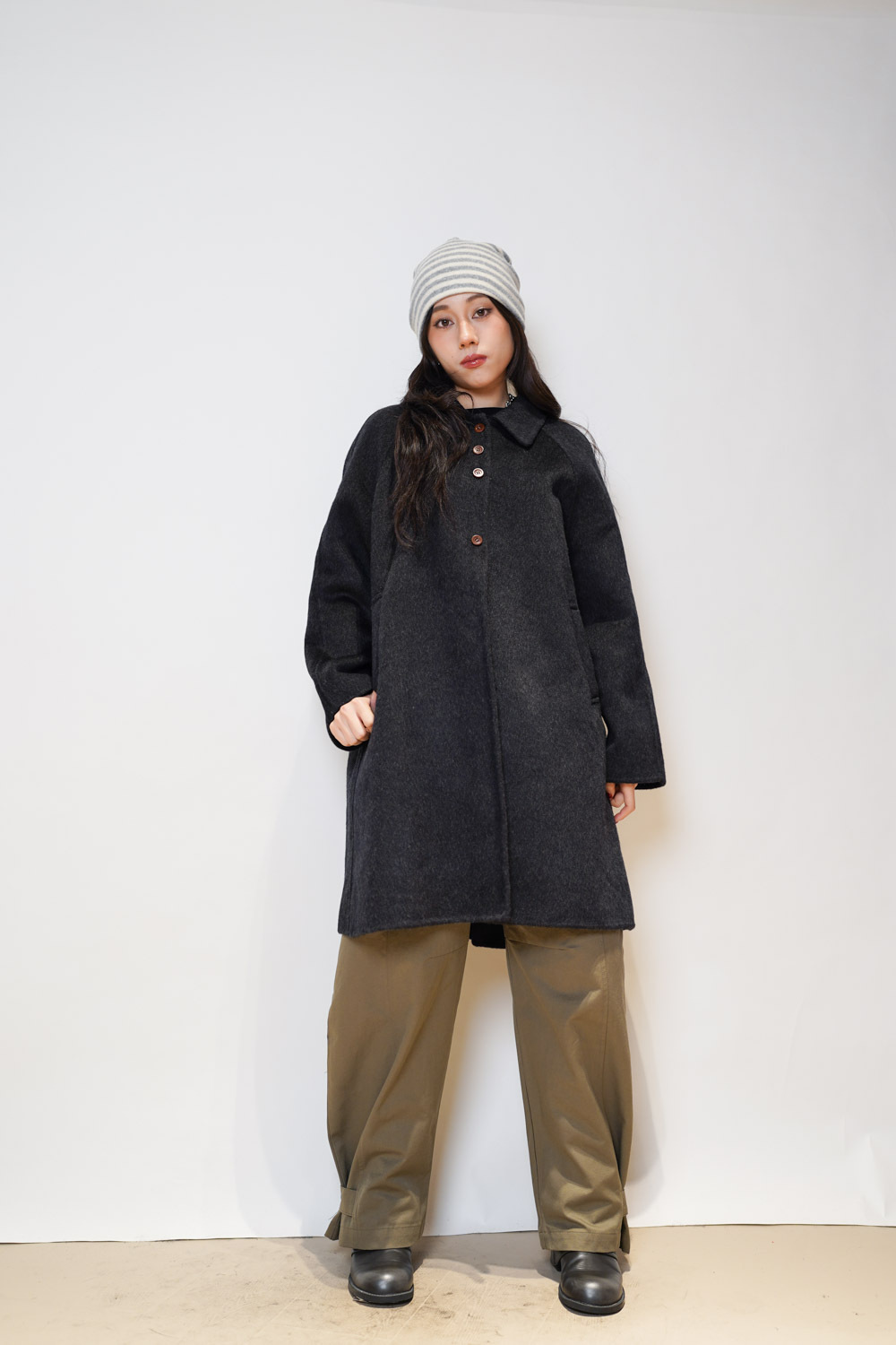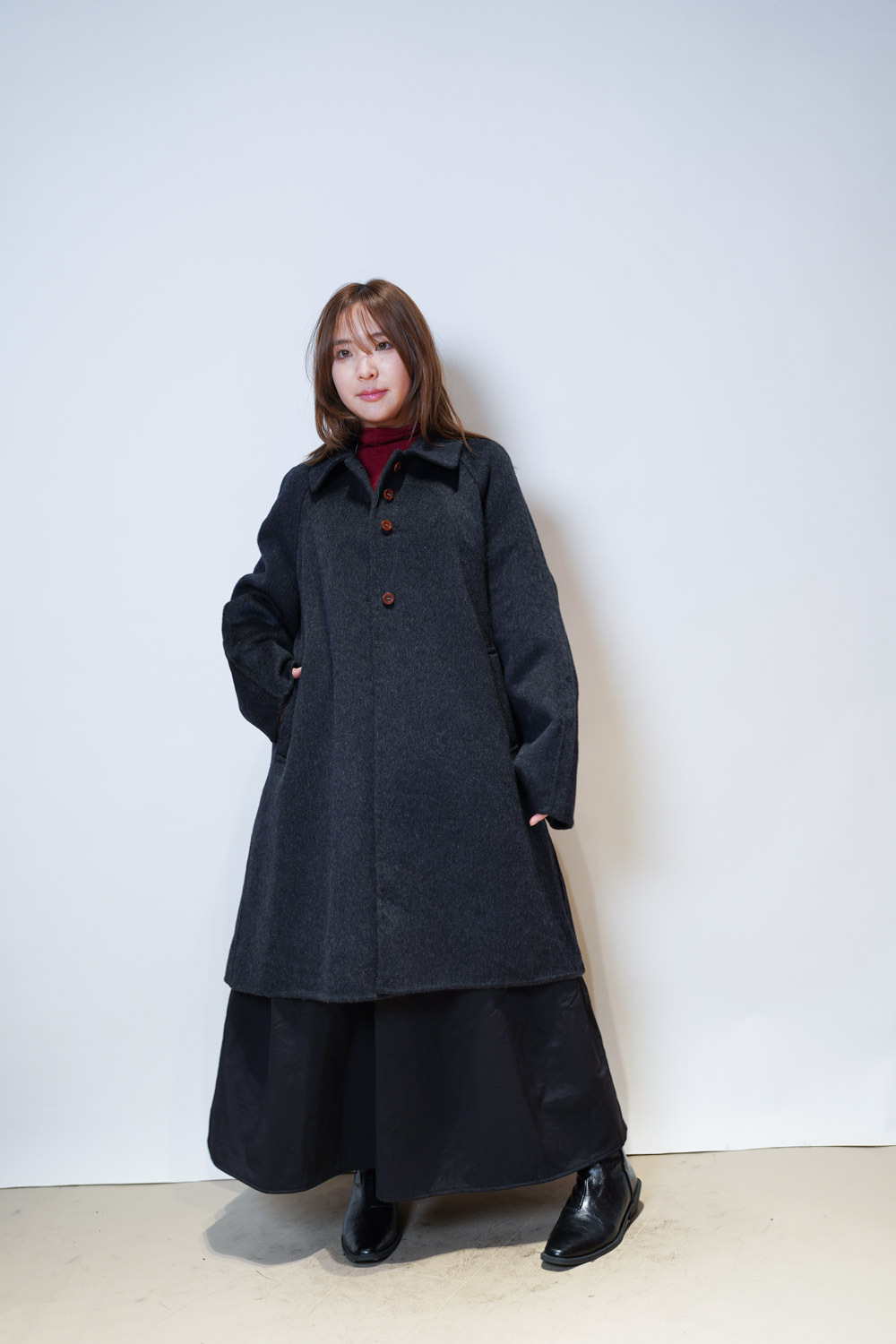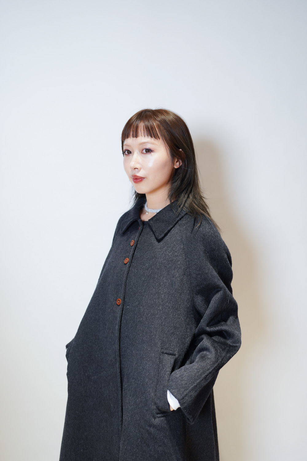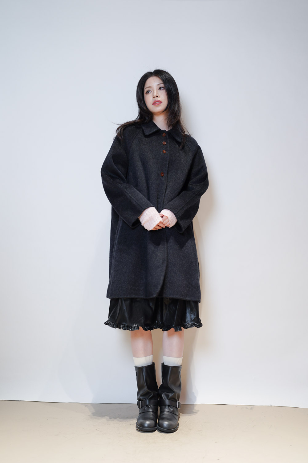 Dolly Retro A shape long coat (LIGHT GREY/ CHARCOL)-100% wool