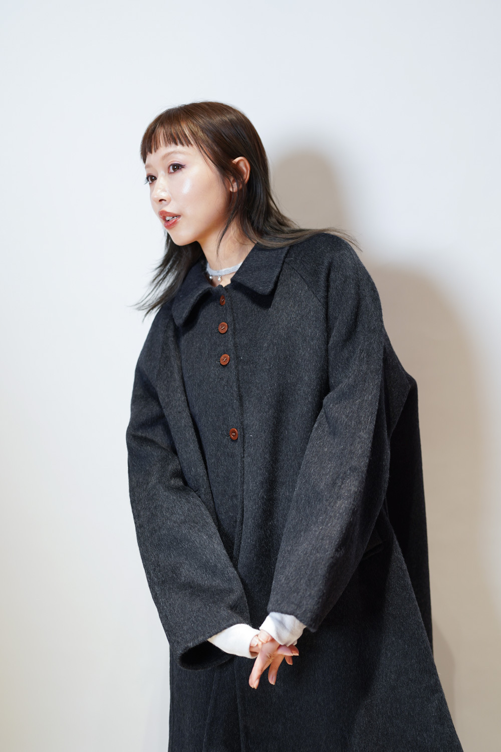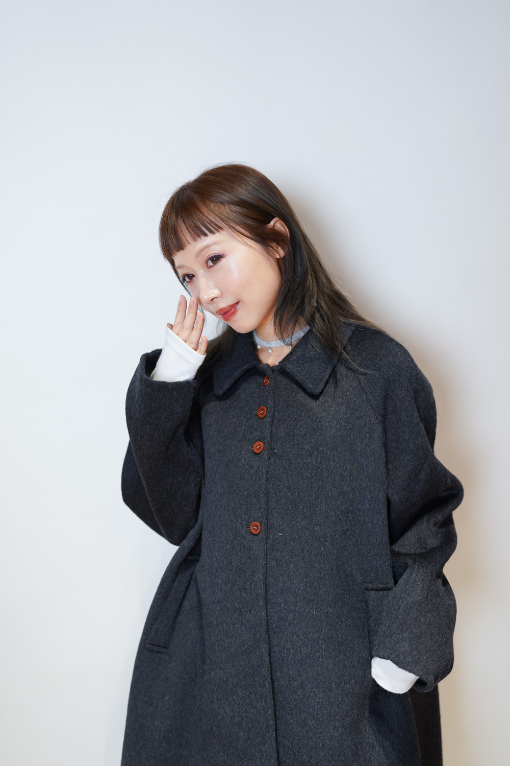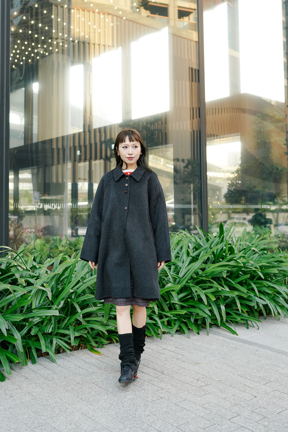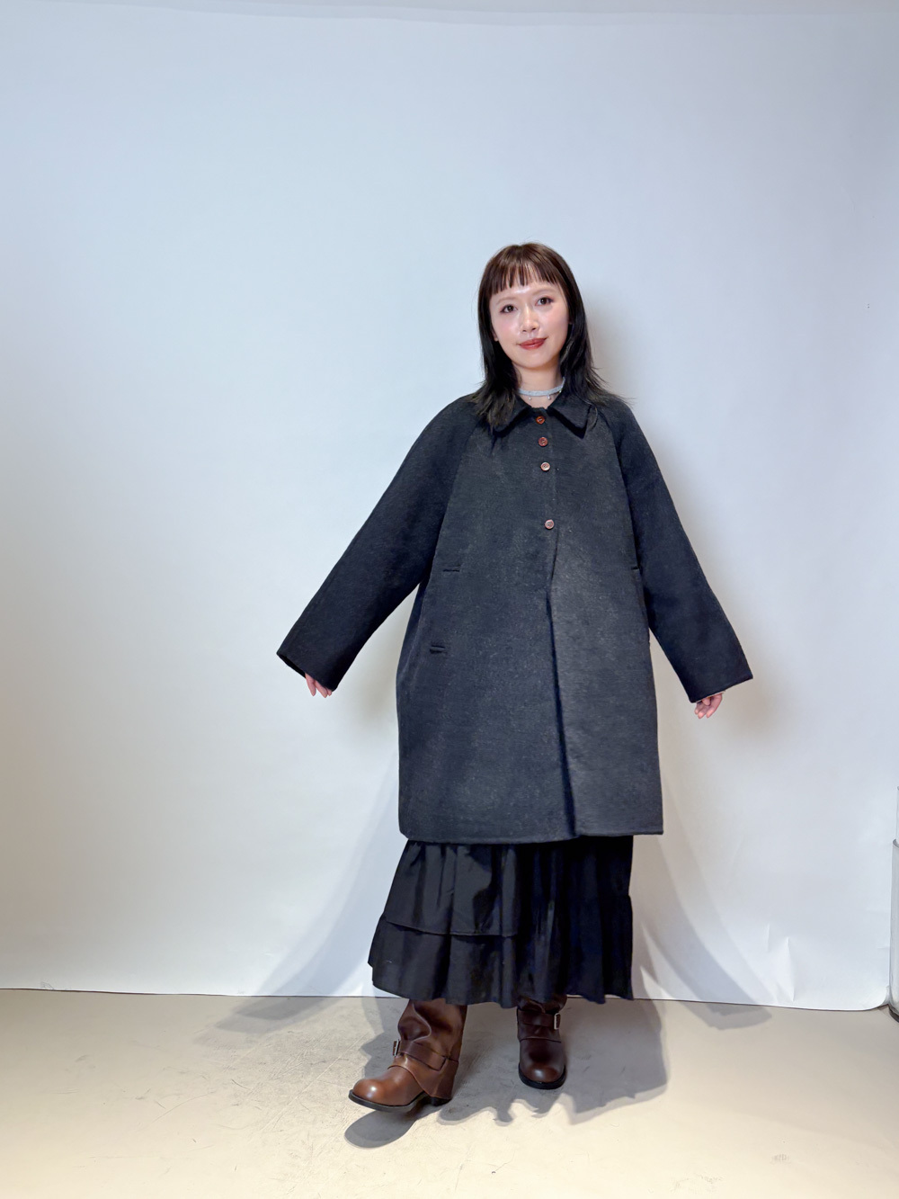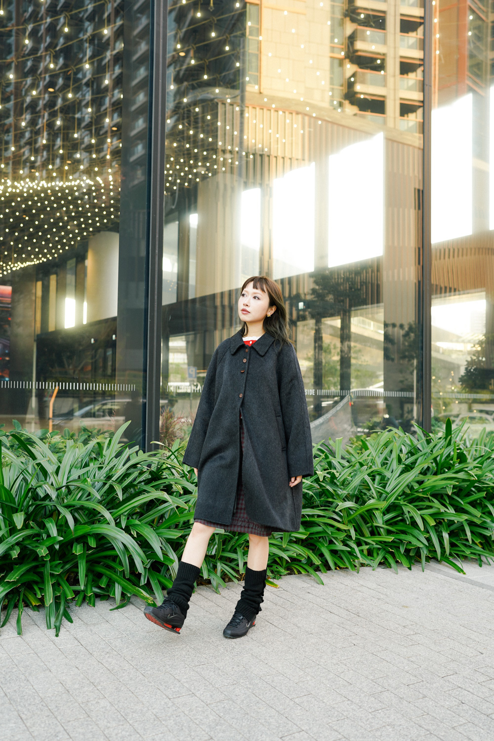 Dolly Retro A shape long coat (LIGHT GREY/ CHARCOL)-100% wool