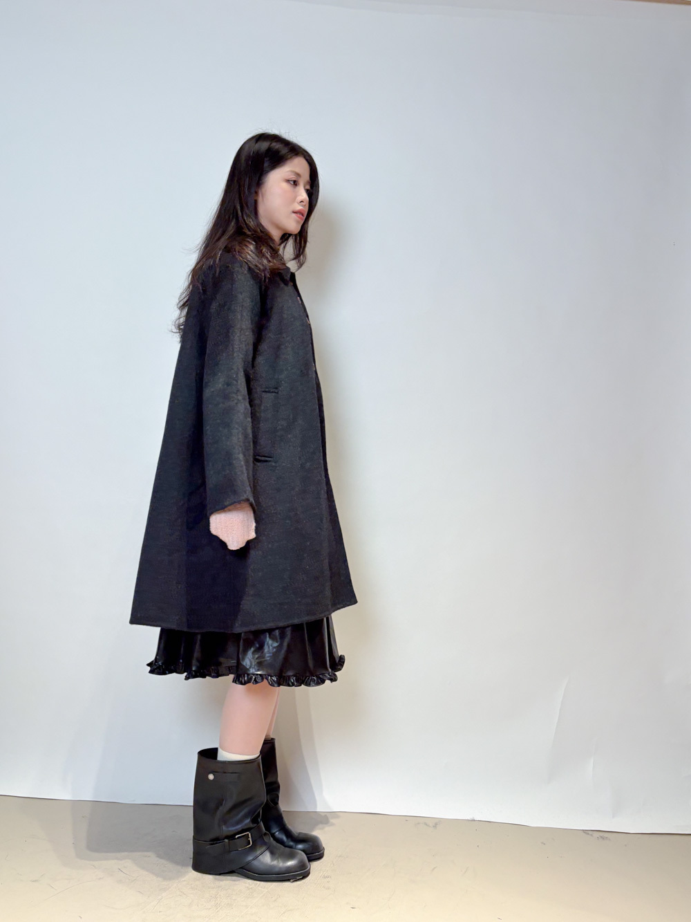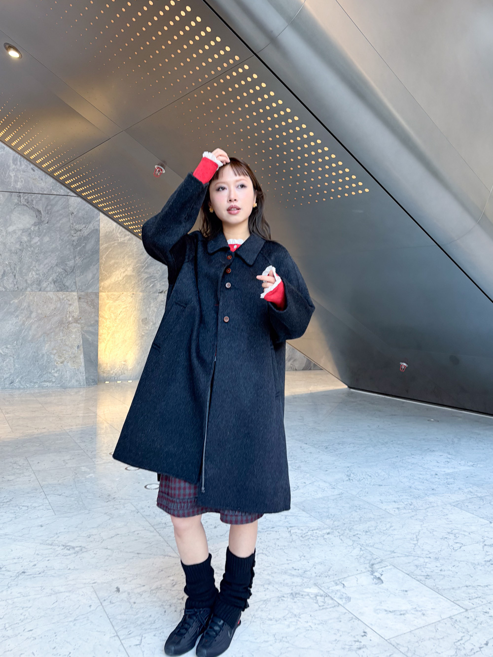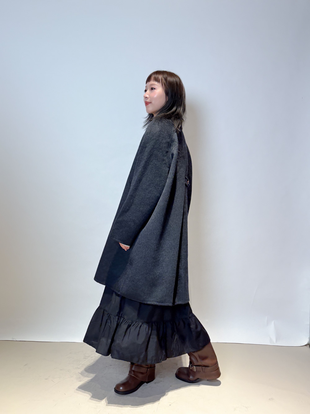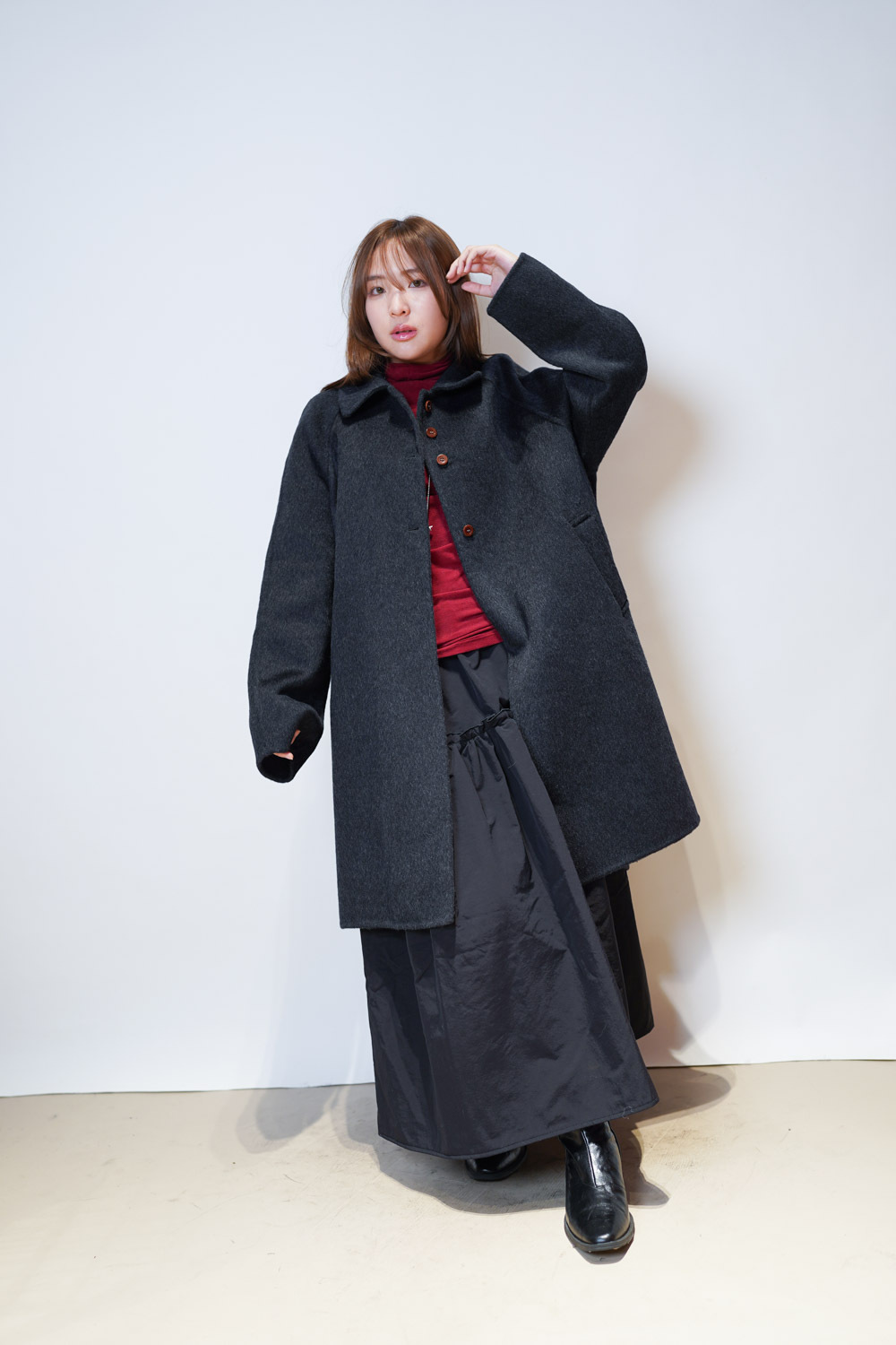 Dolly Retro A shape long coat (LIGHT GREY/ CHARCOL)-100% wool