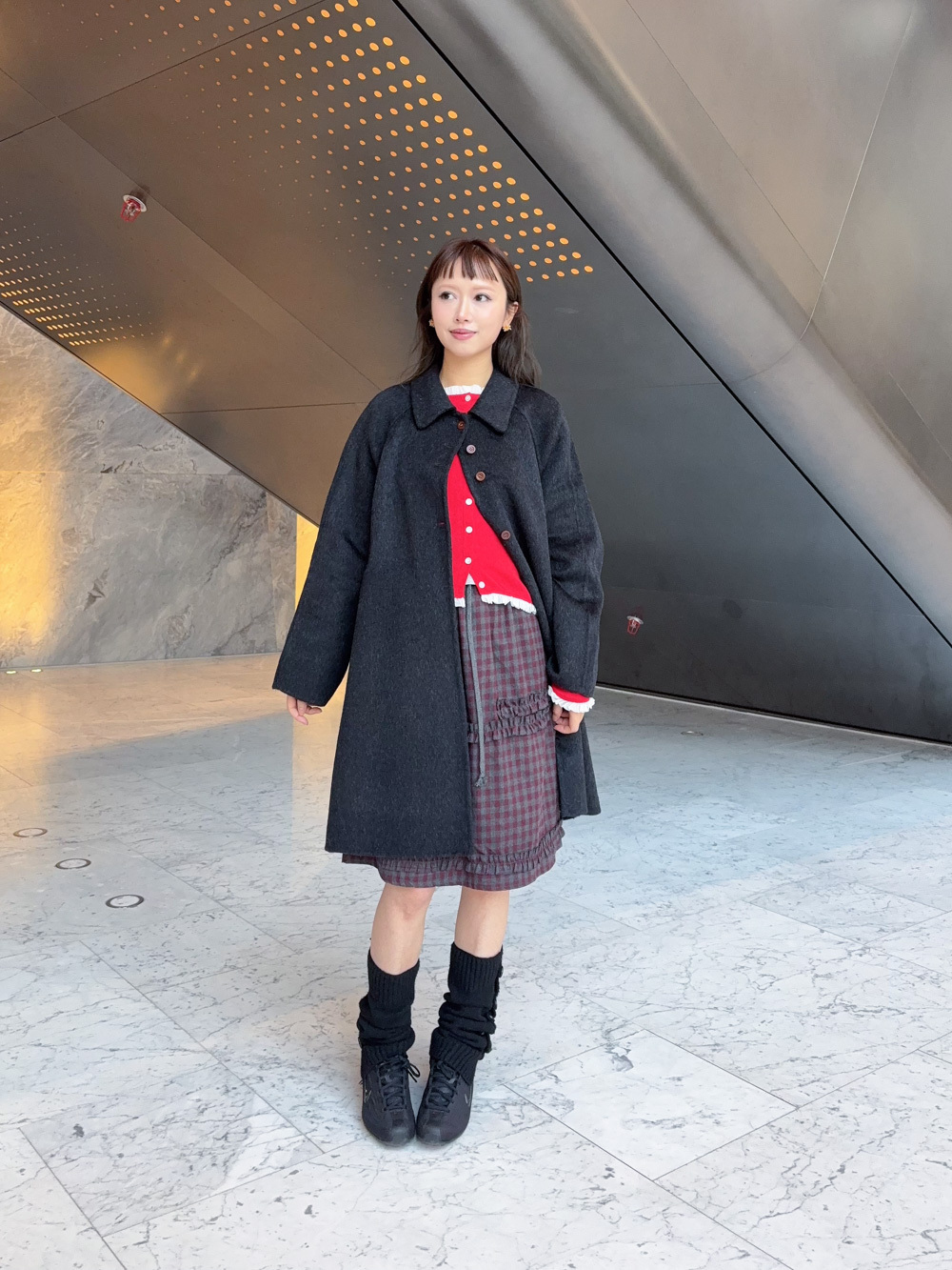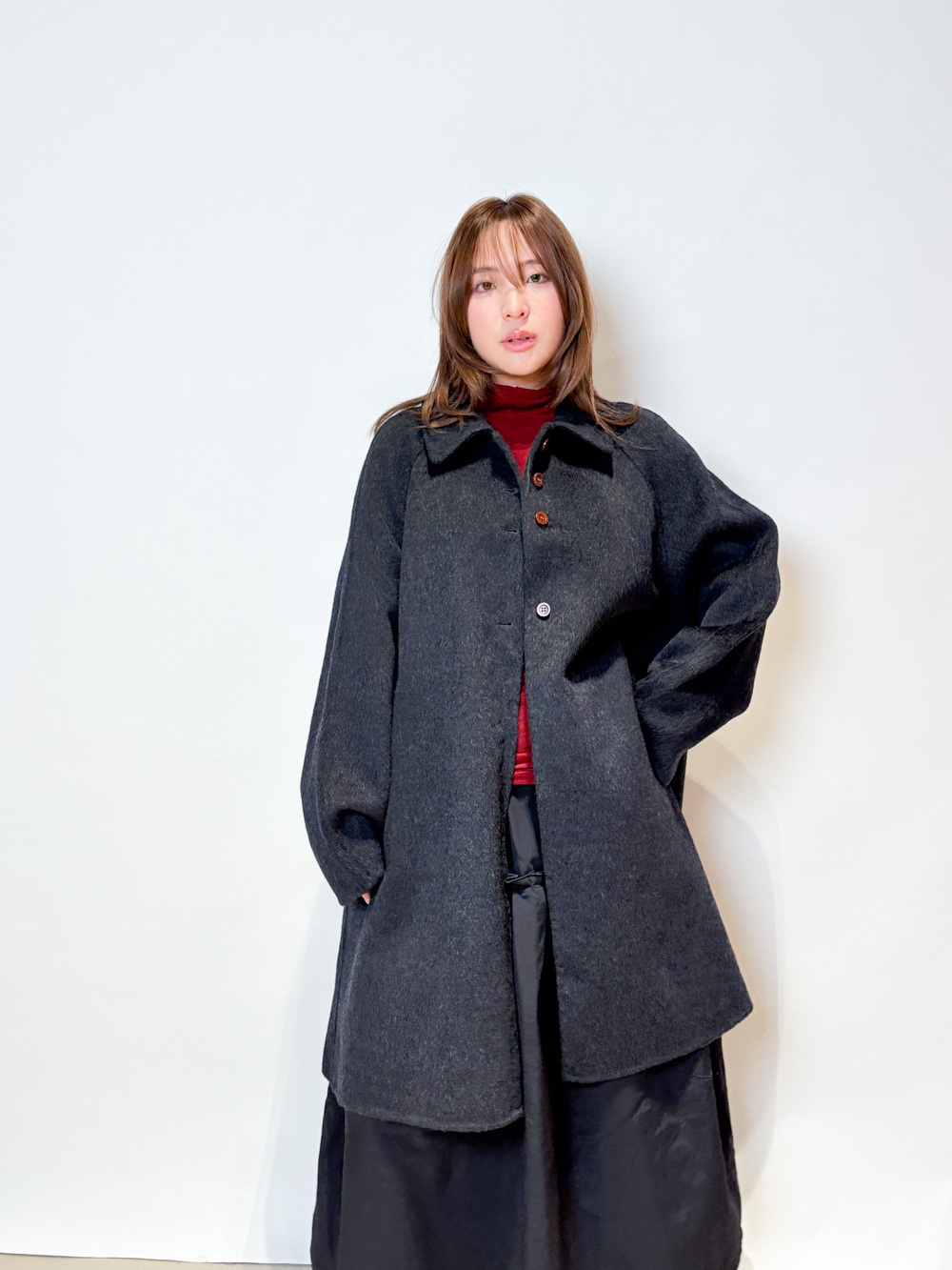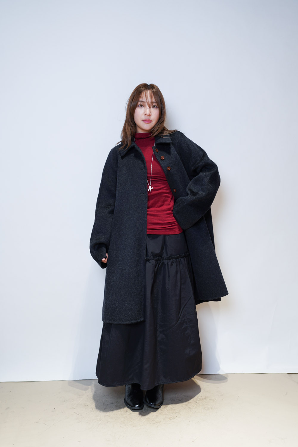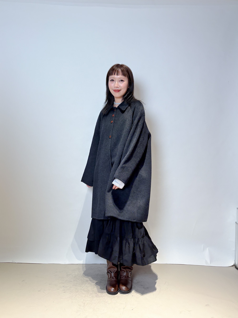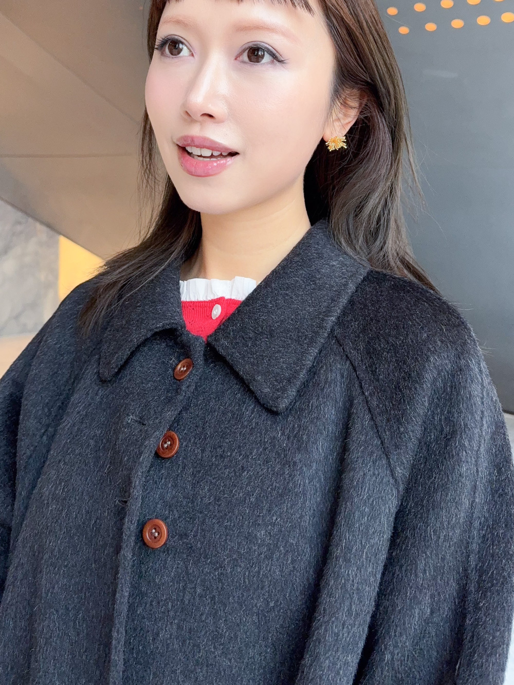 Dolly Retro A shape long coat (LIGHT GREY/ CHARCOL)-100% wool