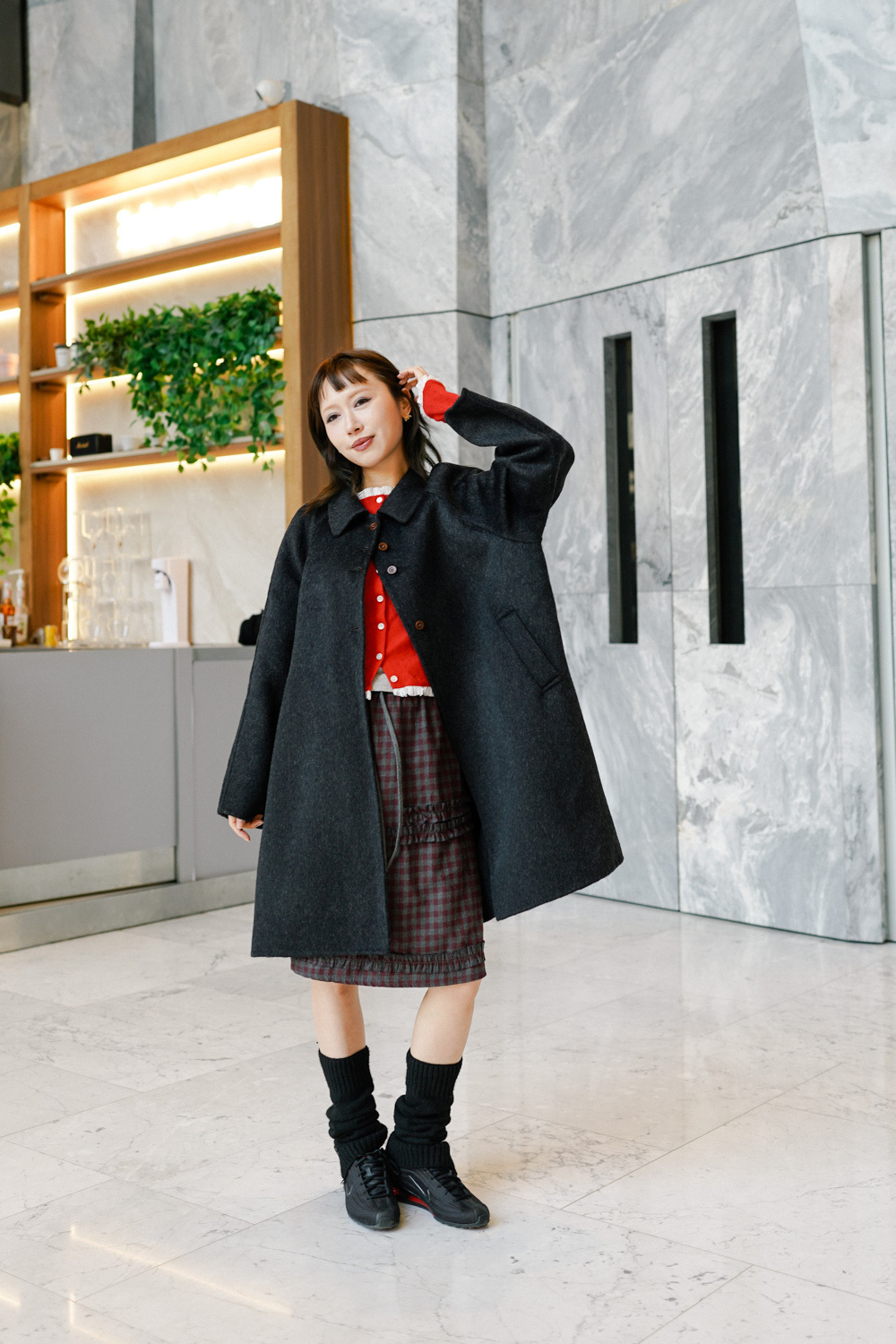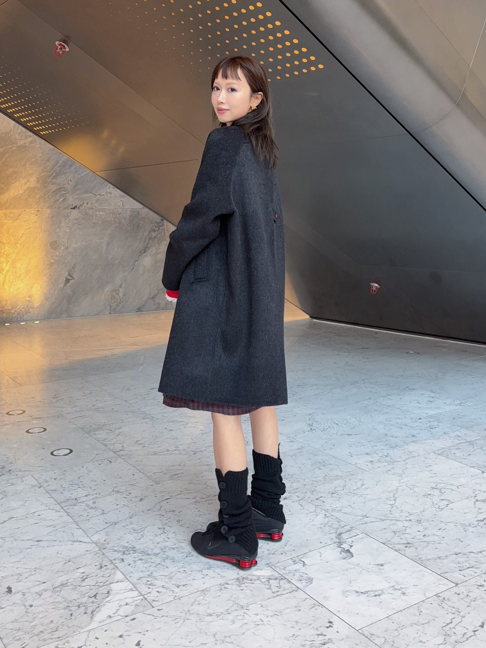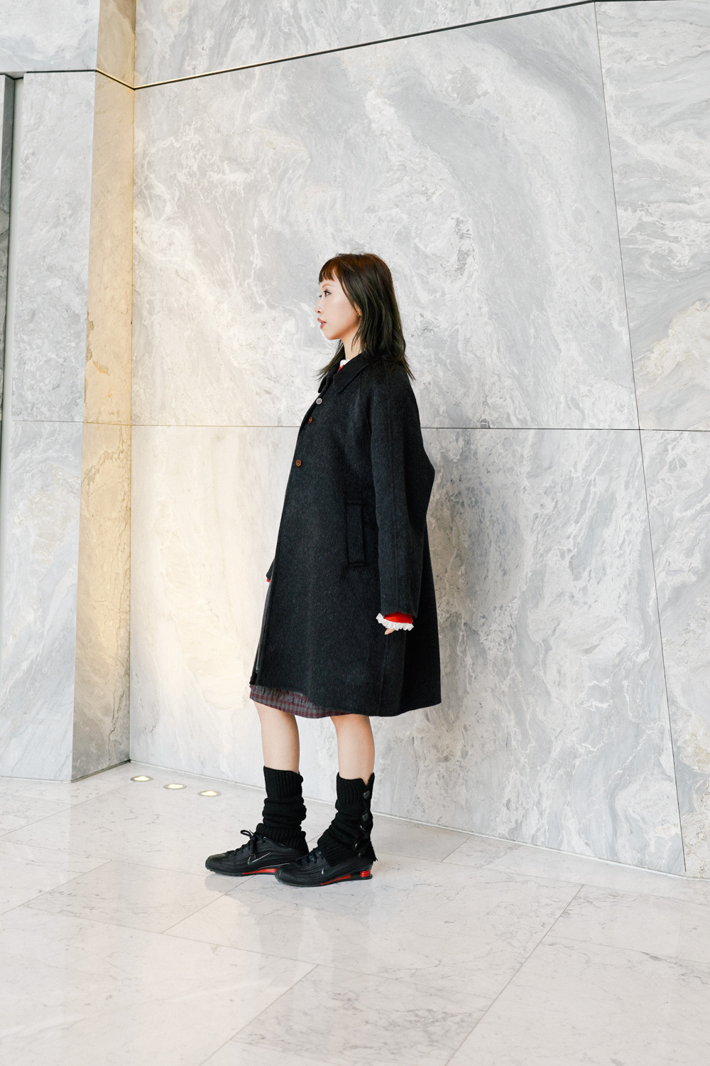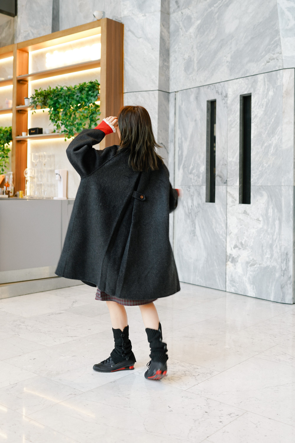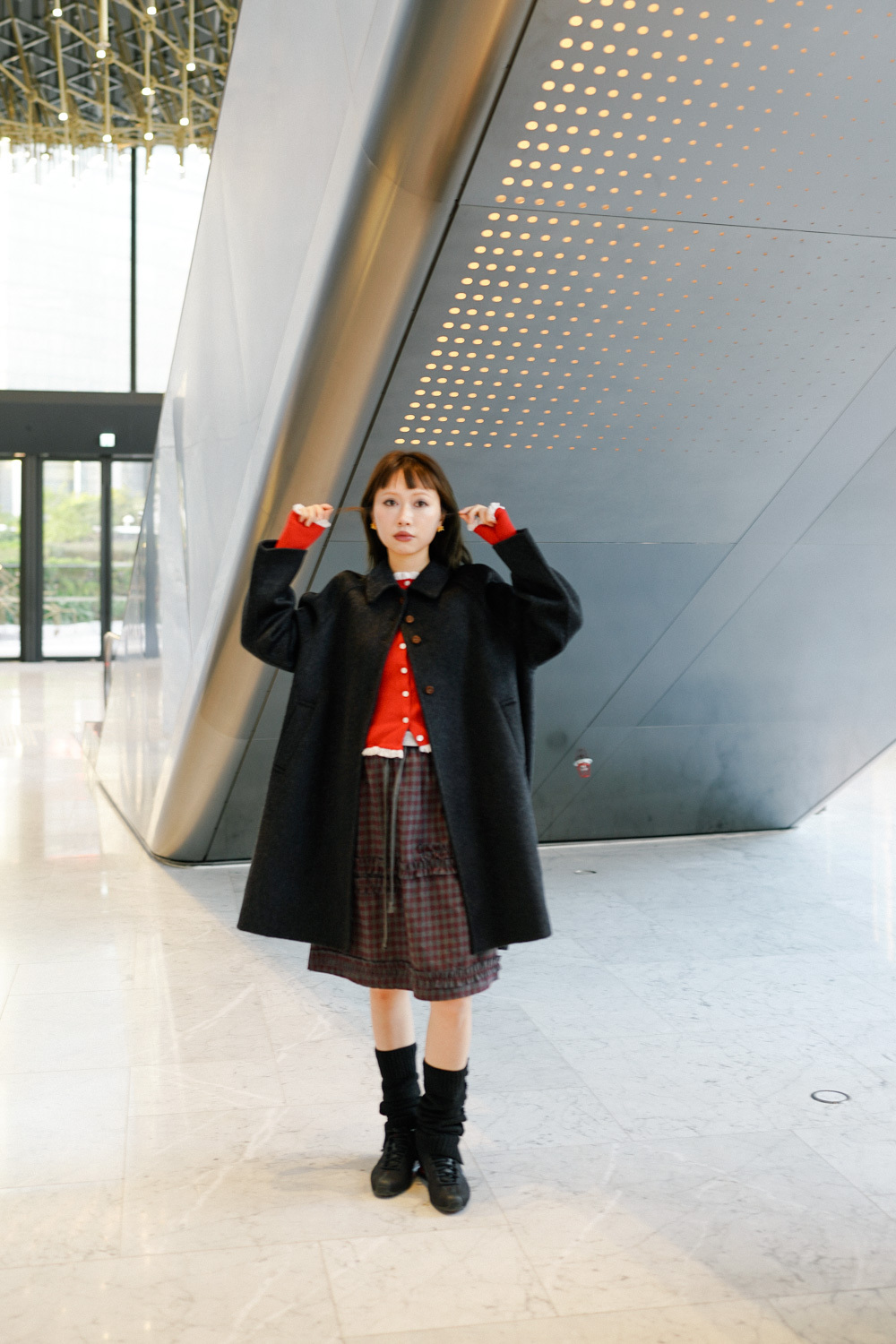 Dolly Retro A shape long coat (LIGHT GREY/ CHARCOL)-100% wool