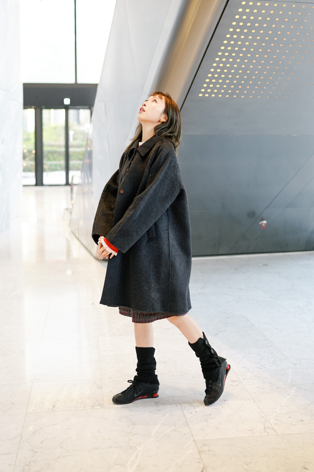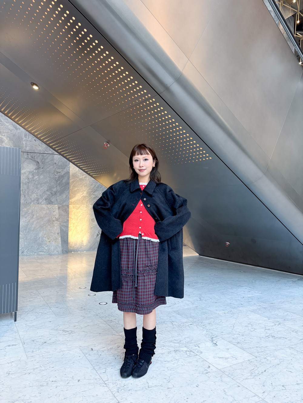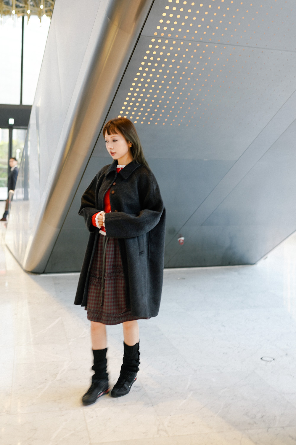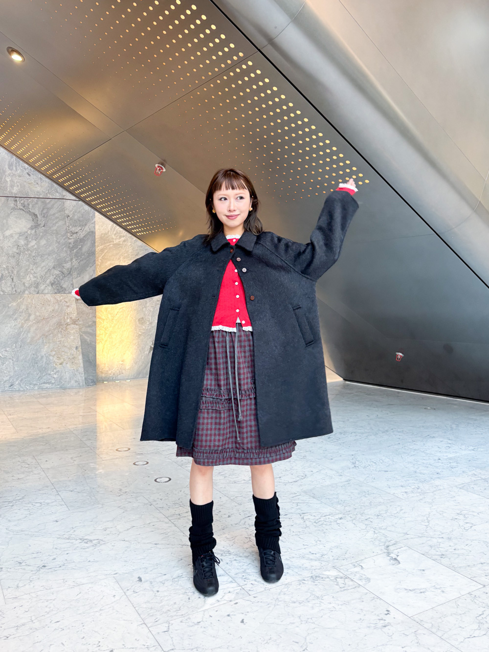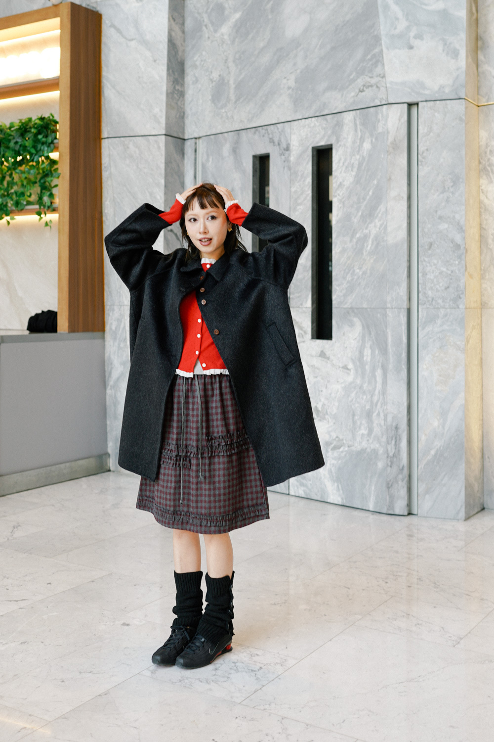 Dolly Retro A shape long coat (LIGHT GREY/ CHARCOL)-100% wool