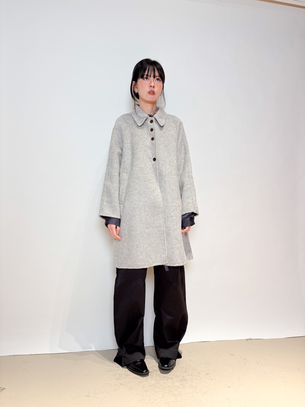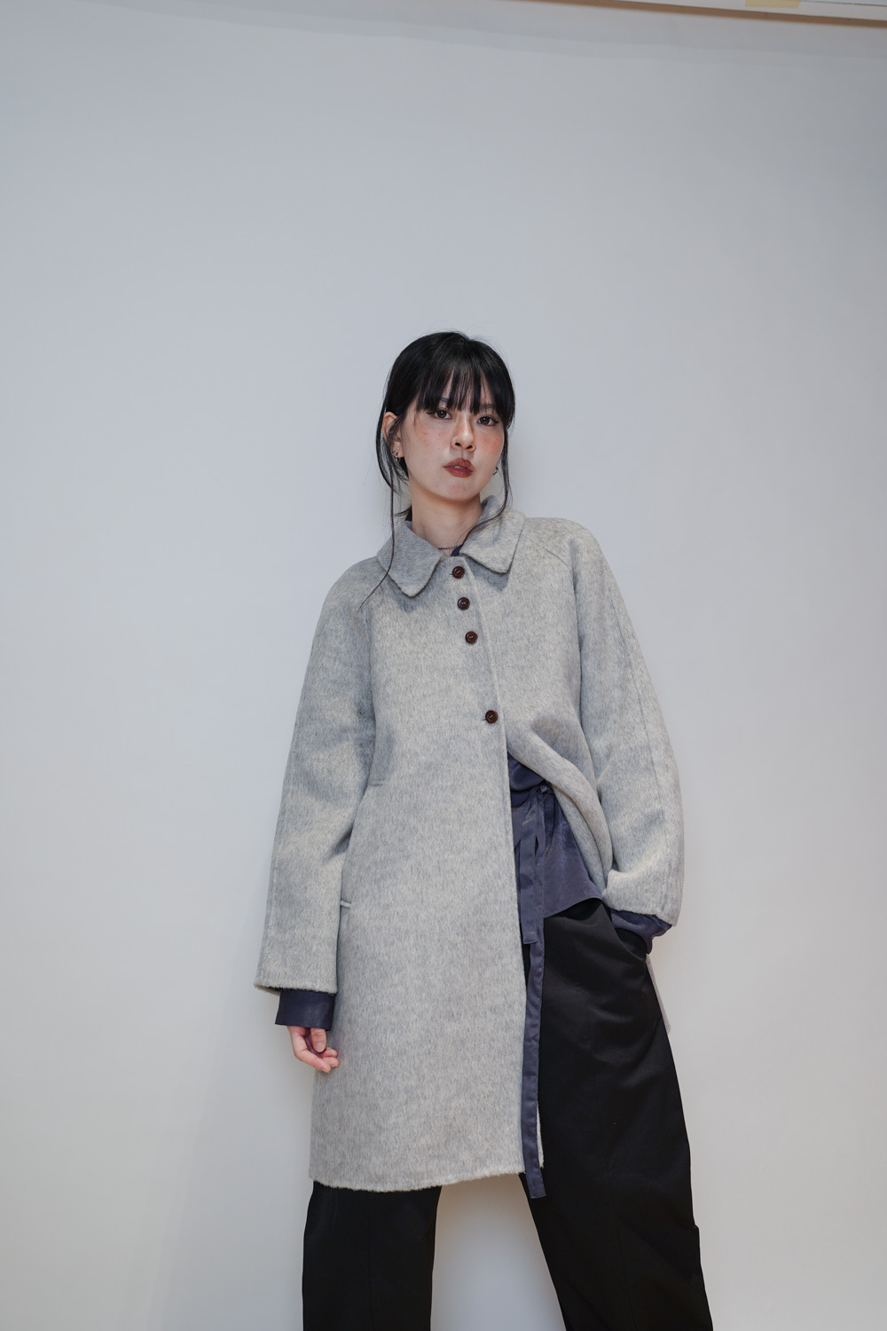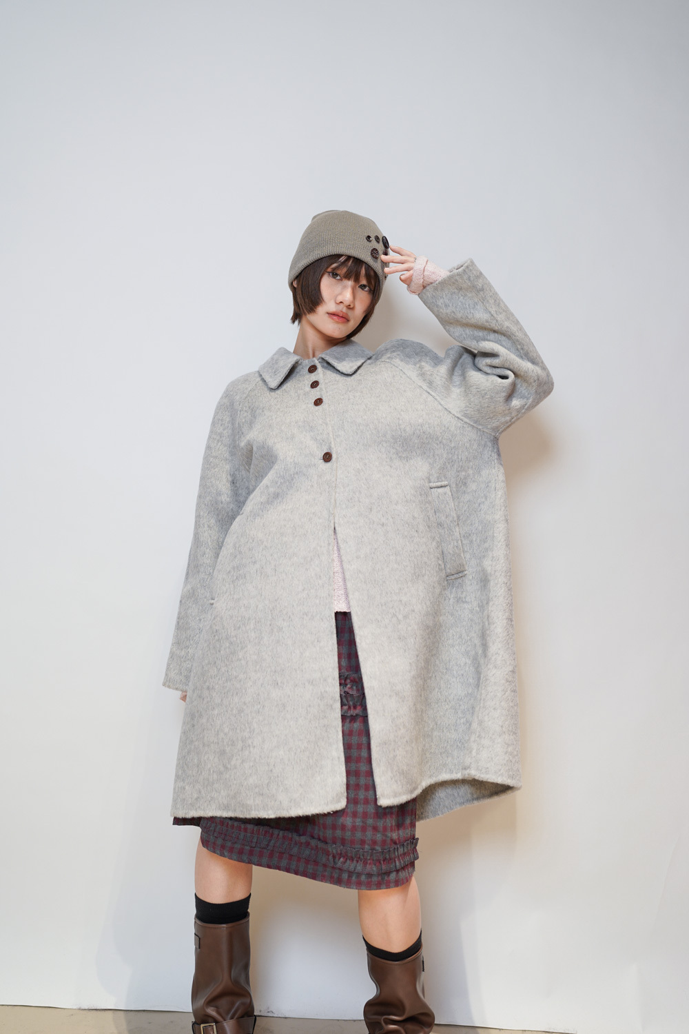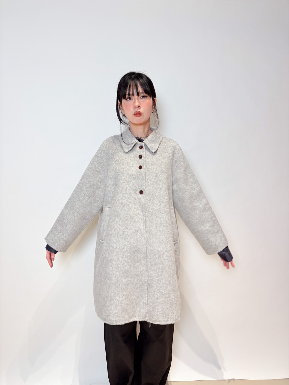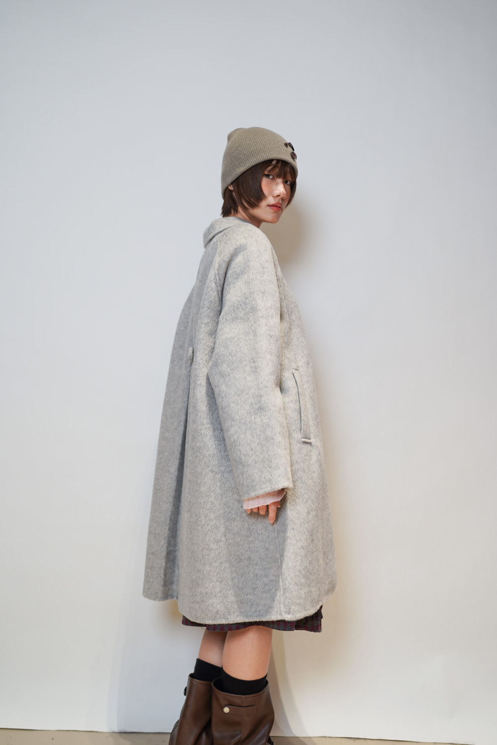 Dolly Retro A shape long coat (LIGHT GREY/ CHARCOL)-100% wool