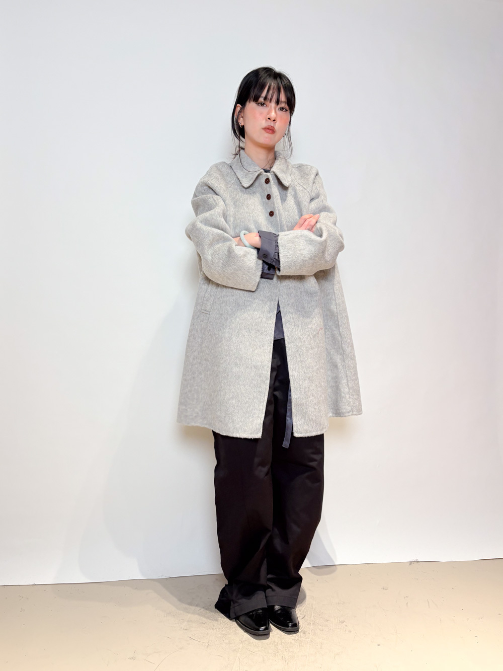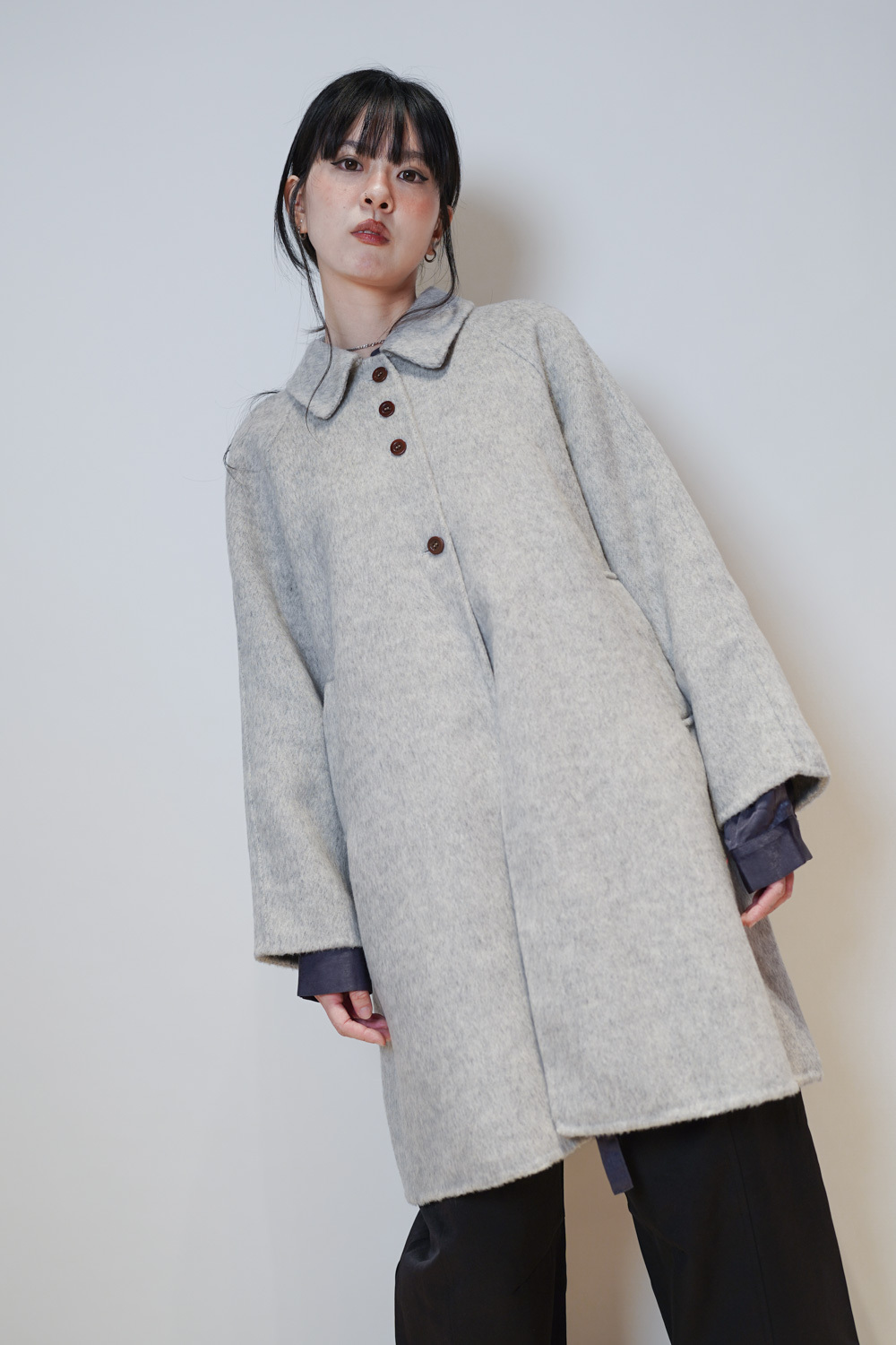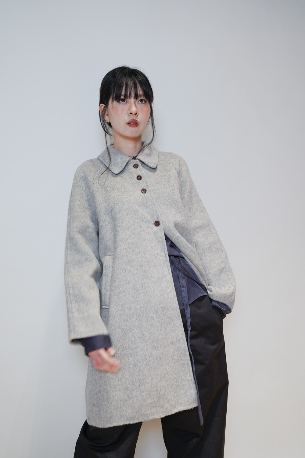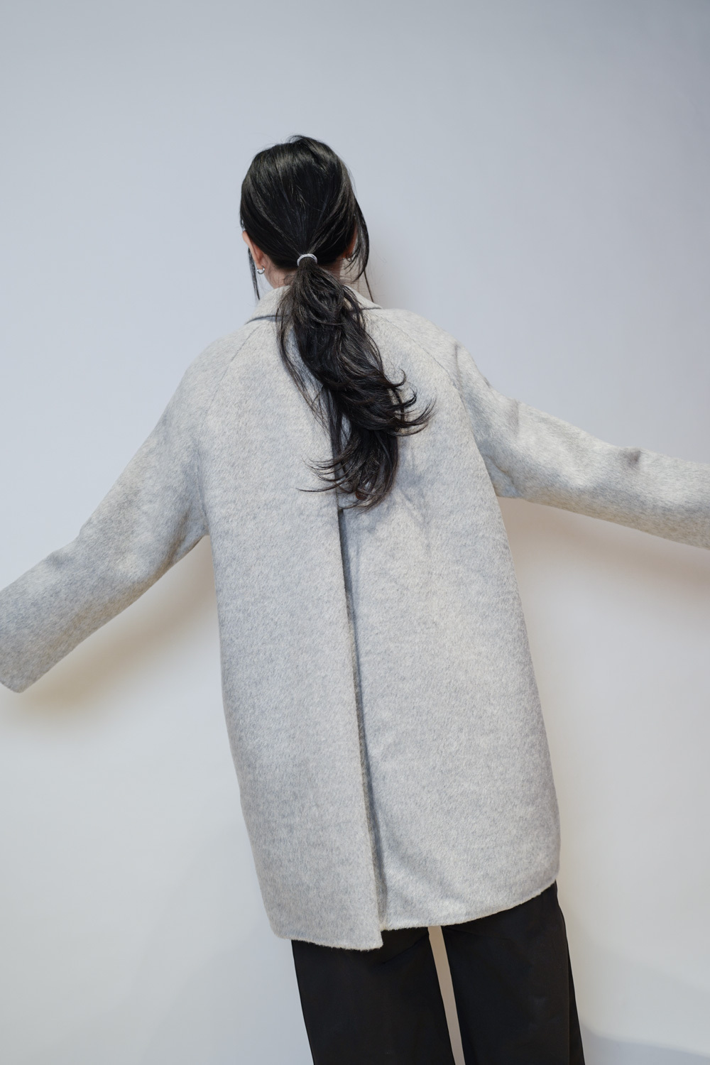 Dolly Retro A shape long coat (LIGHT GREY/ CHARCOL)-100% wool