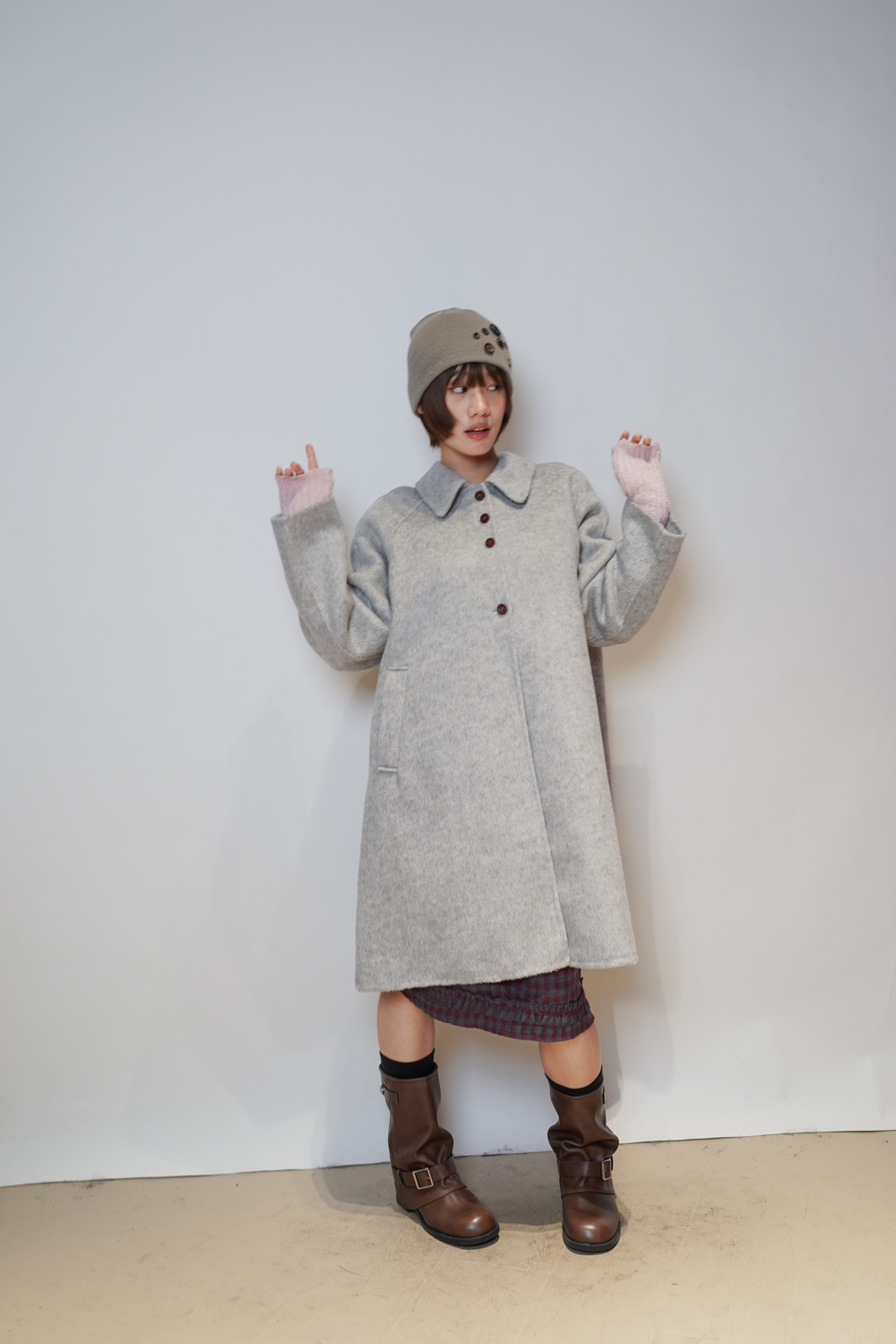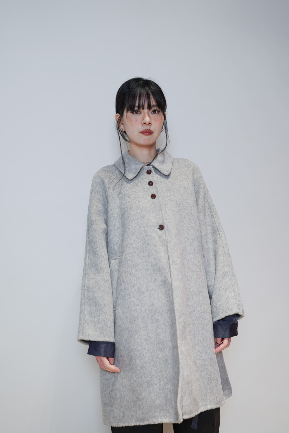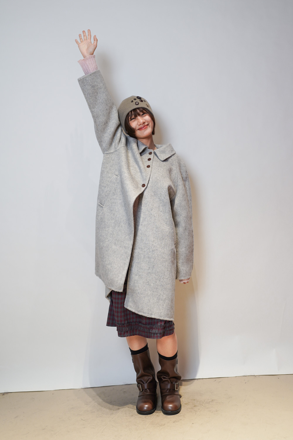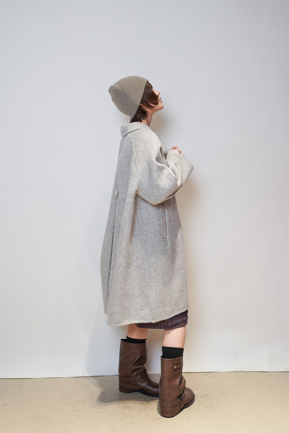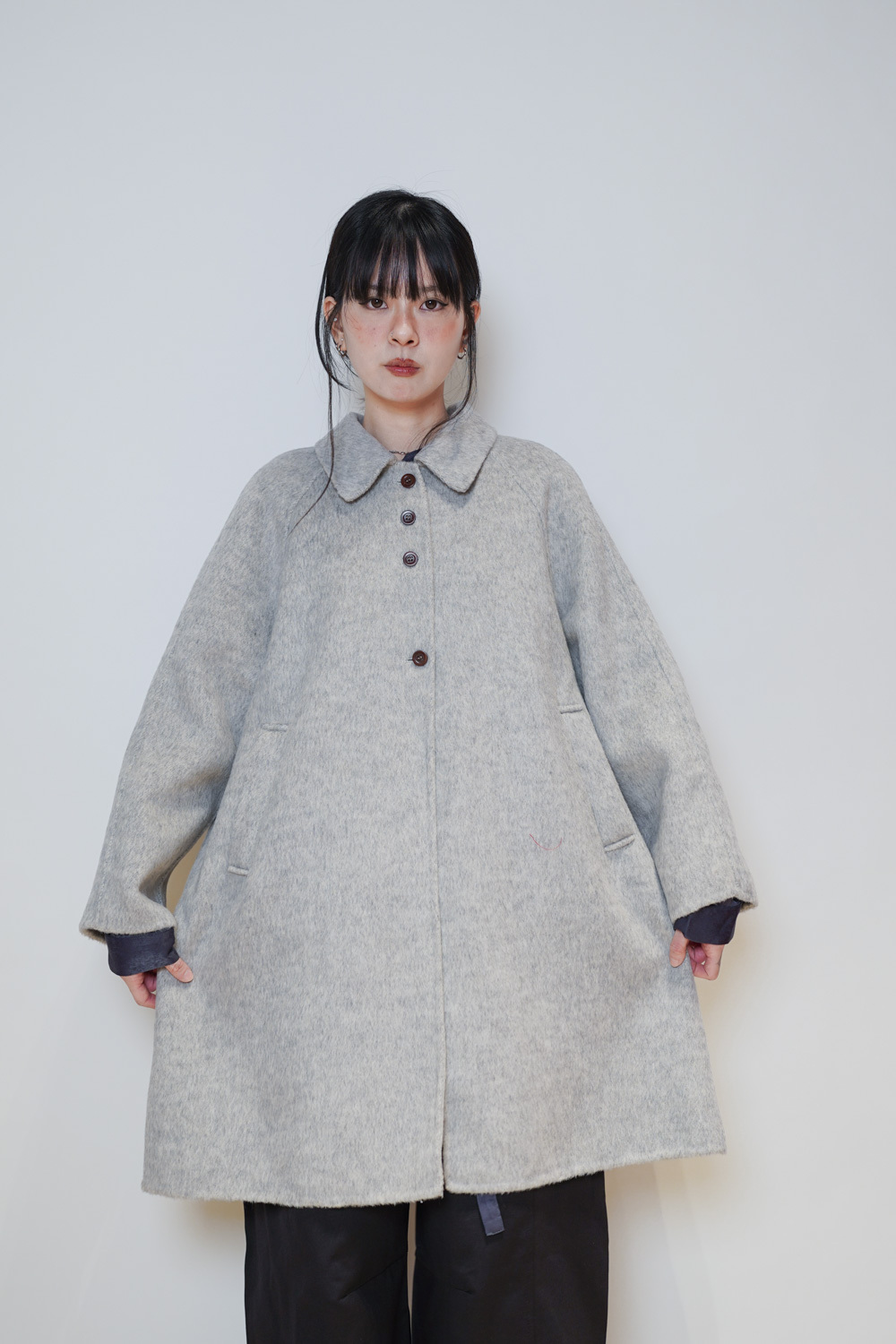 Dolly Retro A shape long coat (LIGHT GREY/ CHARCOL)-100% wool