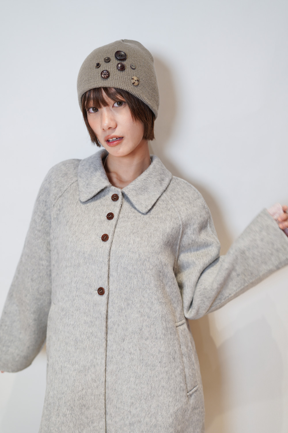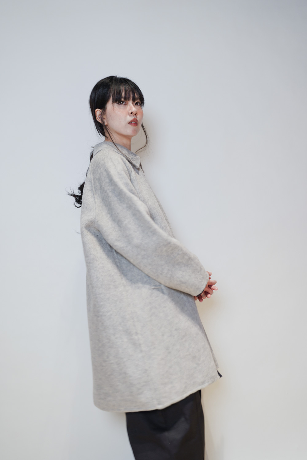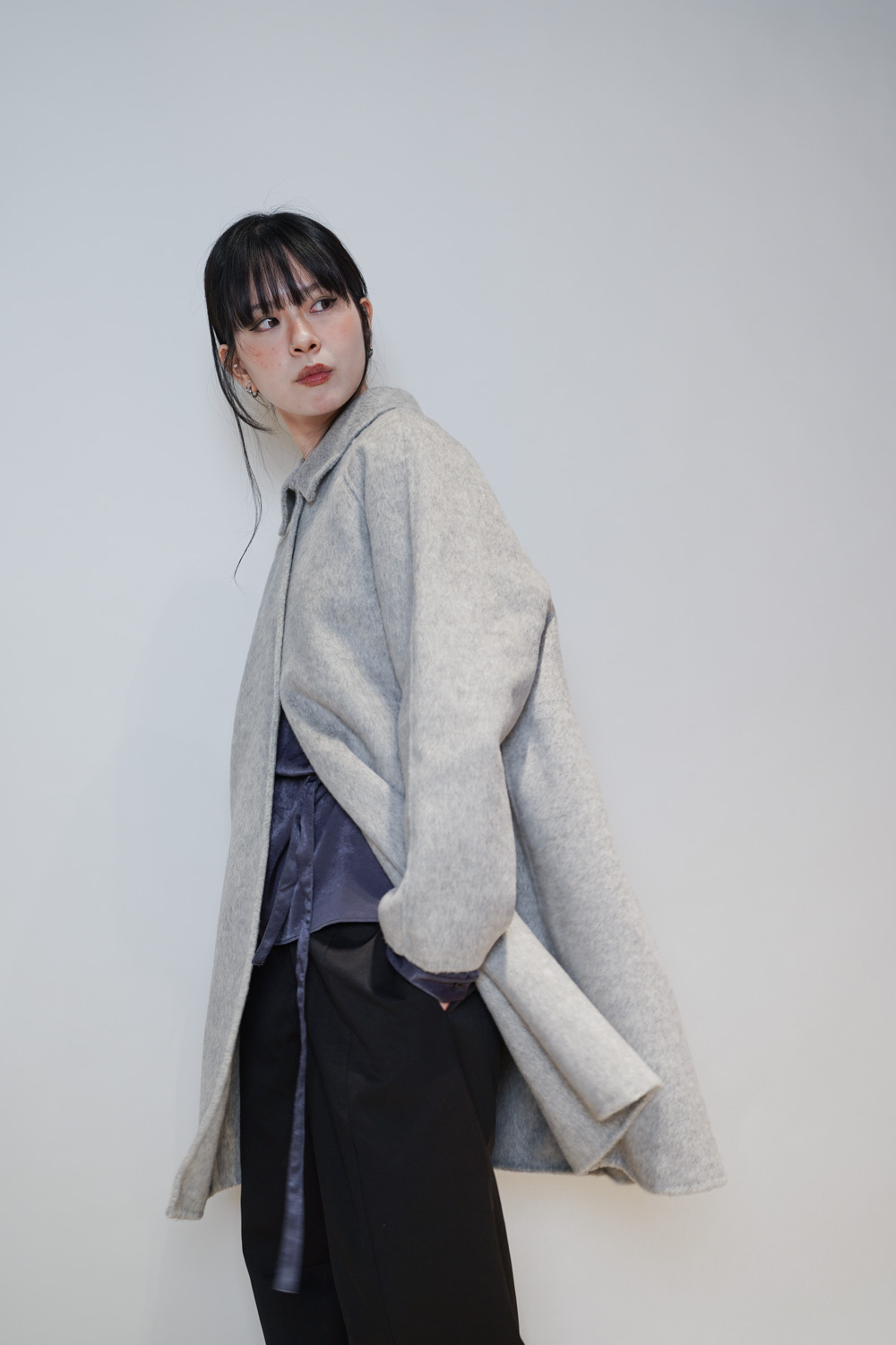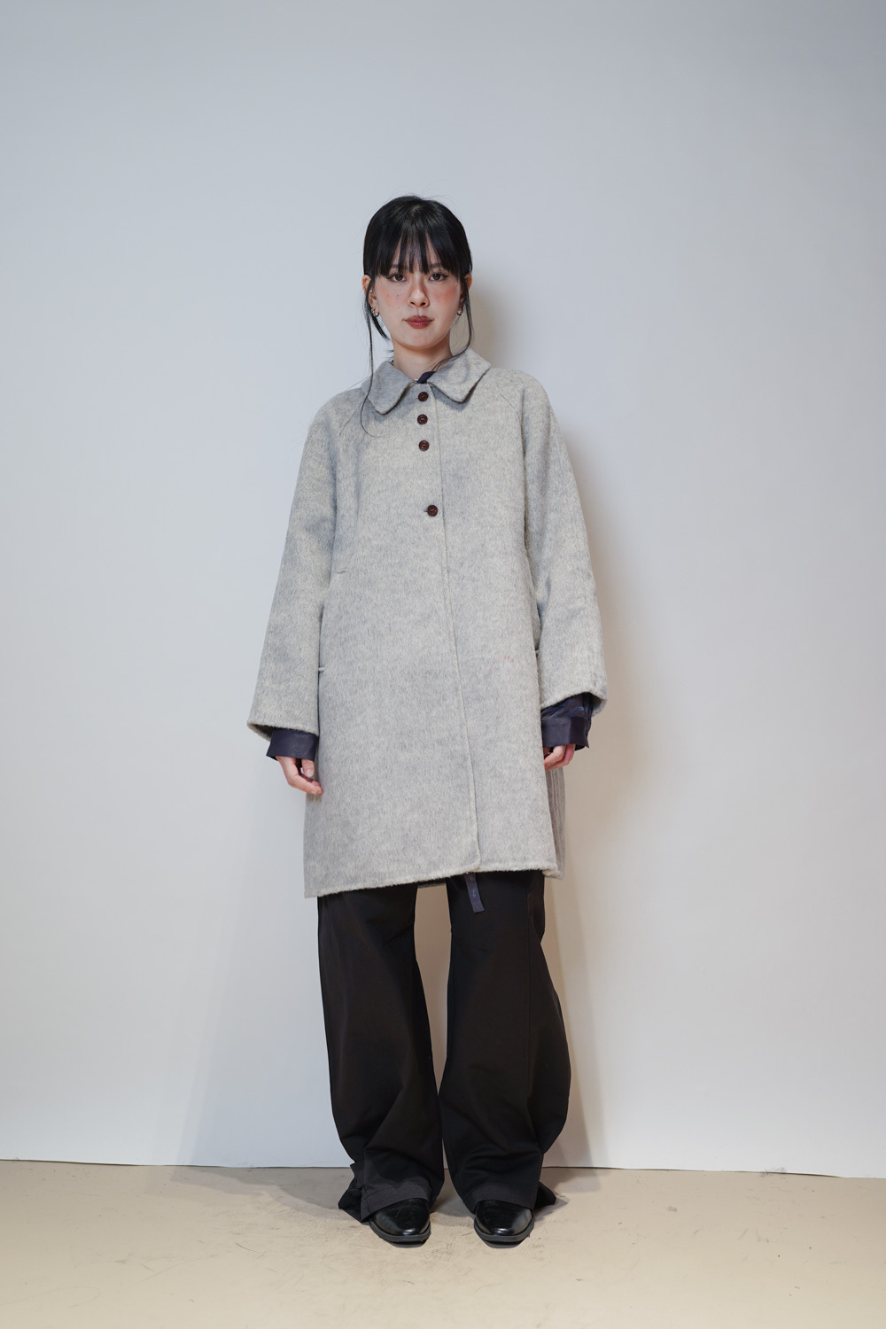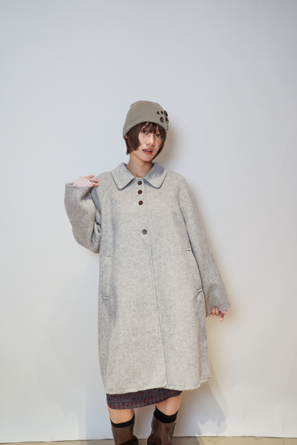 Dolly Retro A shape long coat (LIGHT GREY/ CHARCOL)-100% wool