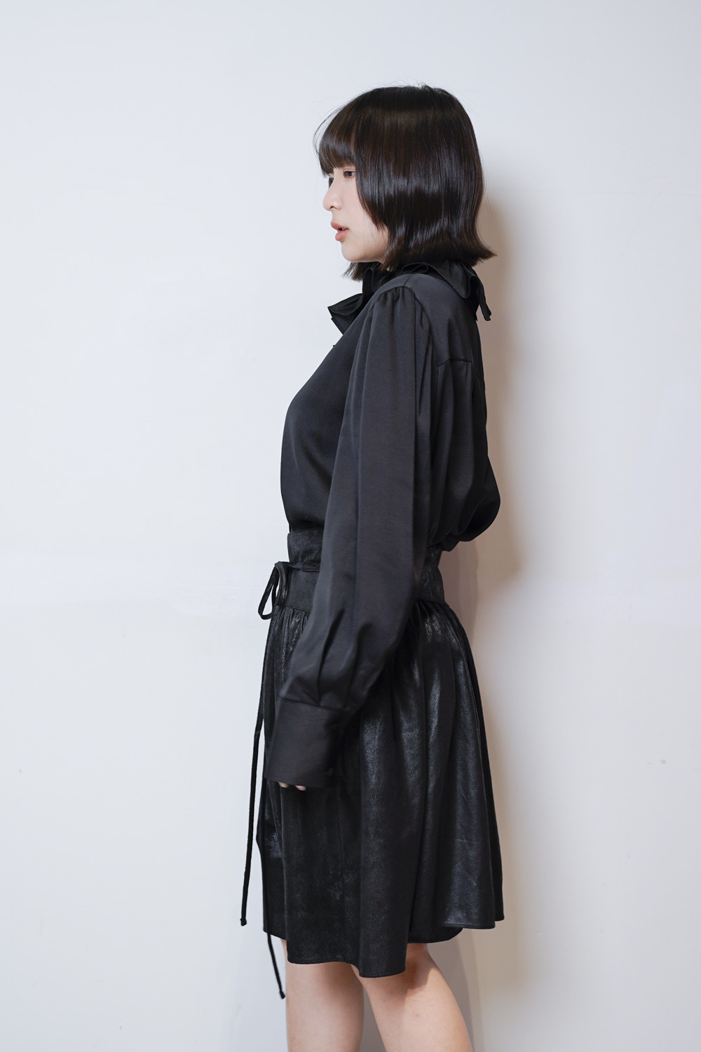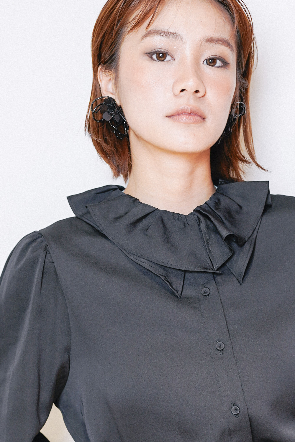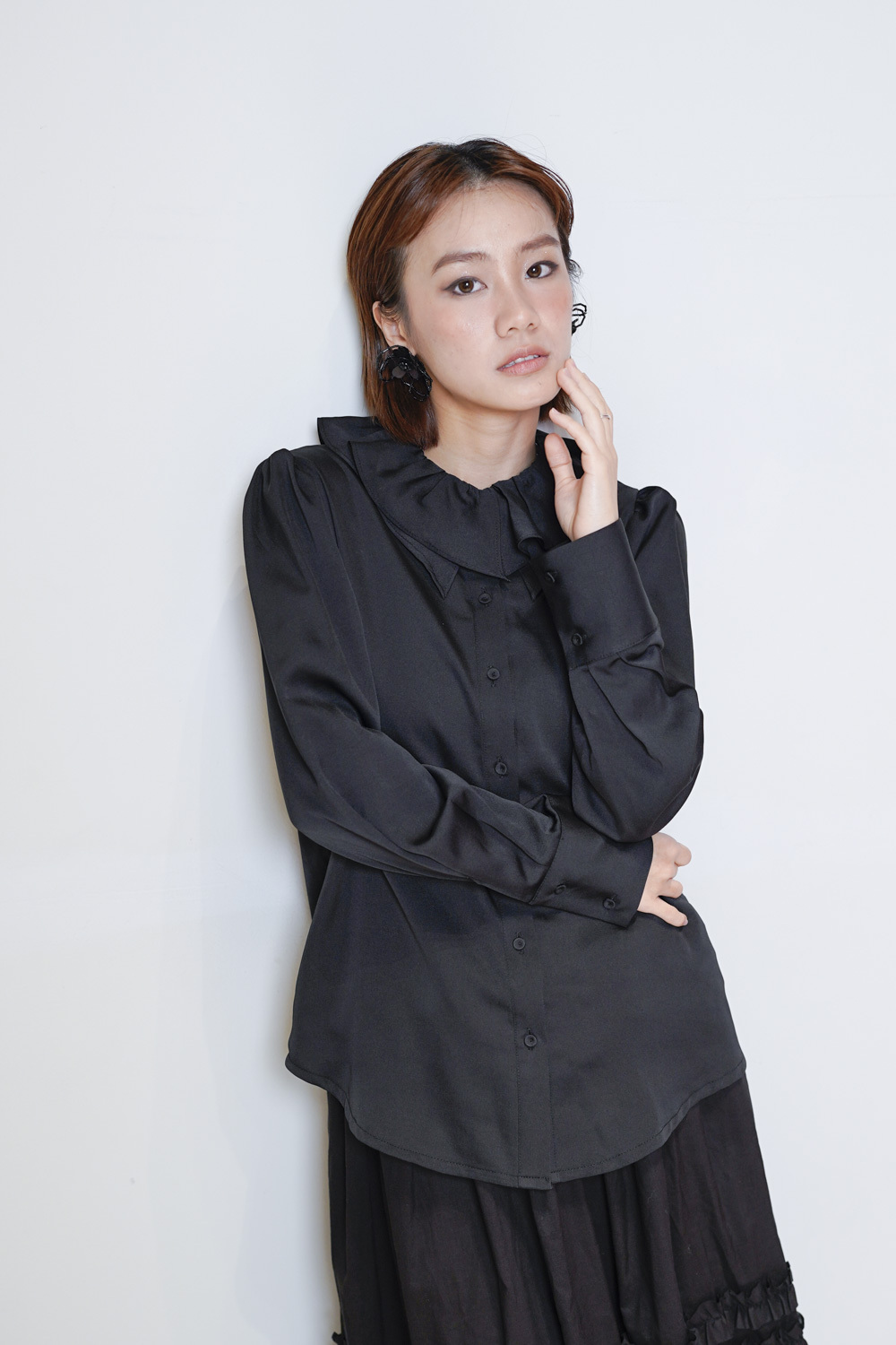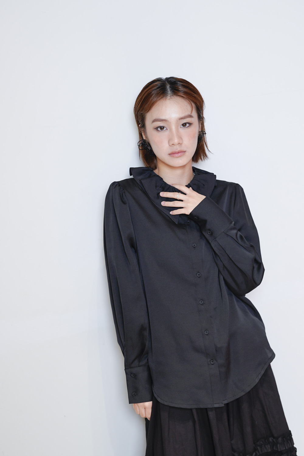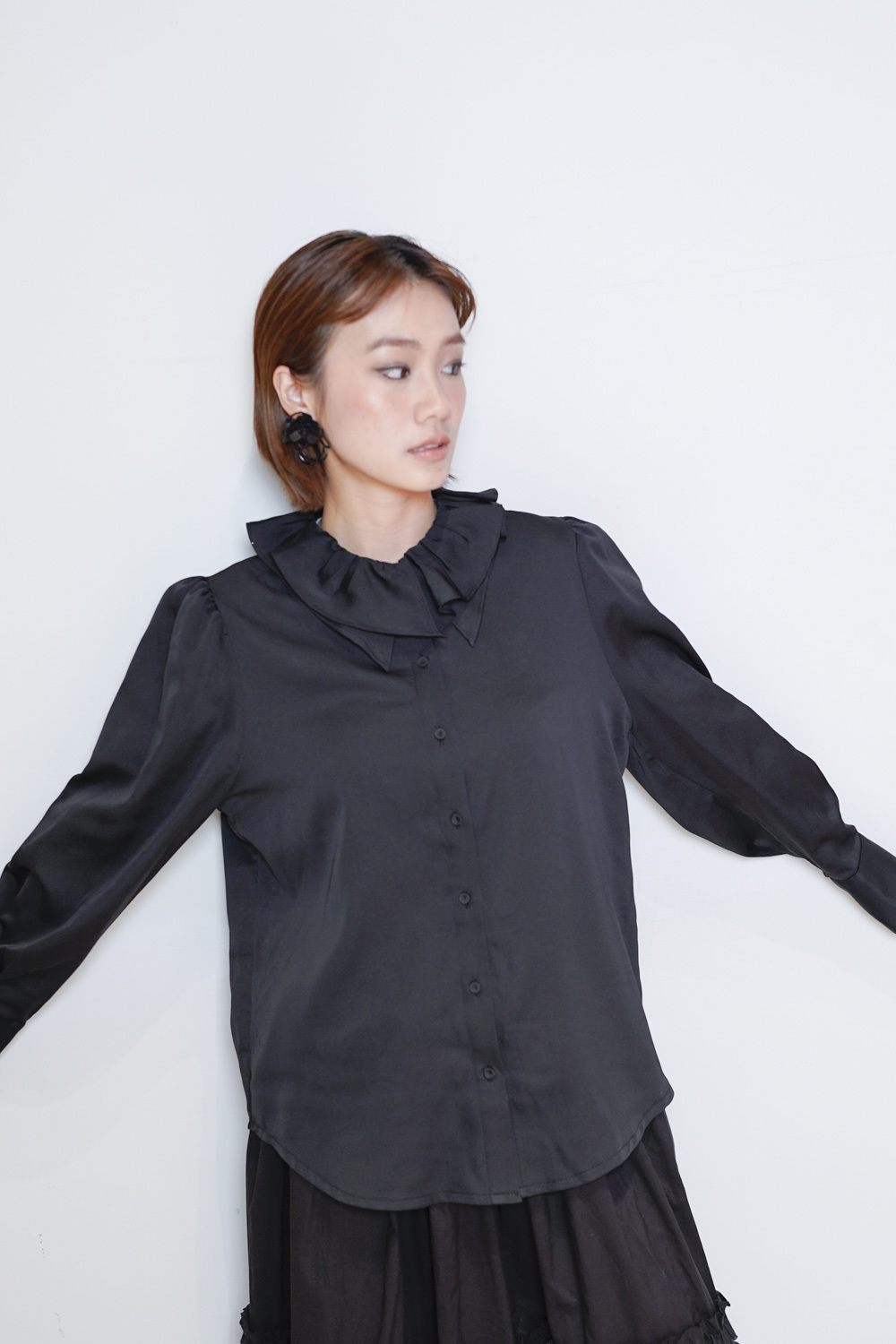 Double collar silky fairy blouse (WHITE/ BLACK)