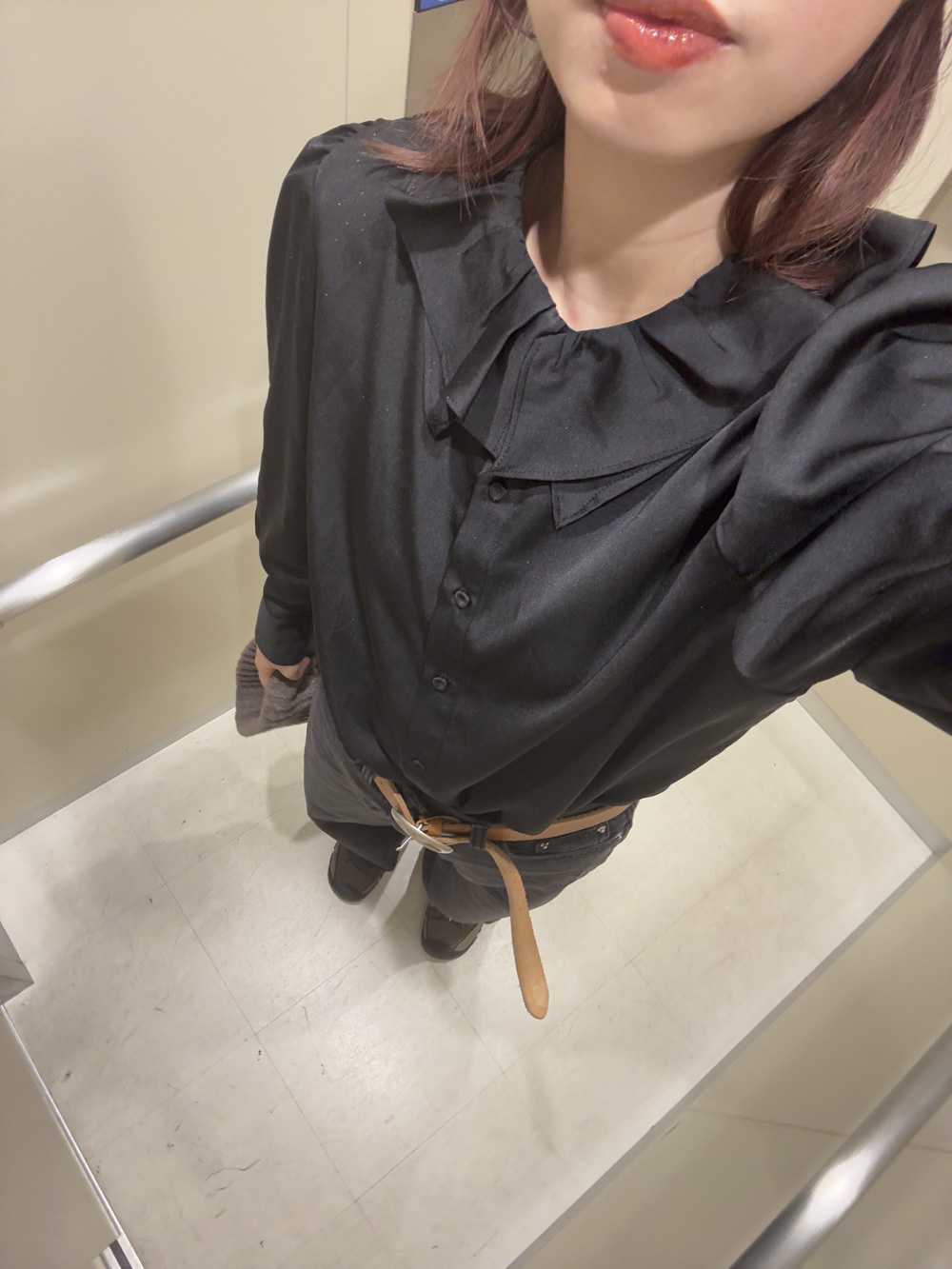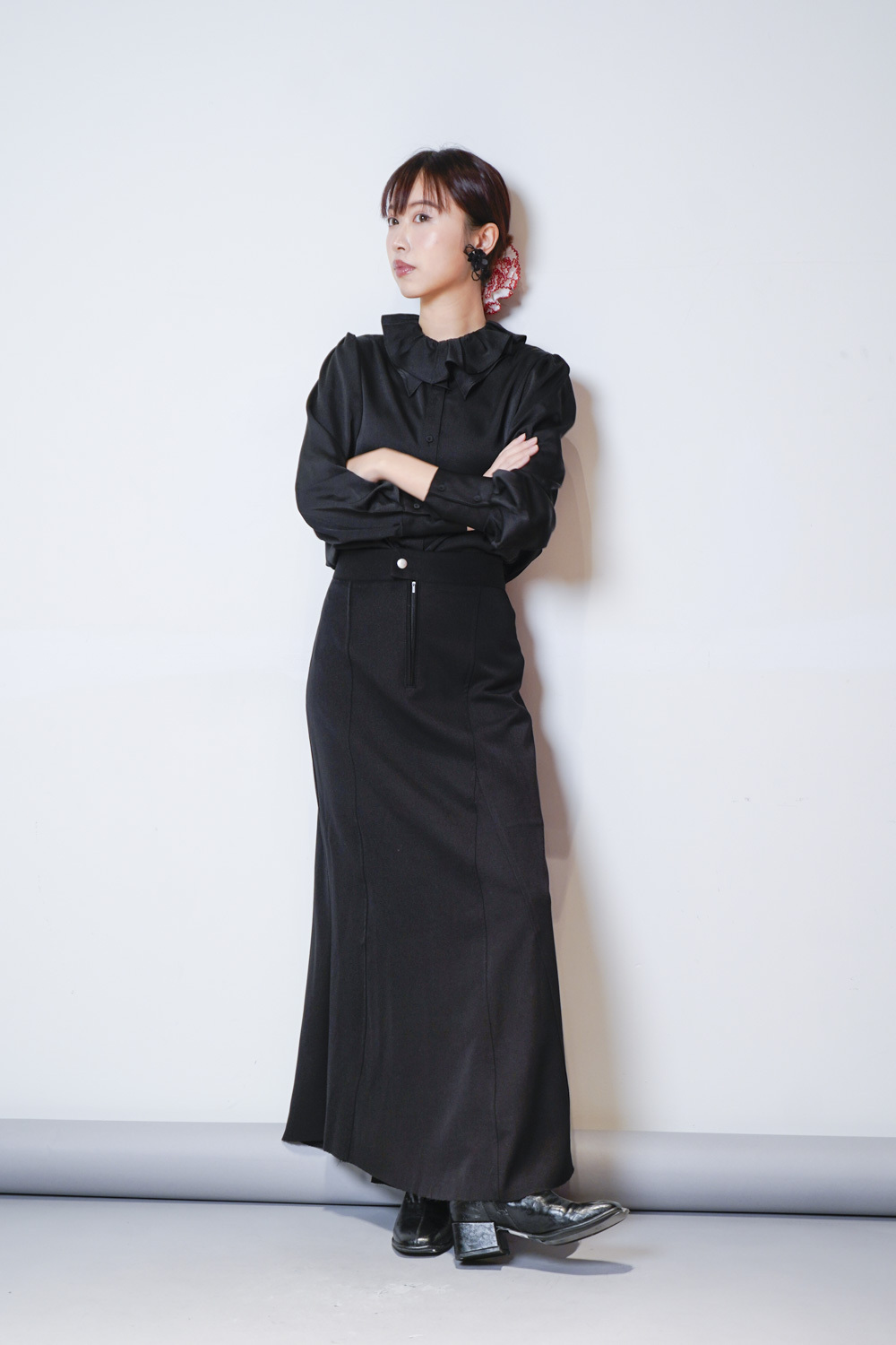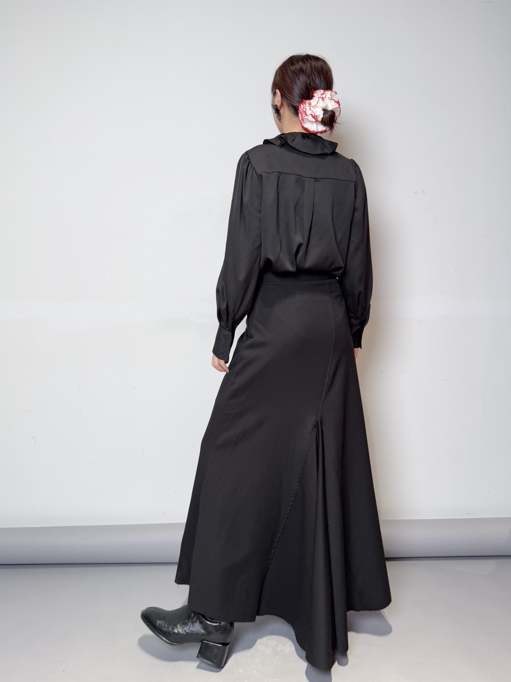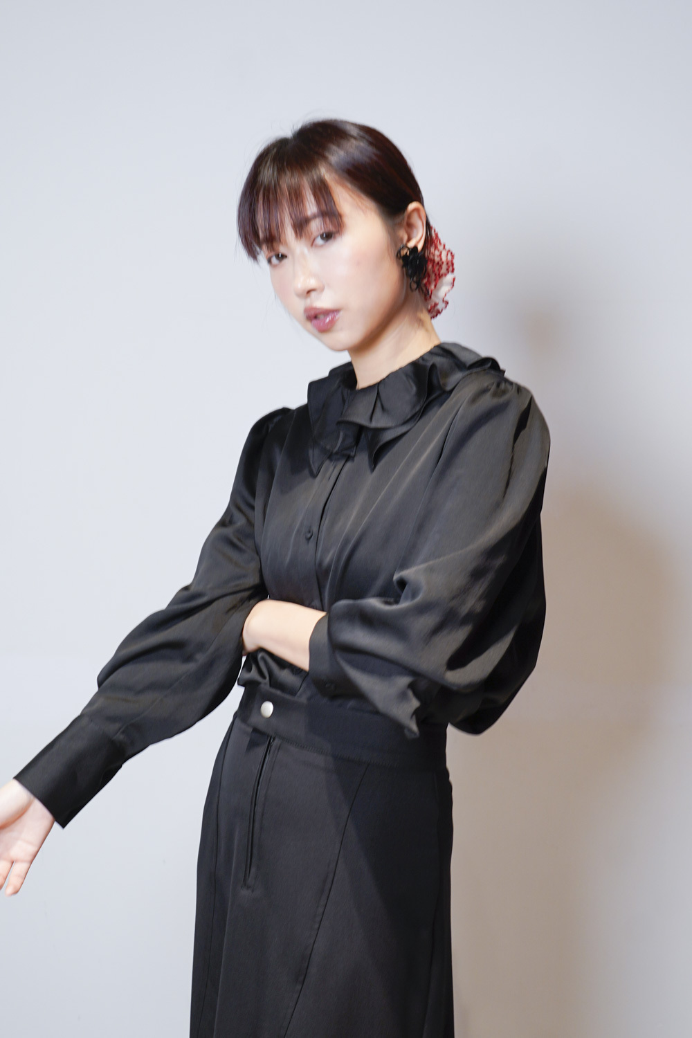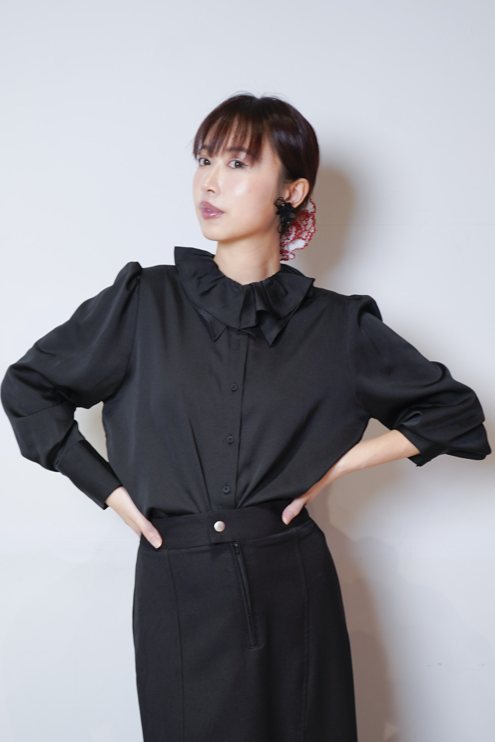 Double collar silky fairy blouse (WHITE/ BLACK)
