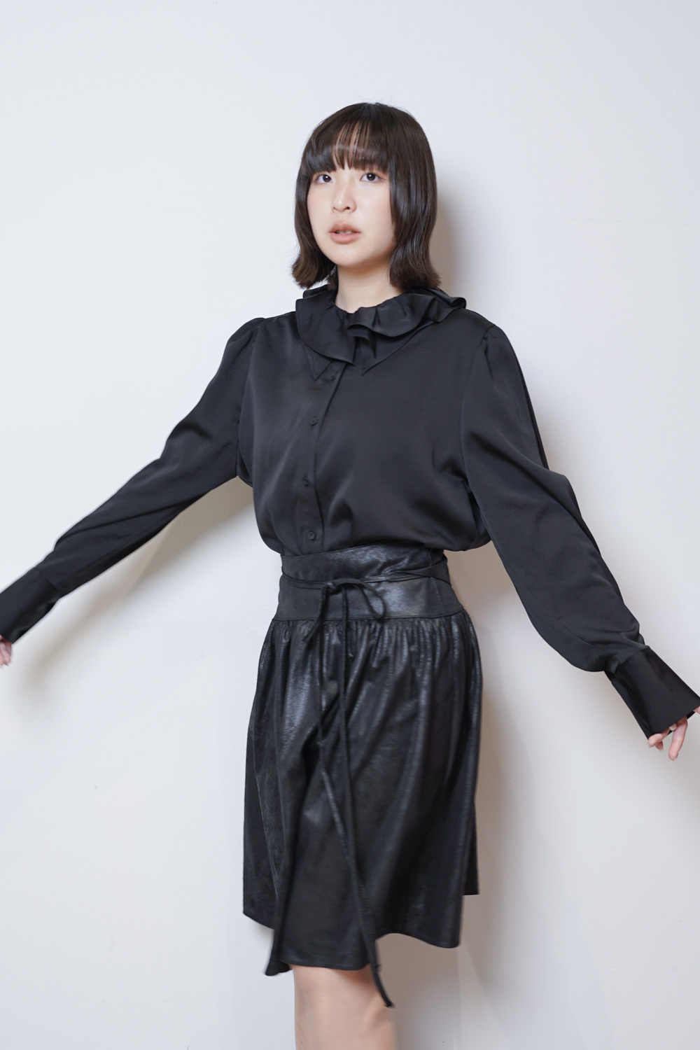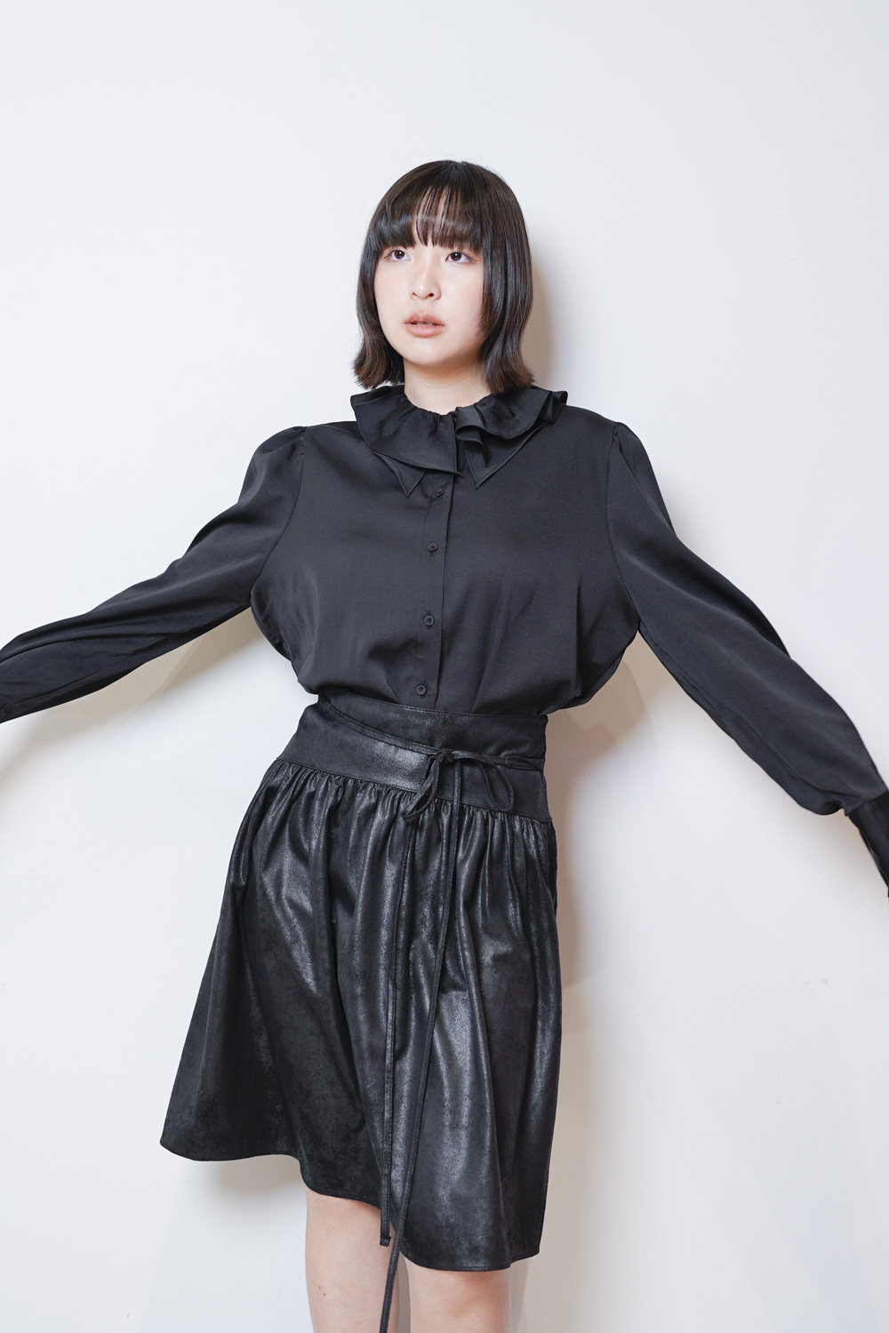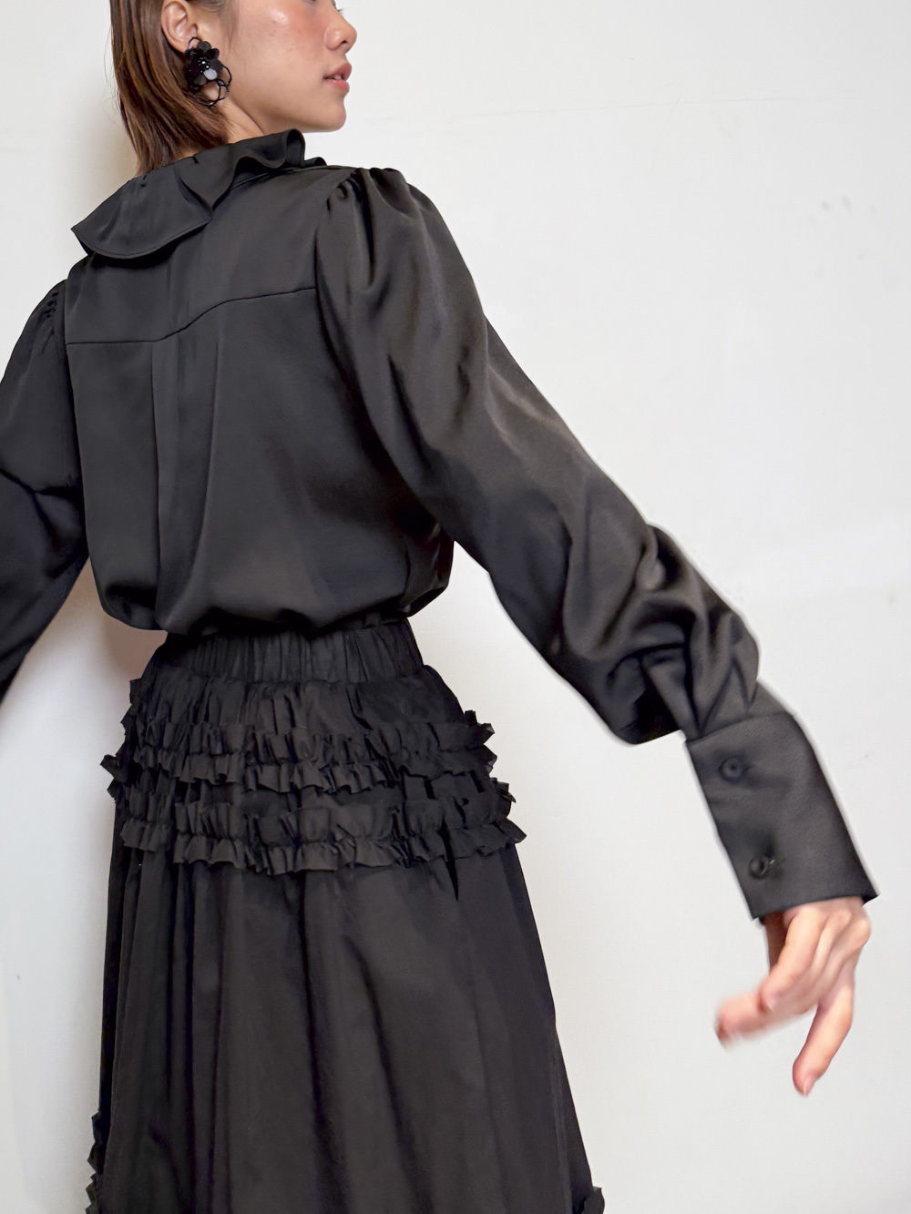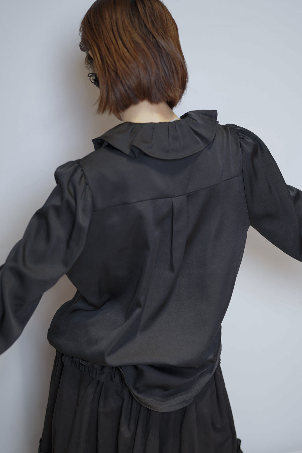 雙重領口設計 裡層尖領 外層ruffle領/