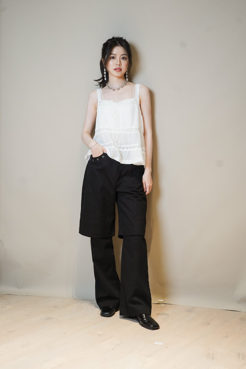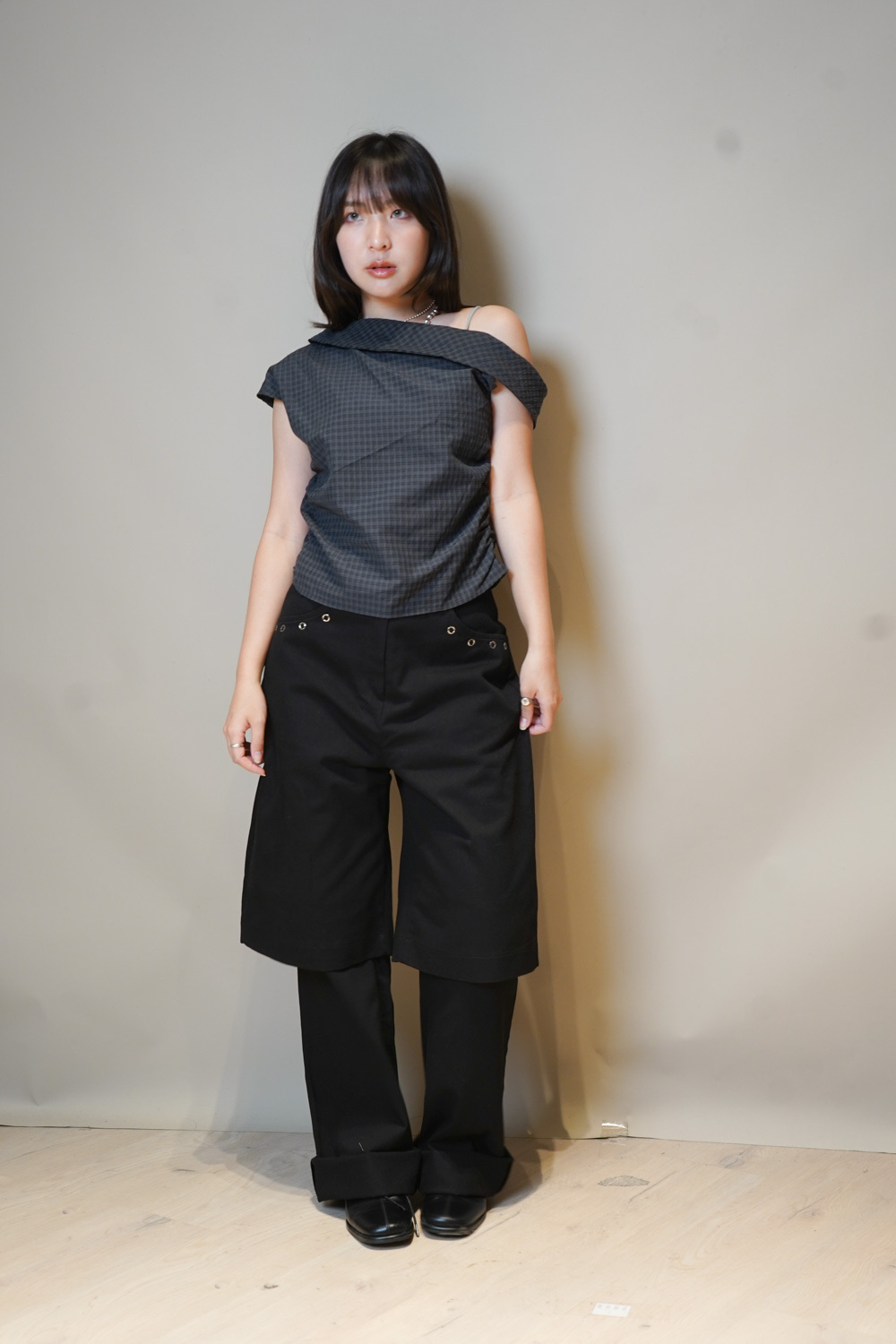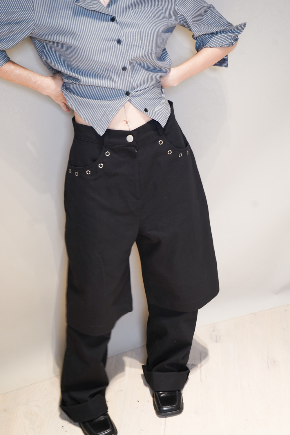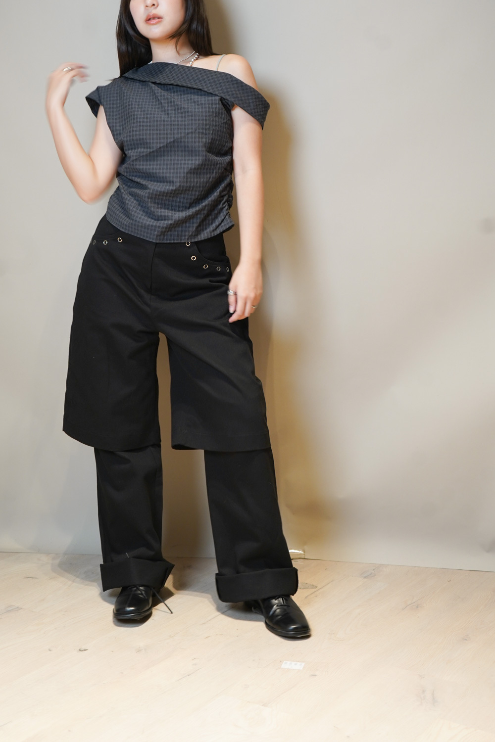 S: Waist: 64cm (25”) / Hip: 94cm (37”) / Rise: 31.5cm / Length:107 cm / Thigh: 63cm / Hem: 50cm