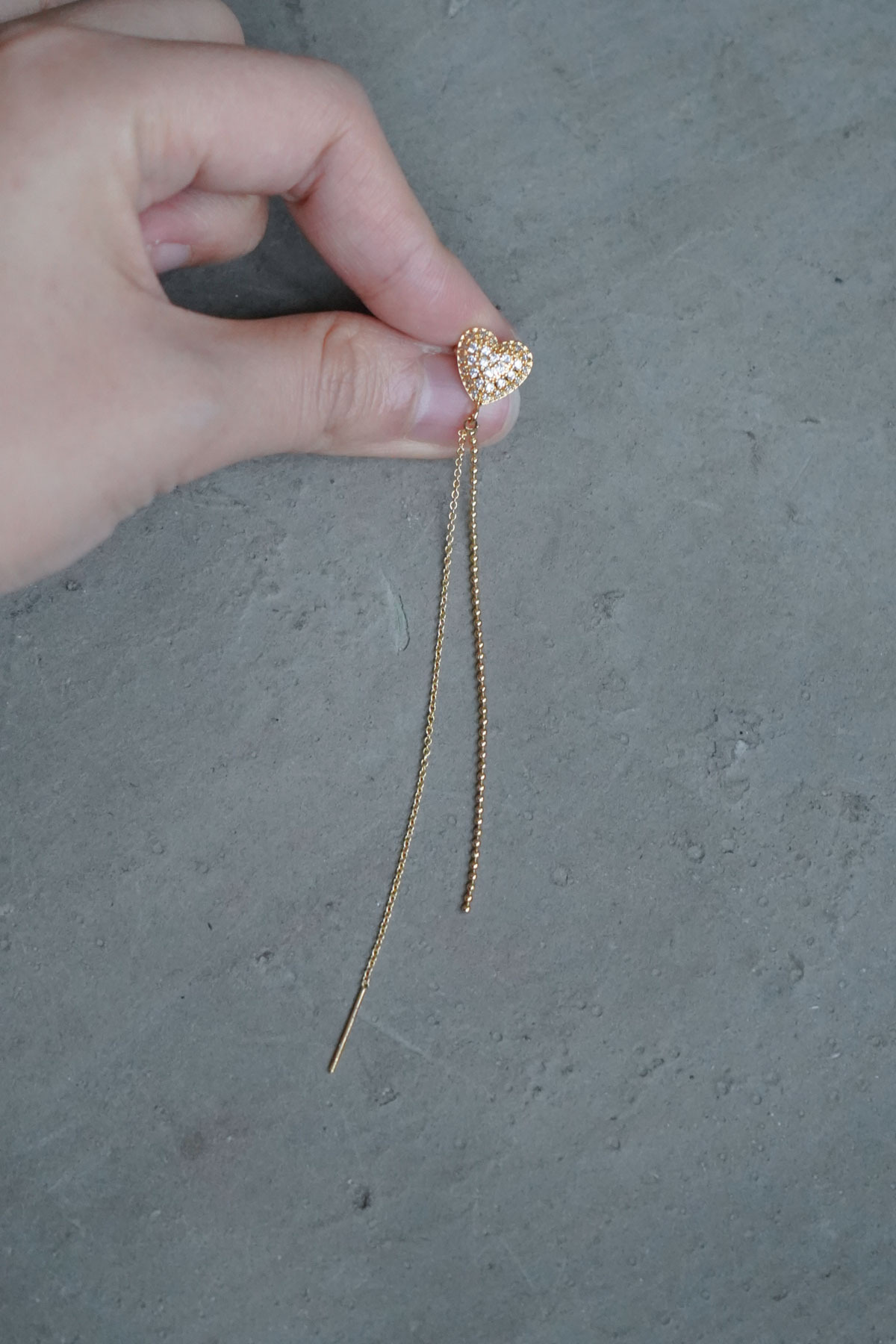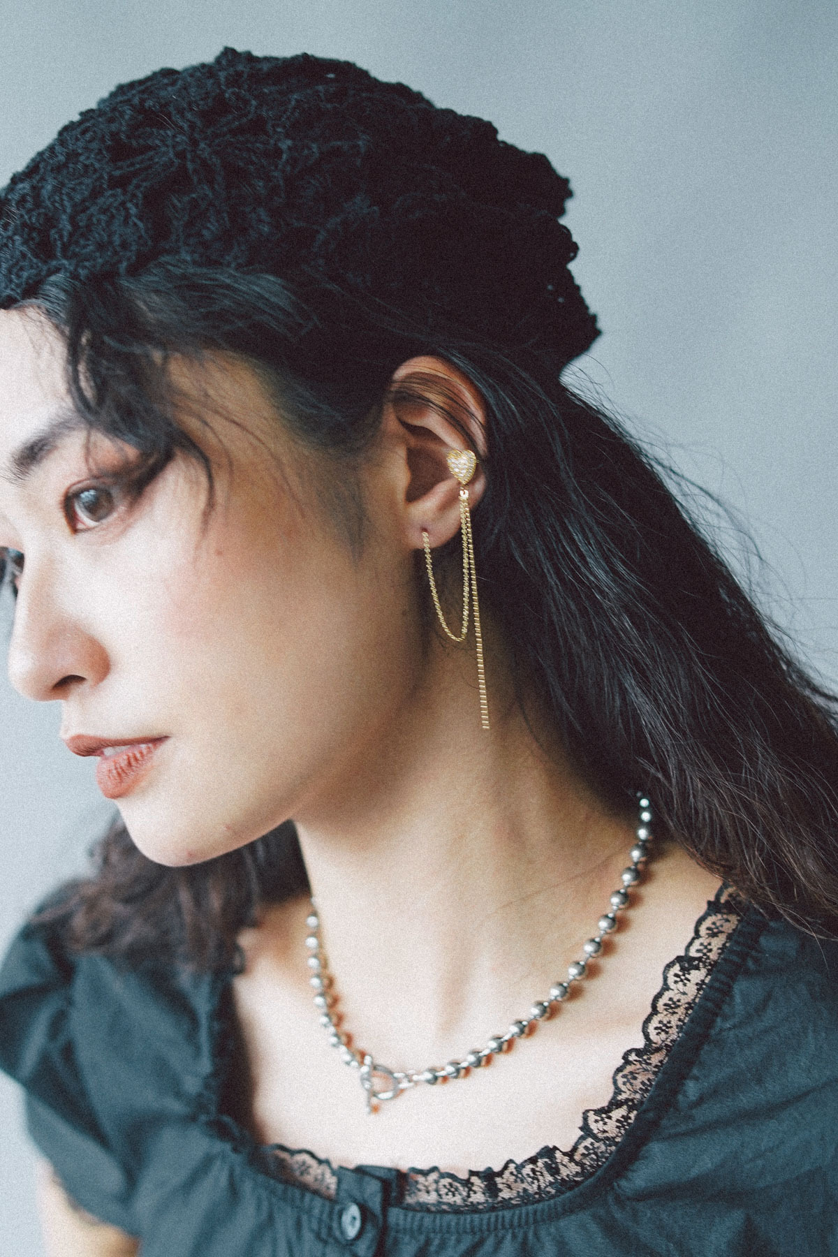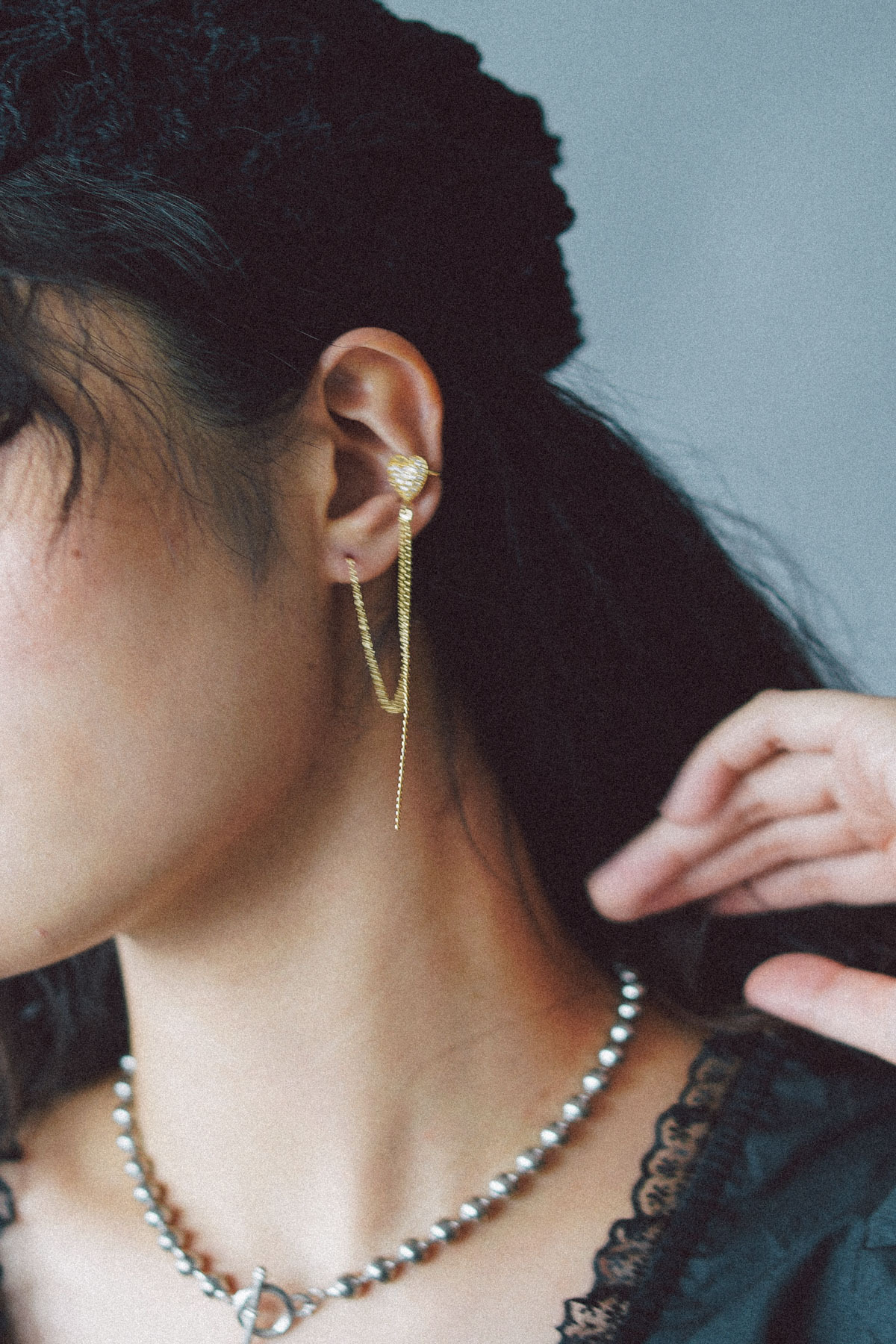 金屬心形耳夾配搭細珠吊鏈/ 閃石亮眼又不會過於誇張/