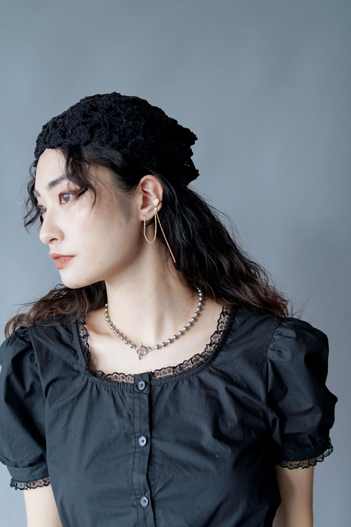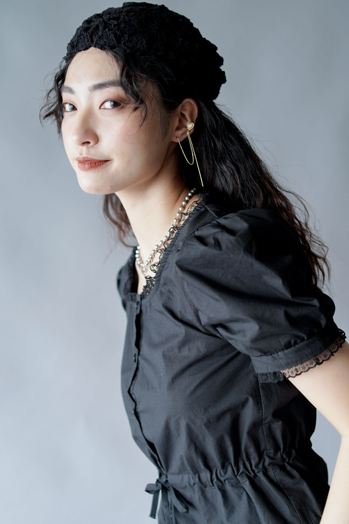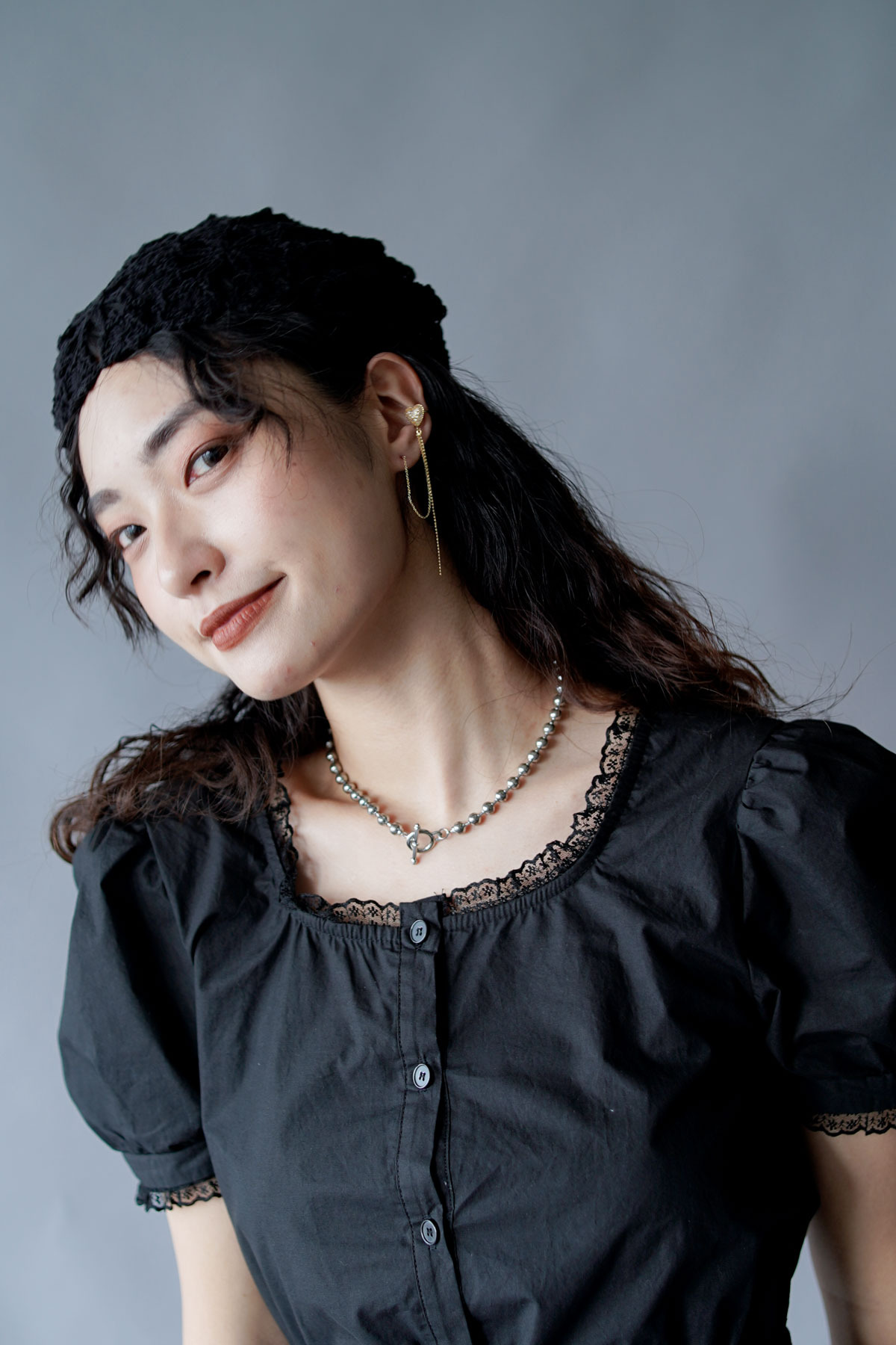 金屬心形耳夾配搭細珠吊鏈/ 閃石亮眼又不會過於誇張/