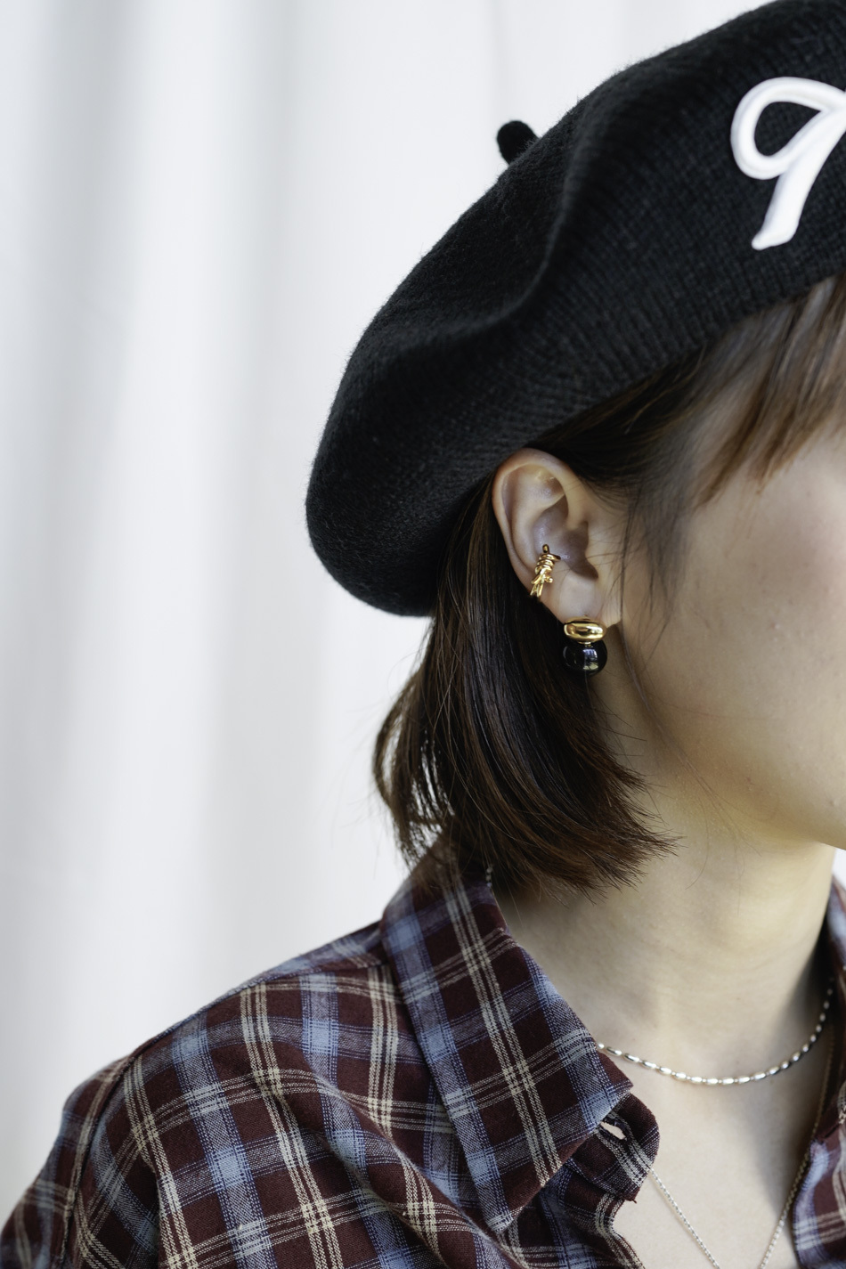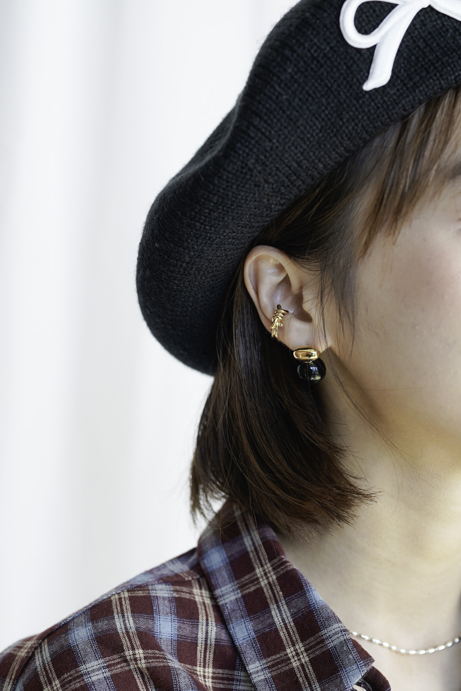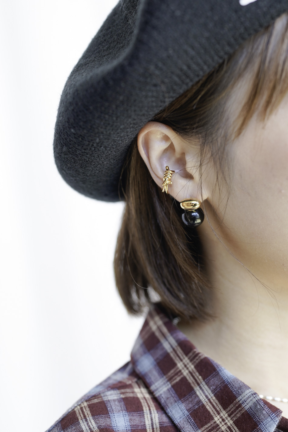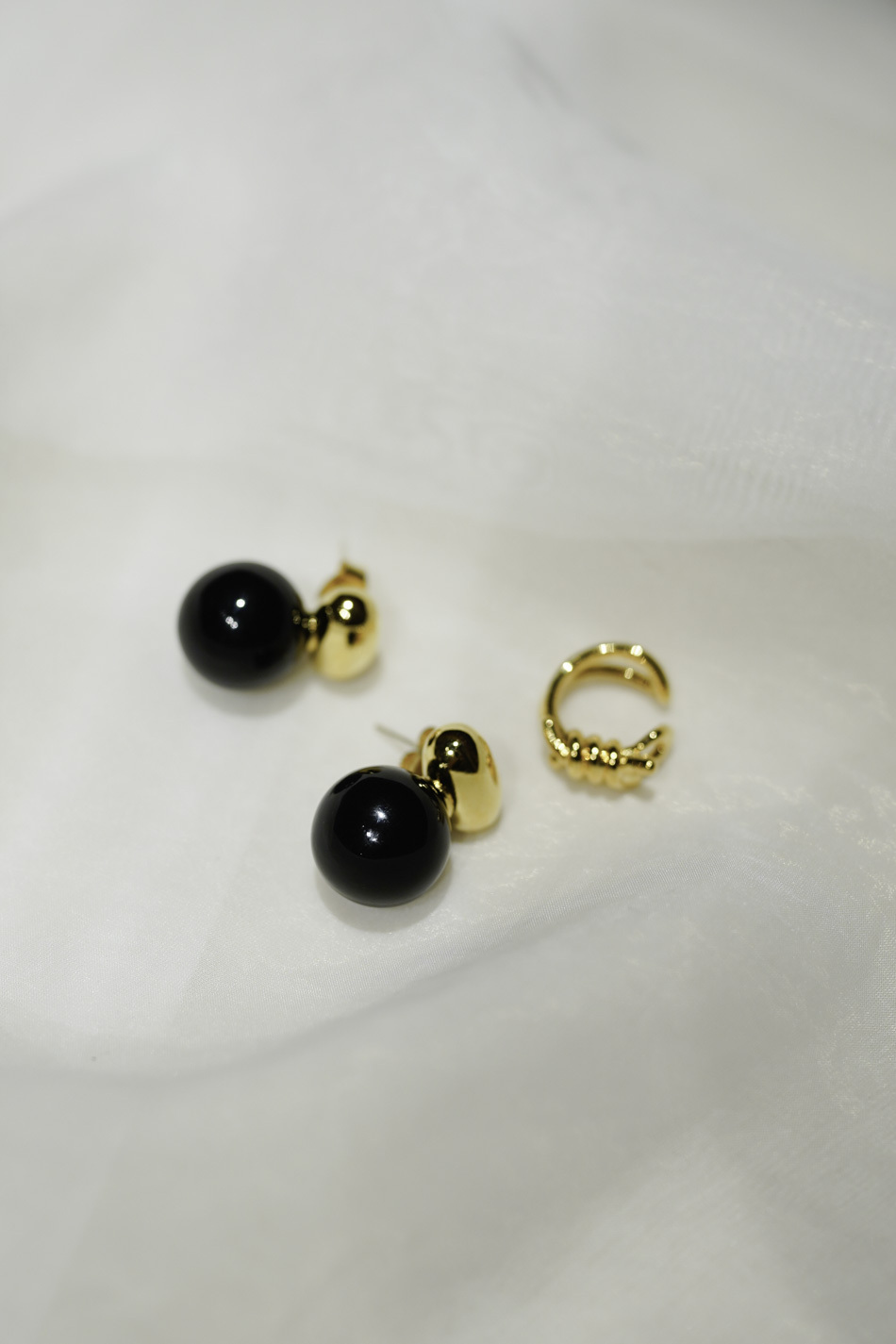 Earring + earcuff Set : black ball with twsited cuff (SILVER / GOLD)