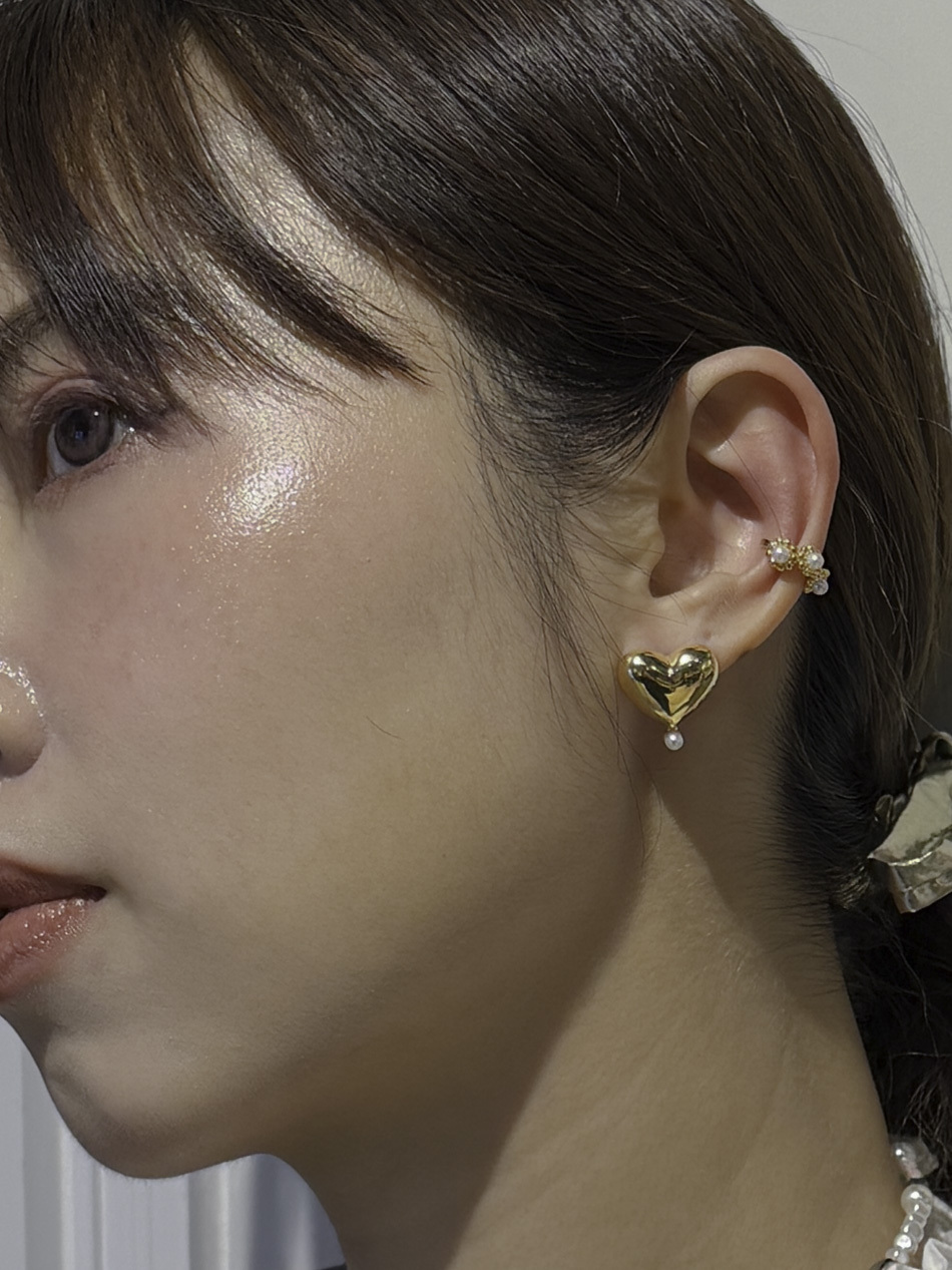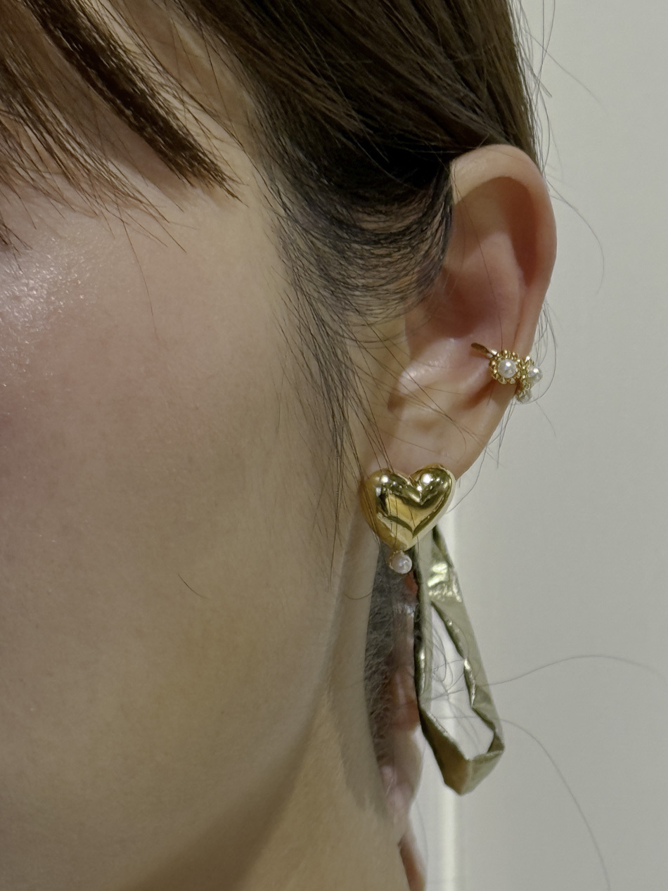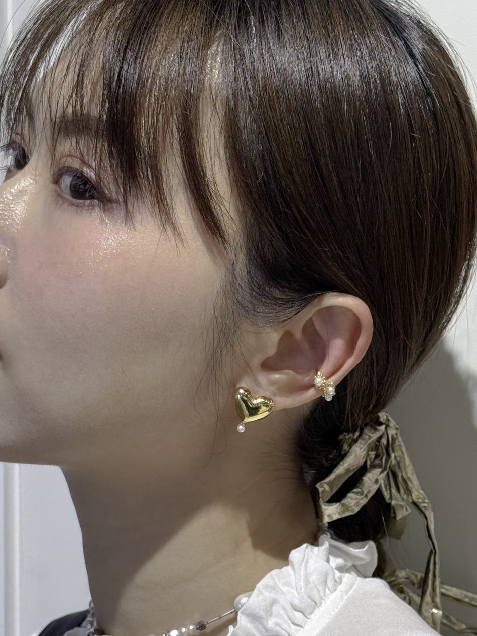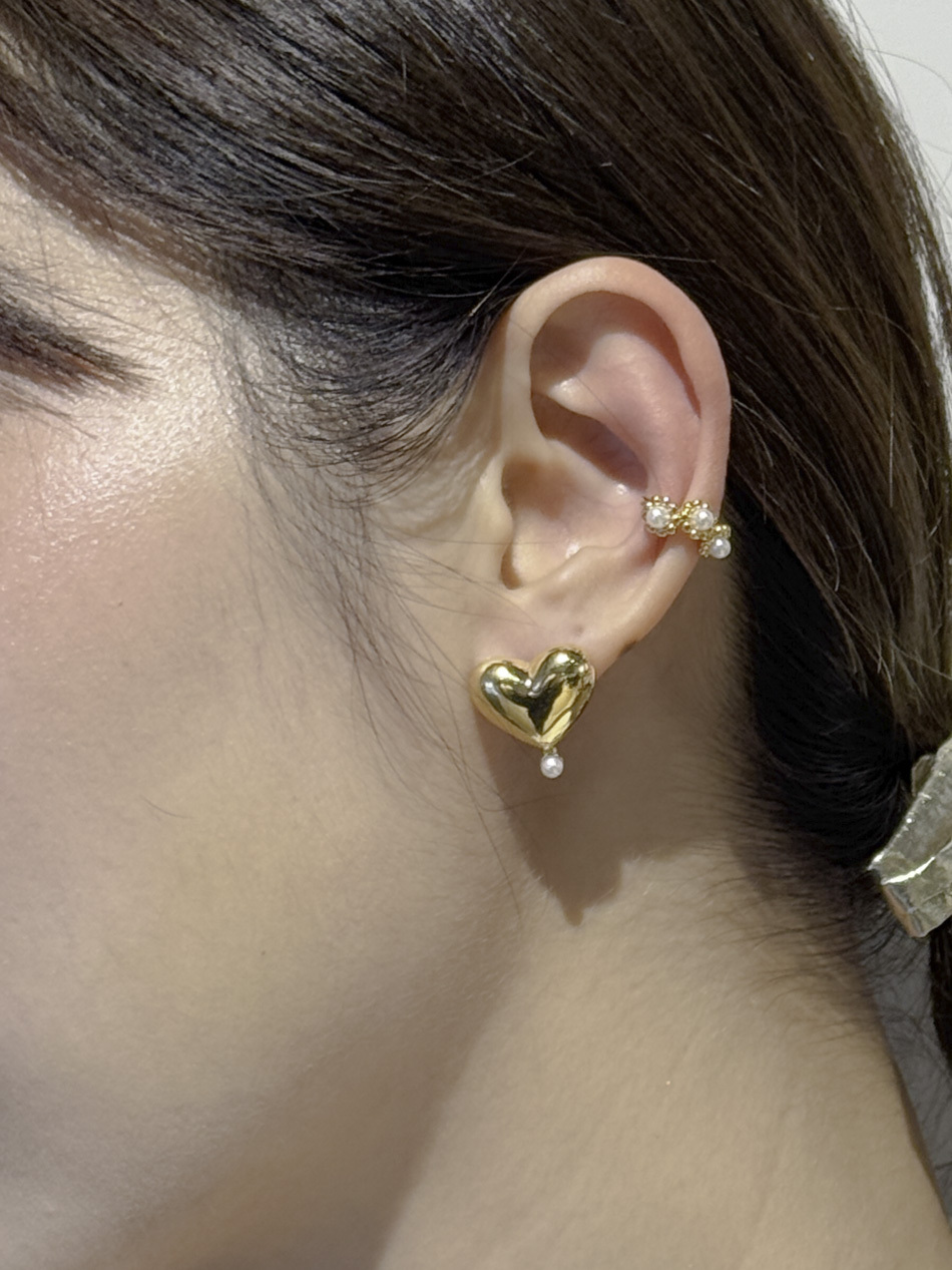 Earring + earcuff Set : black ball with twsited cuff (SILVER/GOLD)