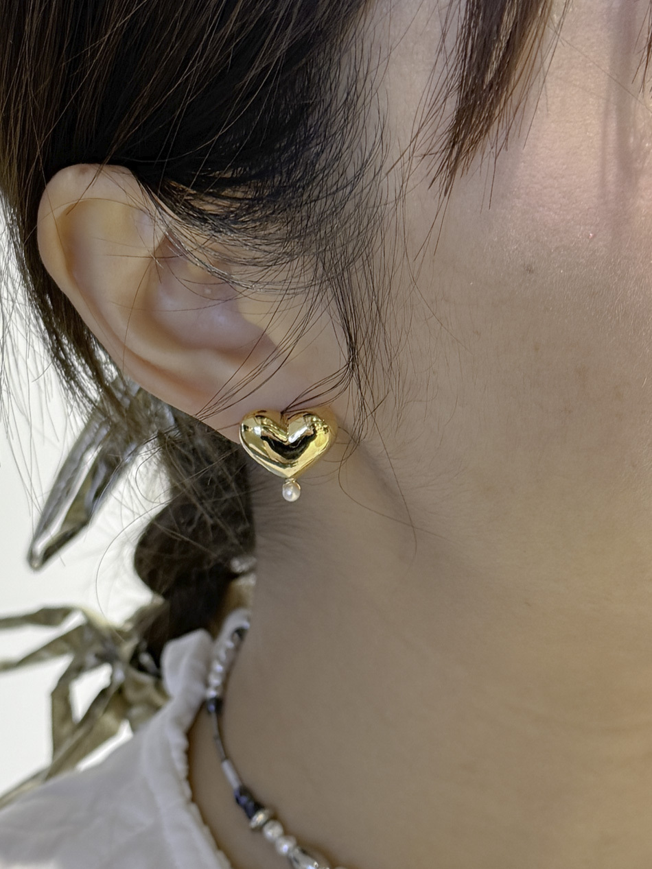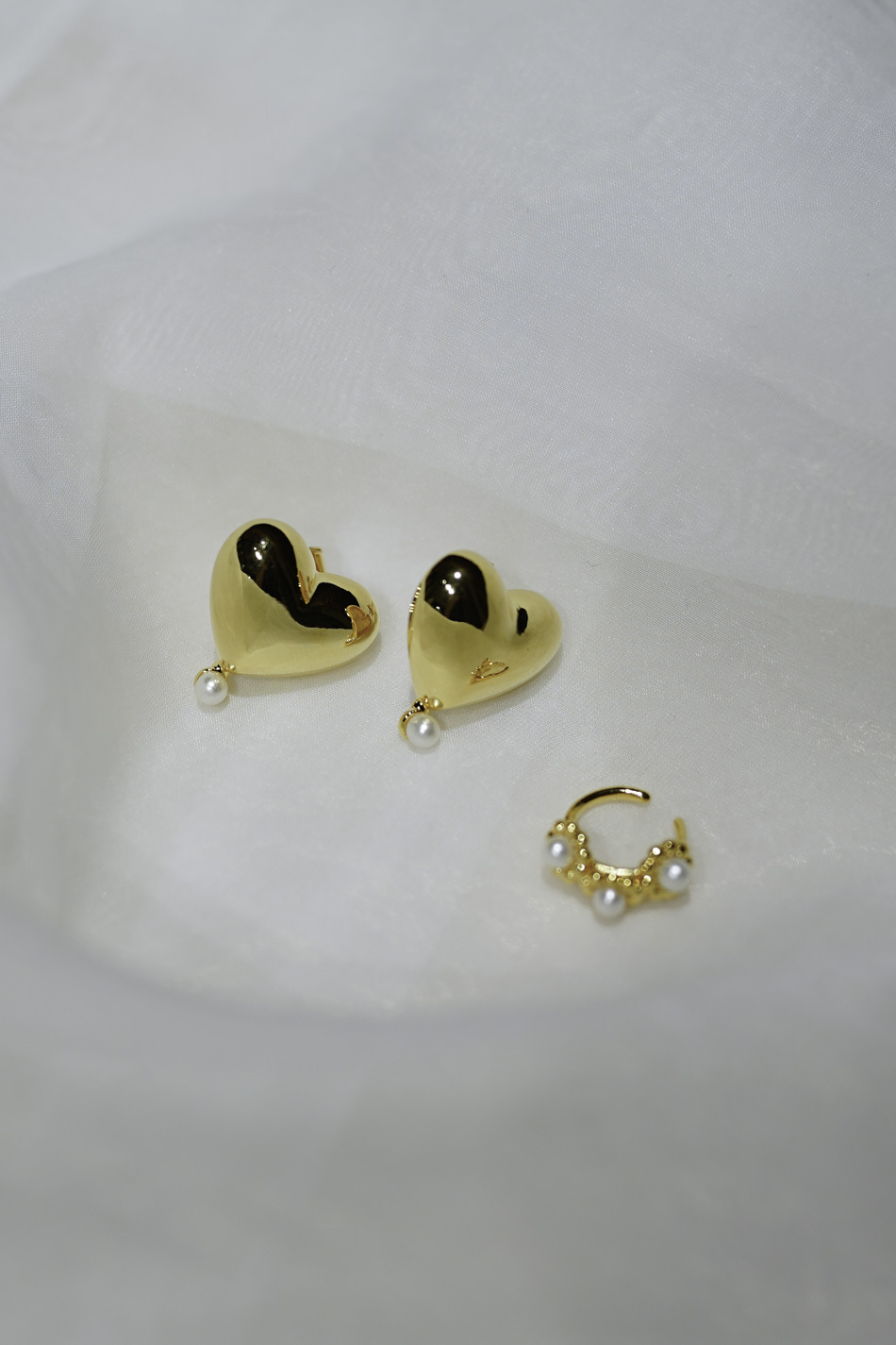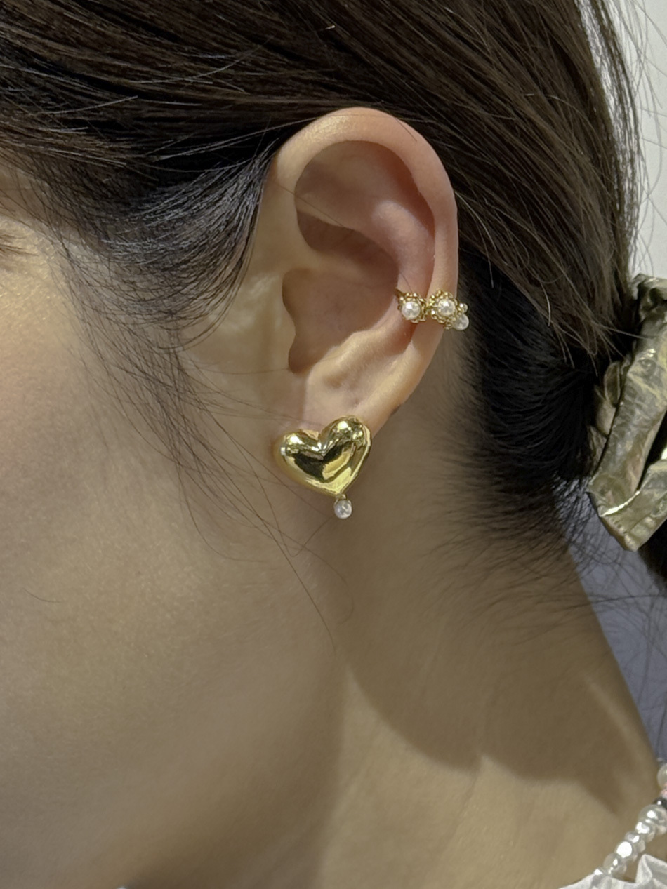 Earring + earcuff Set : black ball with twsited cuff (SILVER/GOLD)