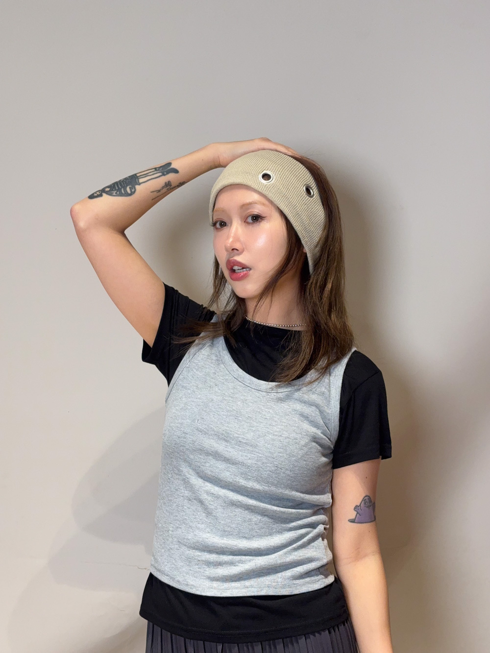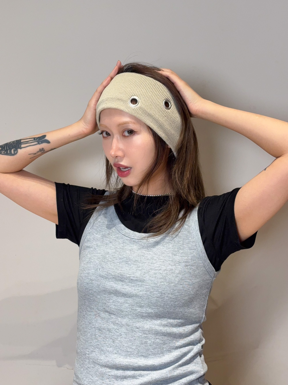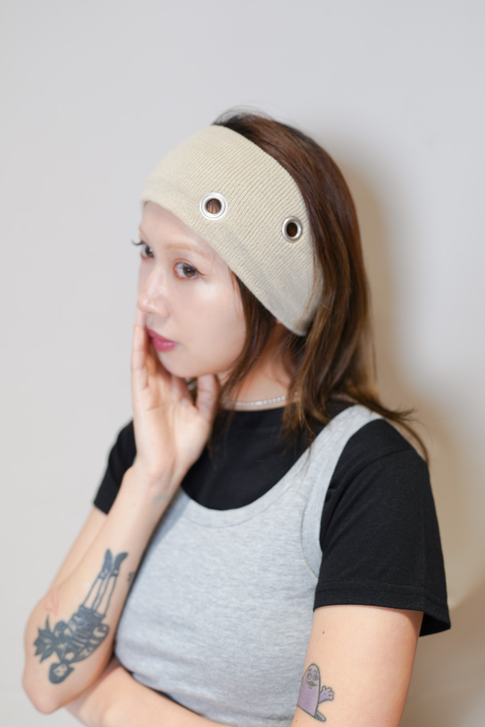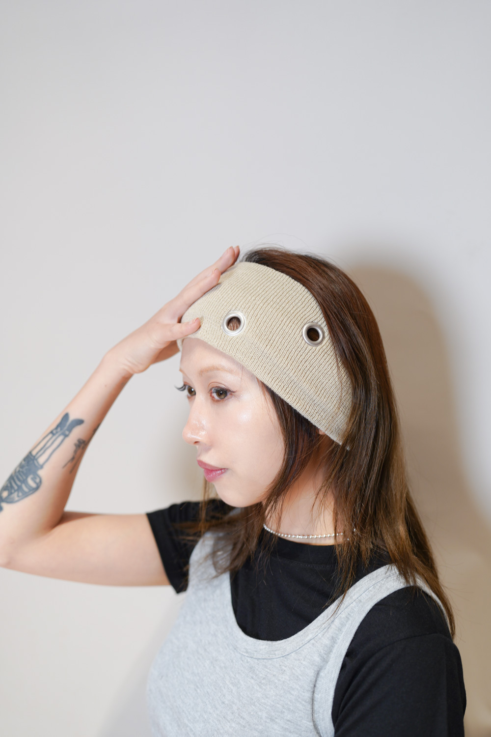 ② 精緻 Eyelet 細節 細小的孔洞設計讓單色頭帶不再單調 呈現出一種日系選物的細膩質感 高質感型格設計