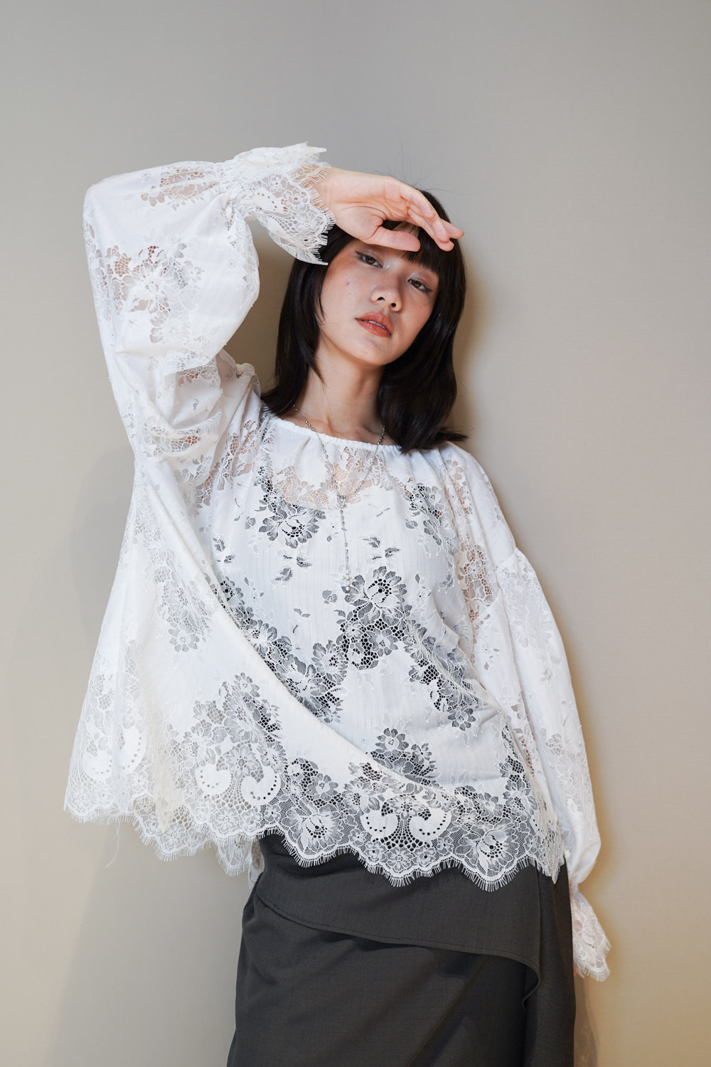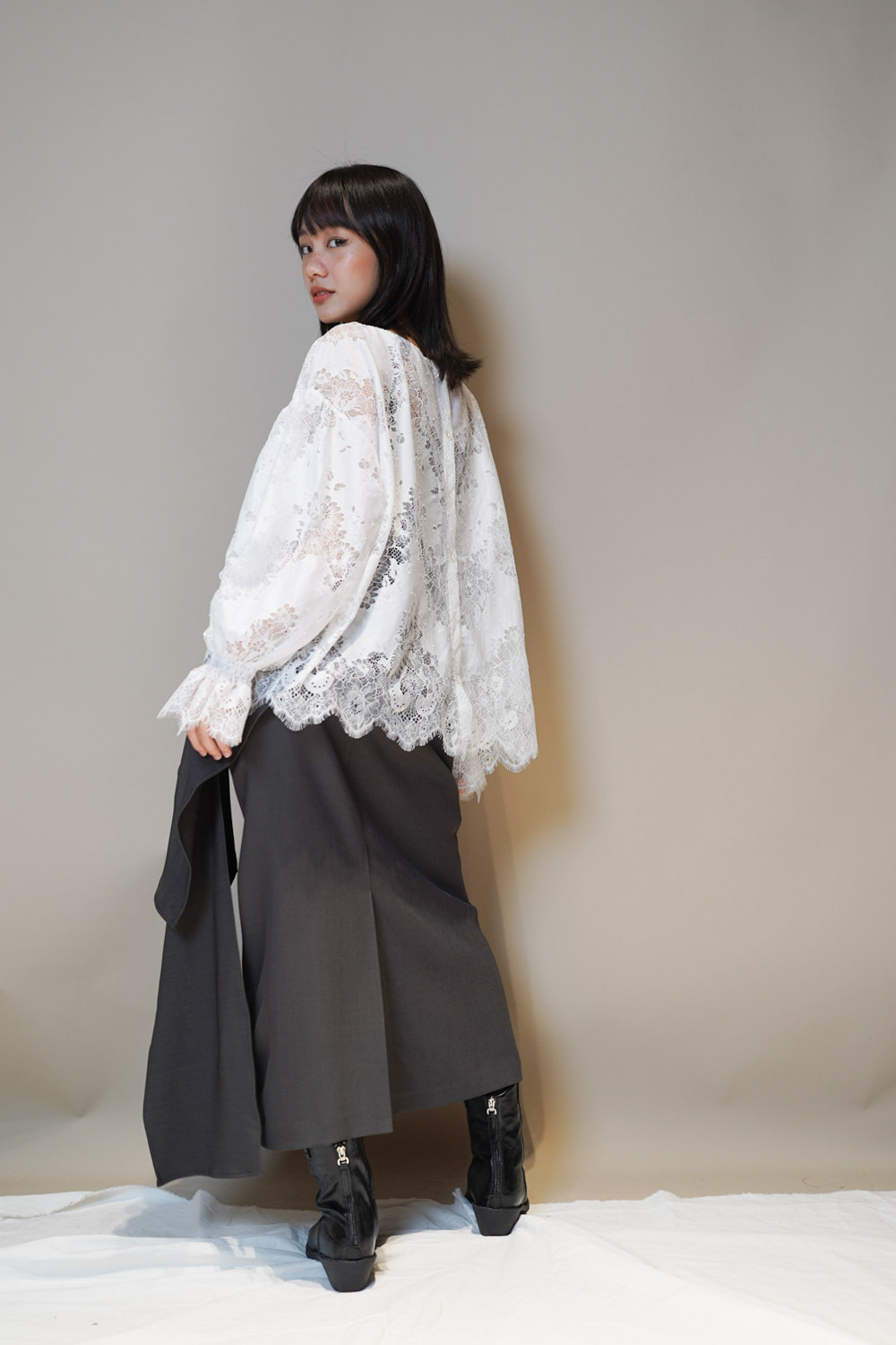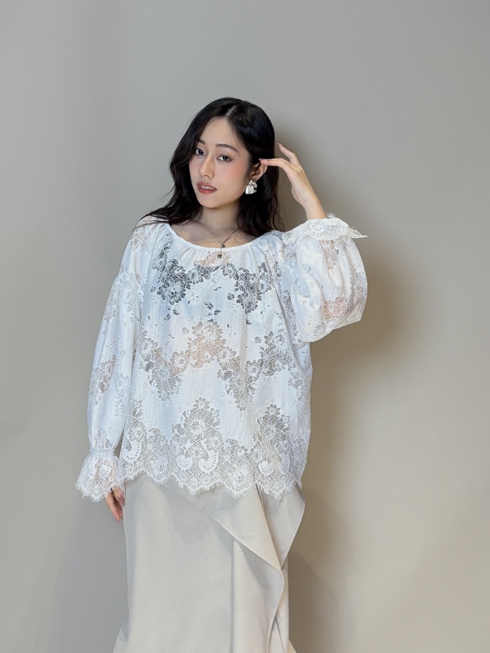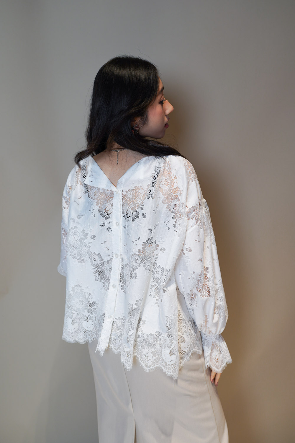 Feminine Lace blouse (WHITE/BLACK)