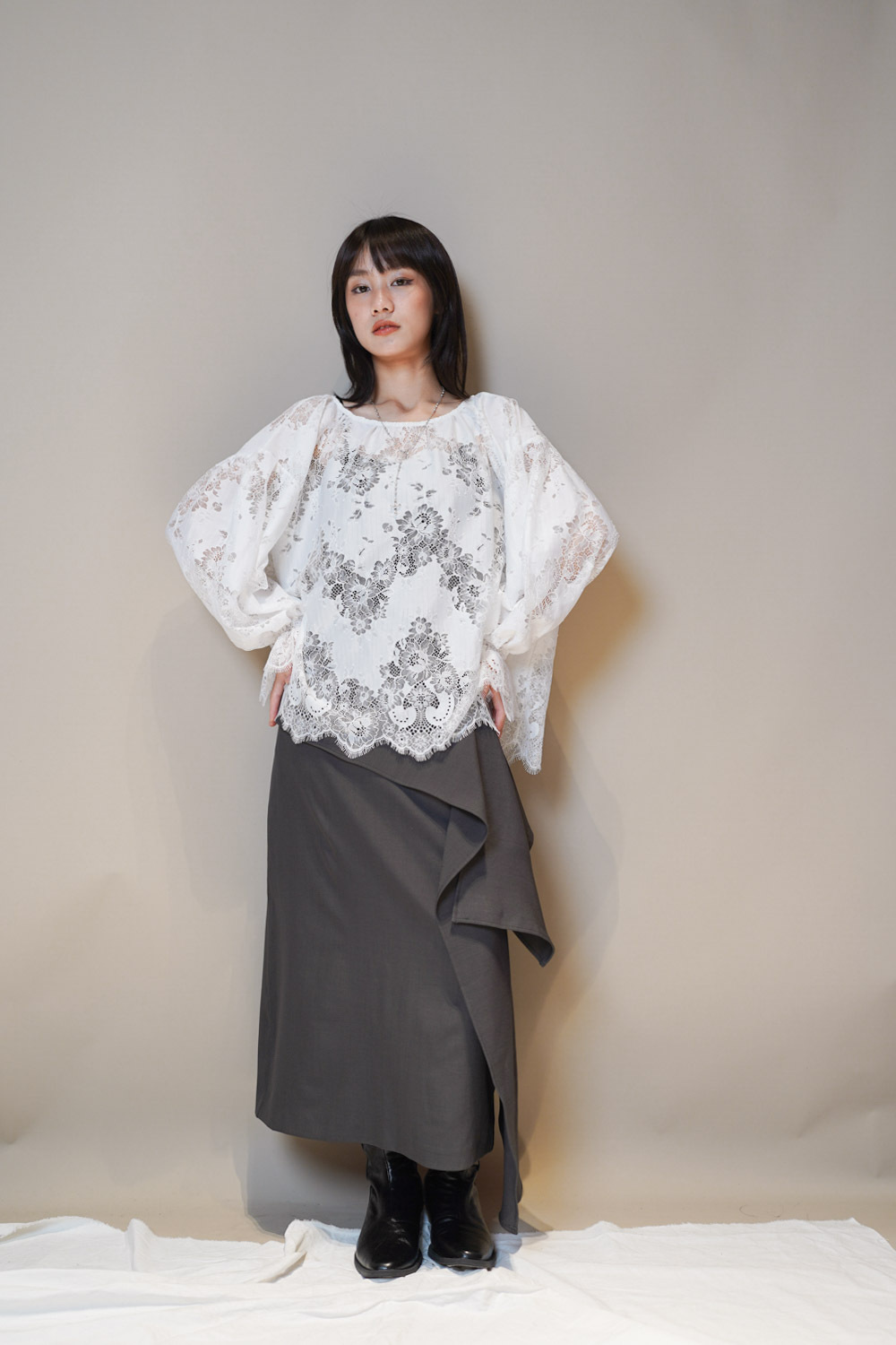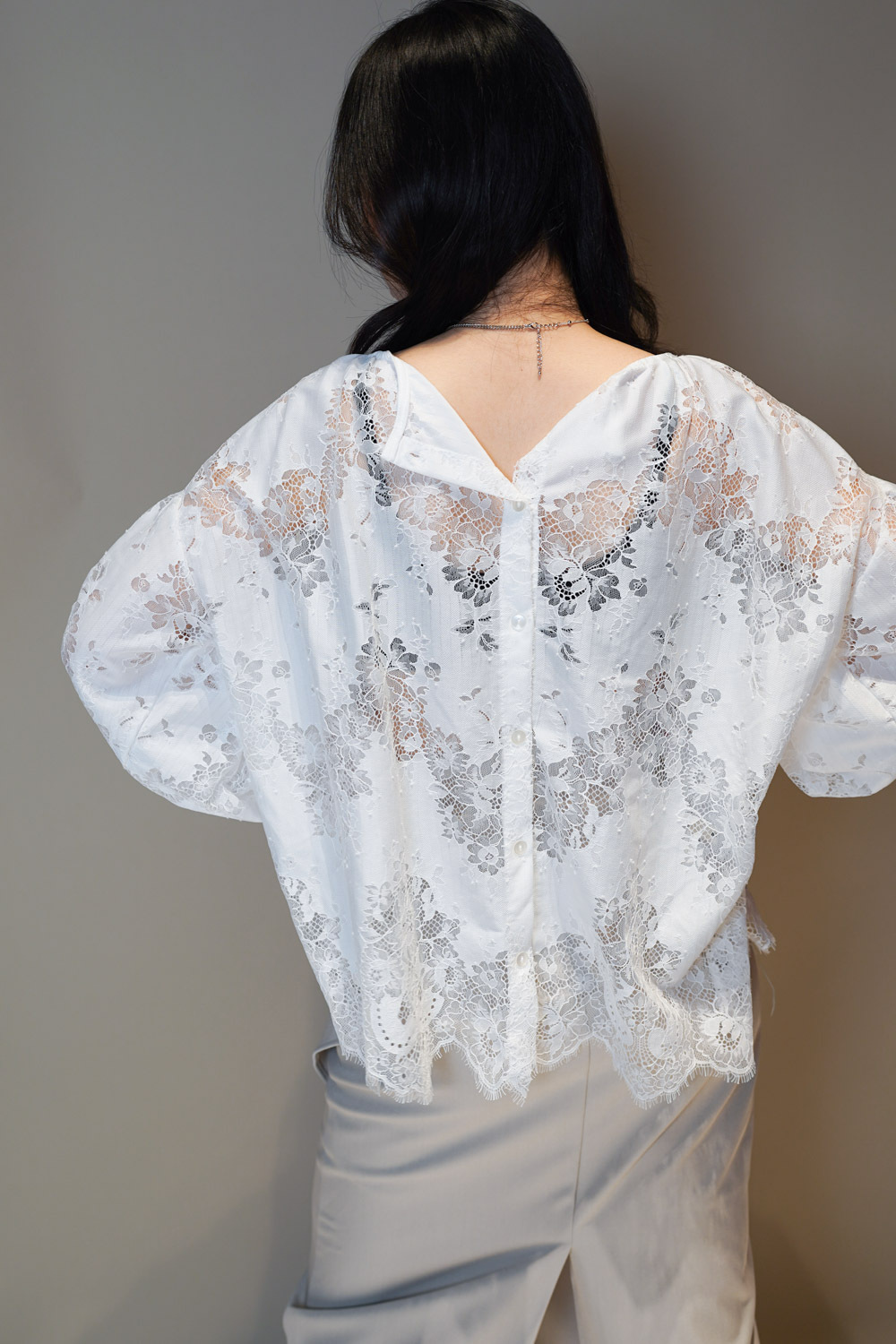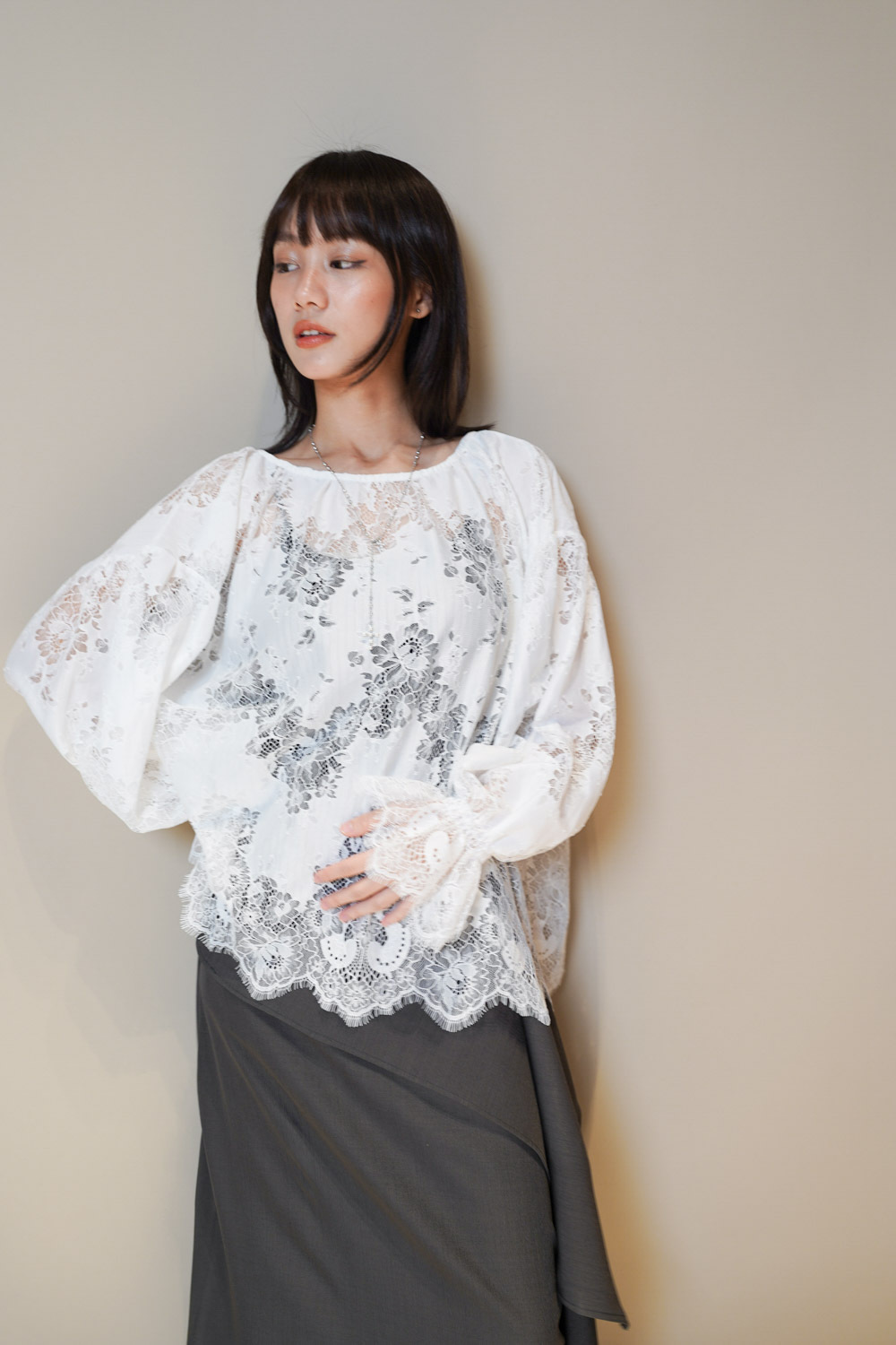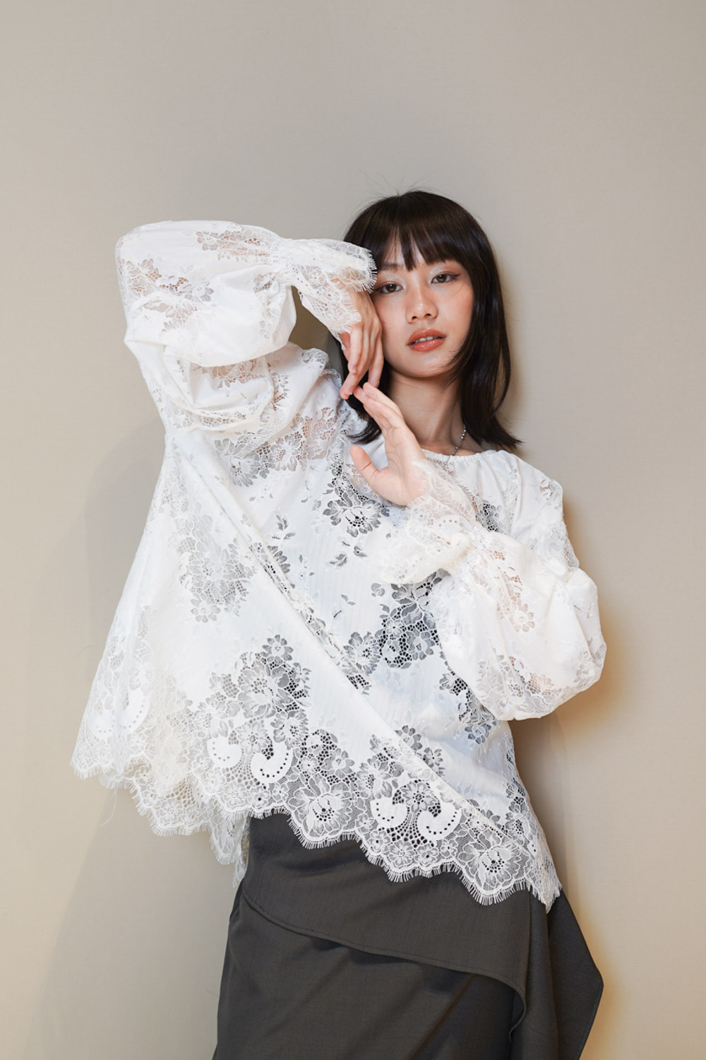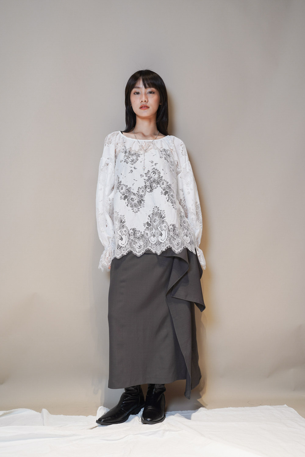Feminine Lace blouse (WHITE/BLACK)