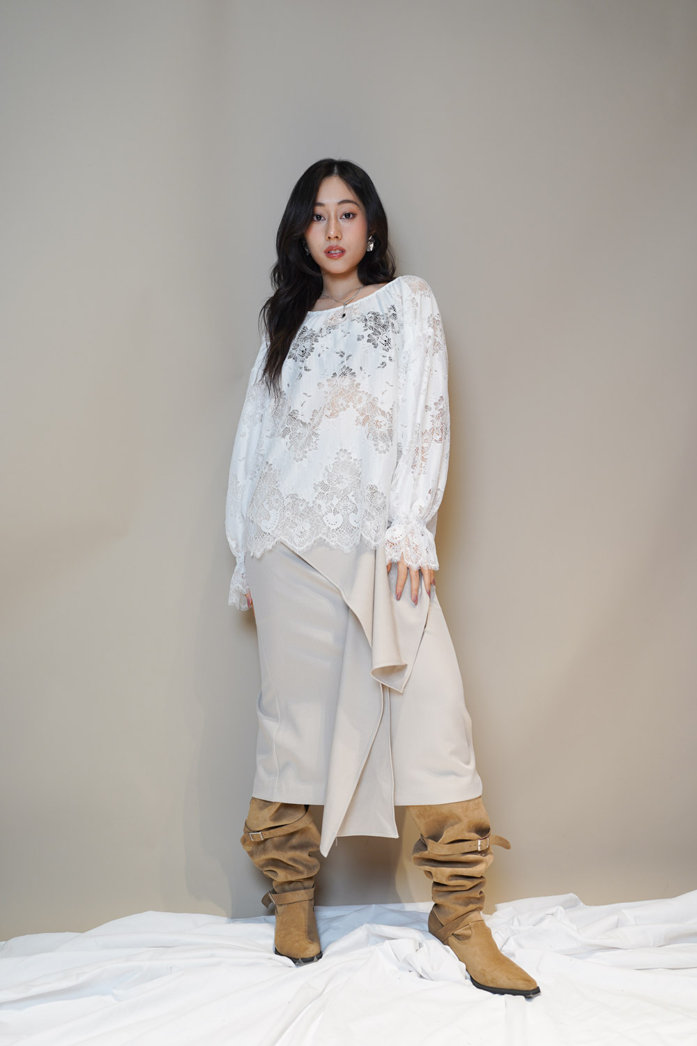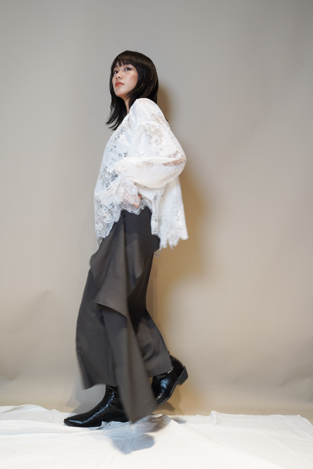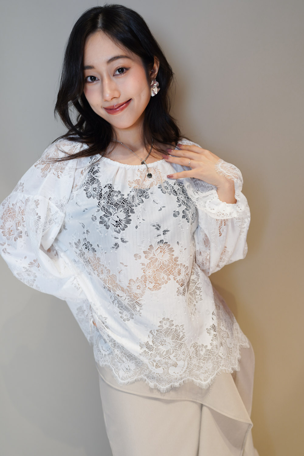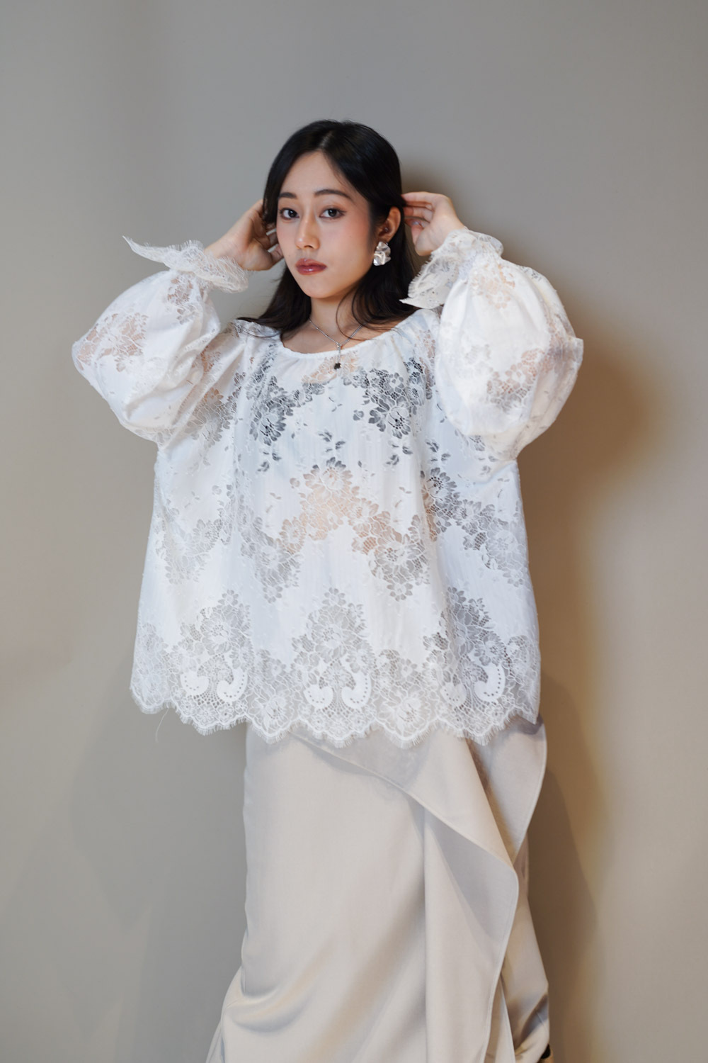 Feminine Lace blouse (WHITE/BLACK)