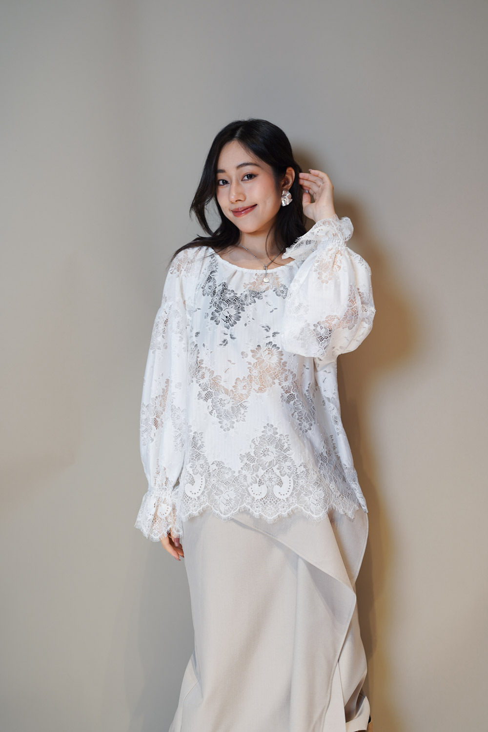 手袖束口ruffle設計/ 視覺上更氣質/