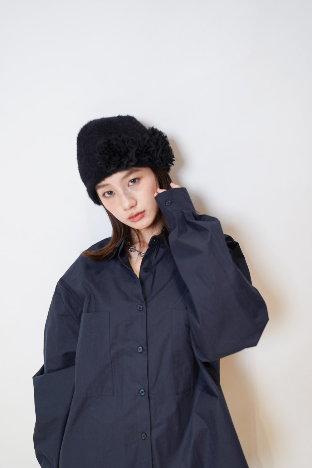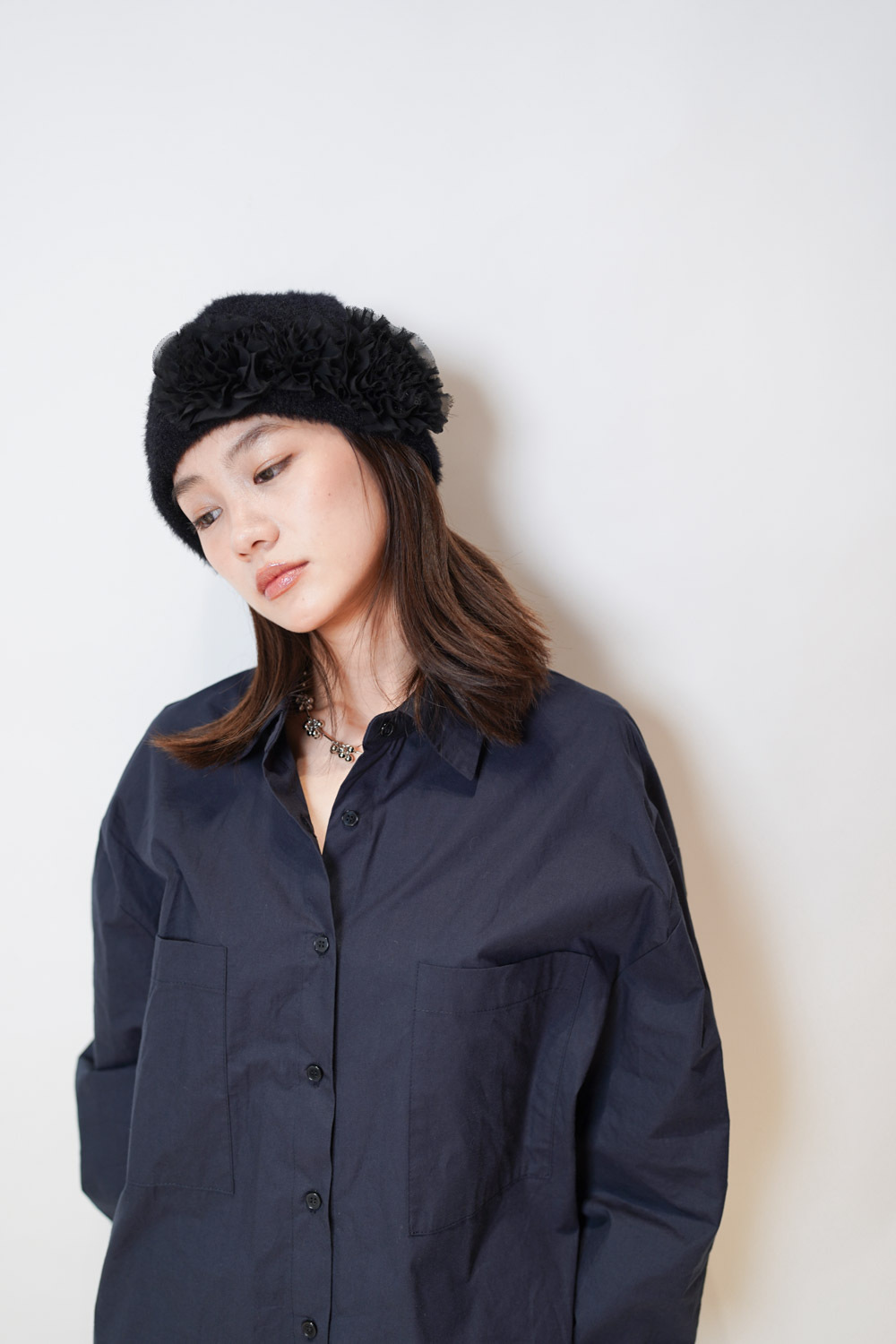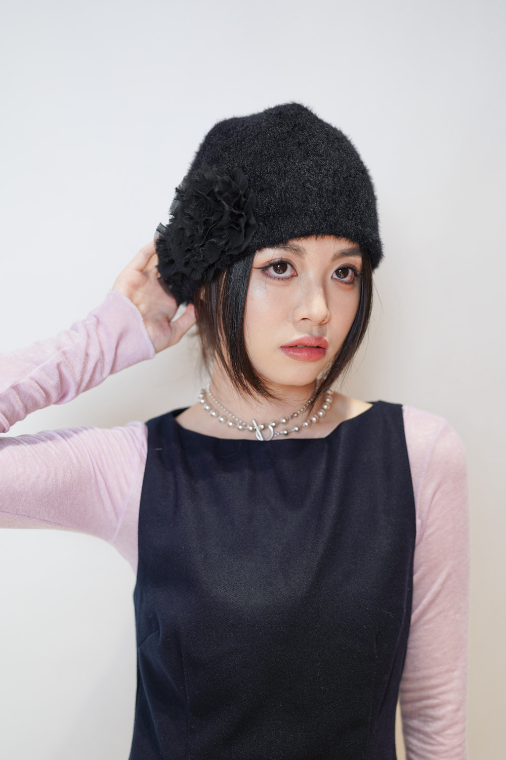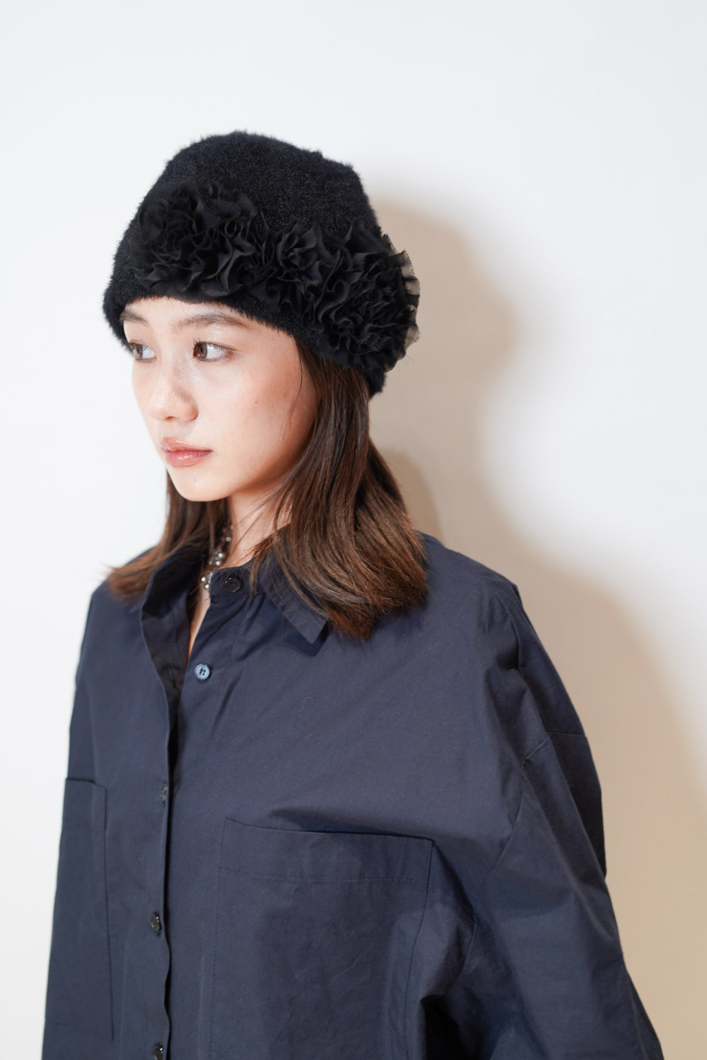flower round beanies (WHITE/BROWN/BLACK)