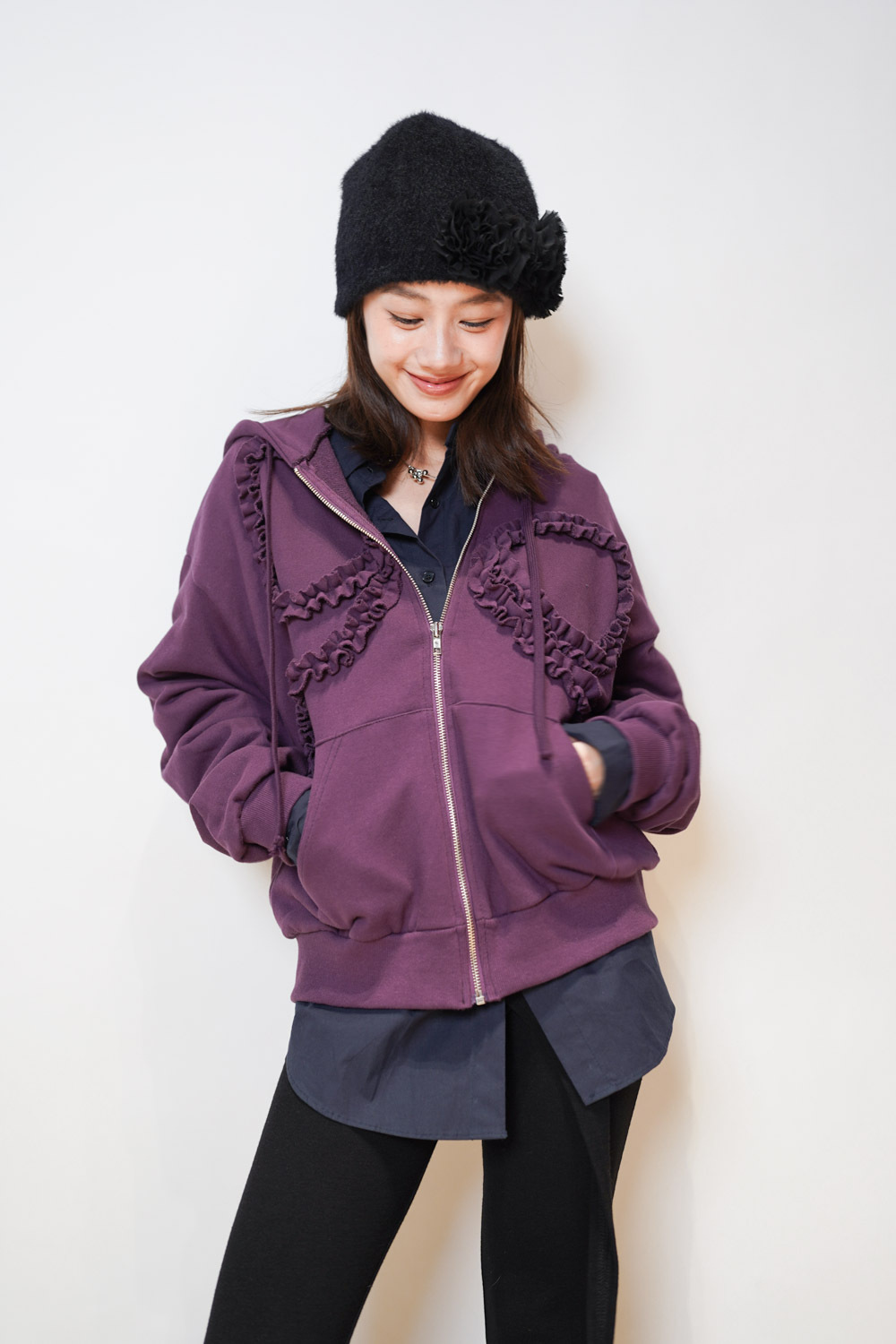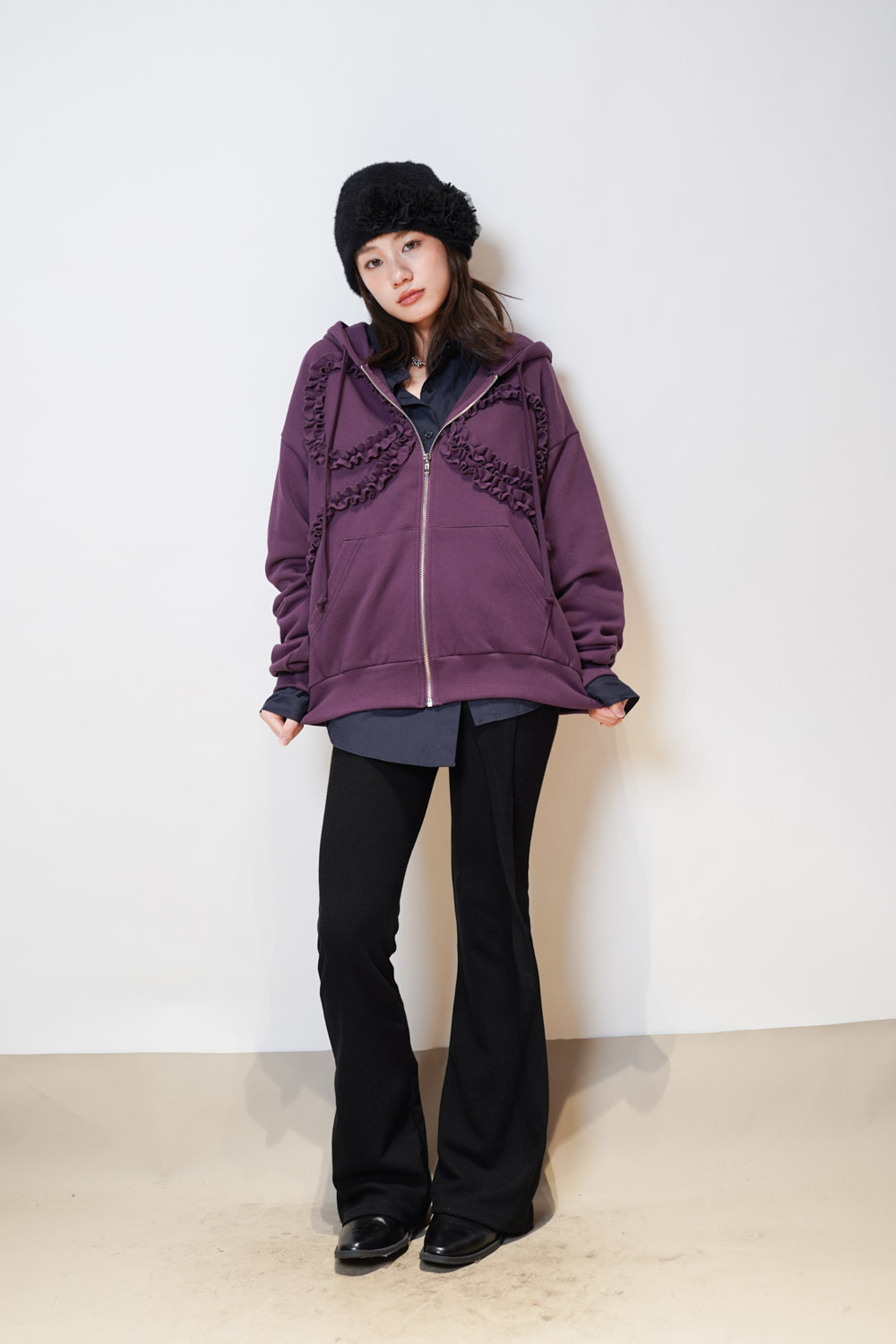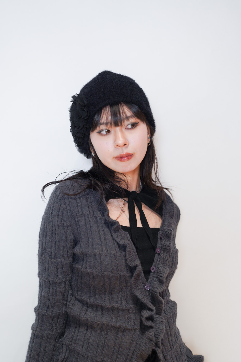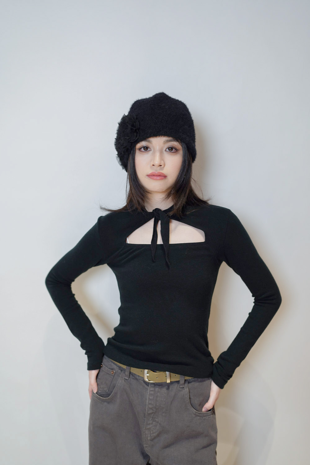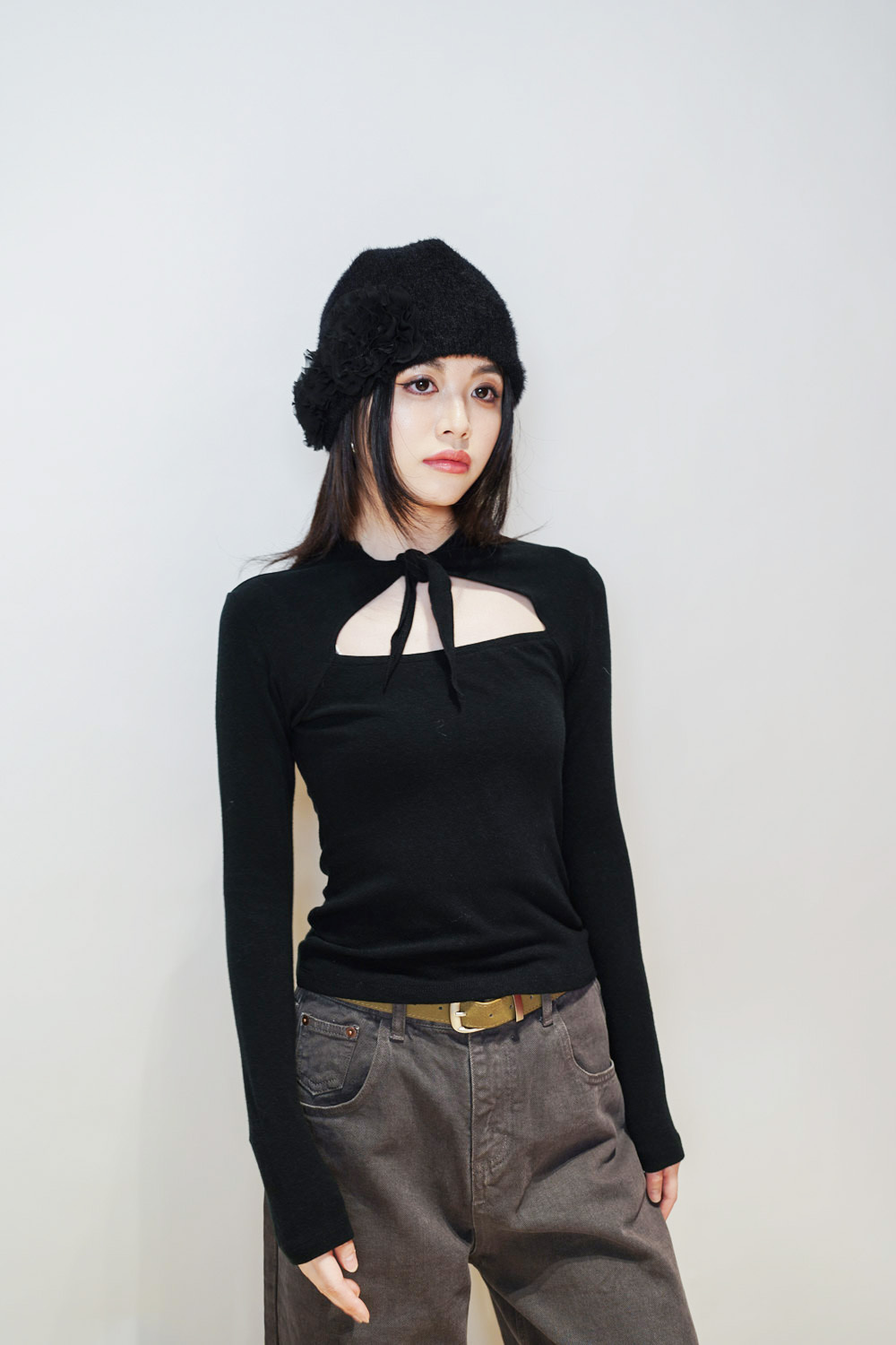flower round beanies (WHITE/BROWN/BLACK)